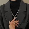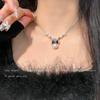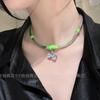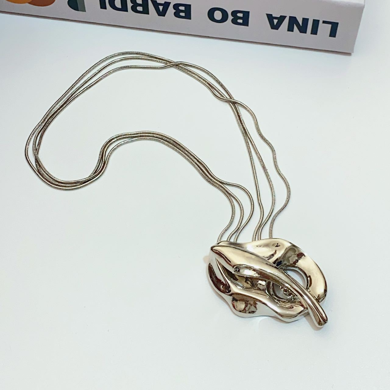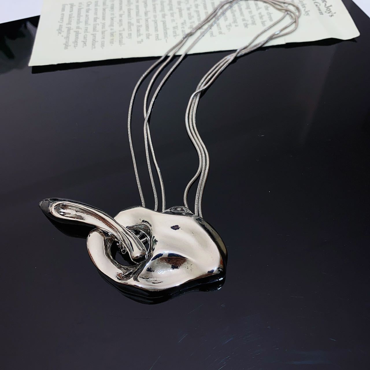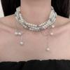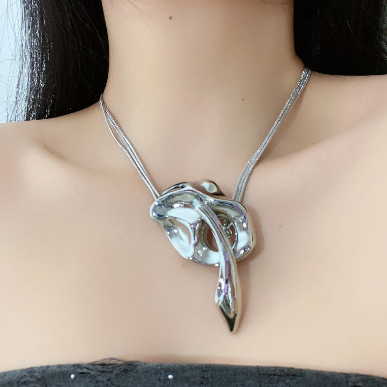 Collar de cadena multicapa con hebilla en forma de T, diseño de nicho, con una hoja plana y explosiones rojas de red para mujer, cadena de clavícula con personalidad exagerada ~