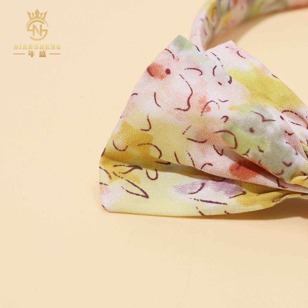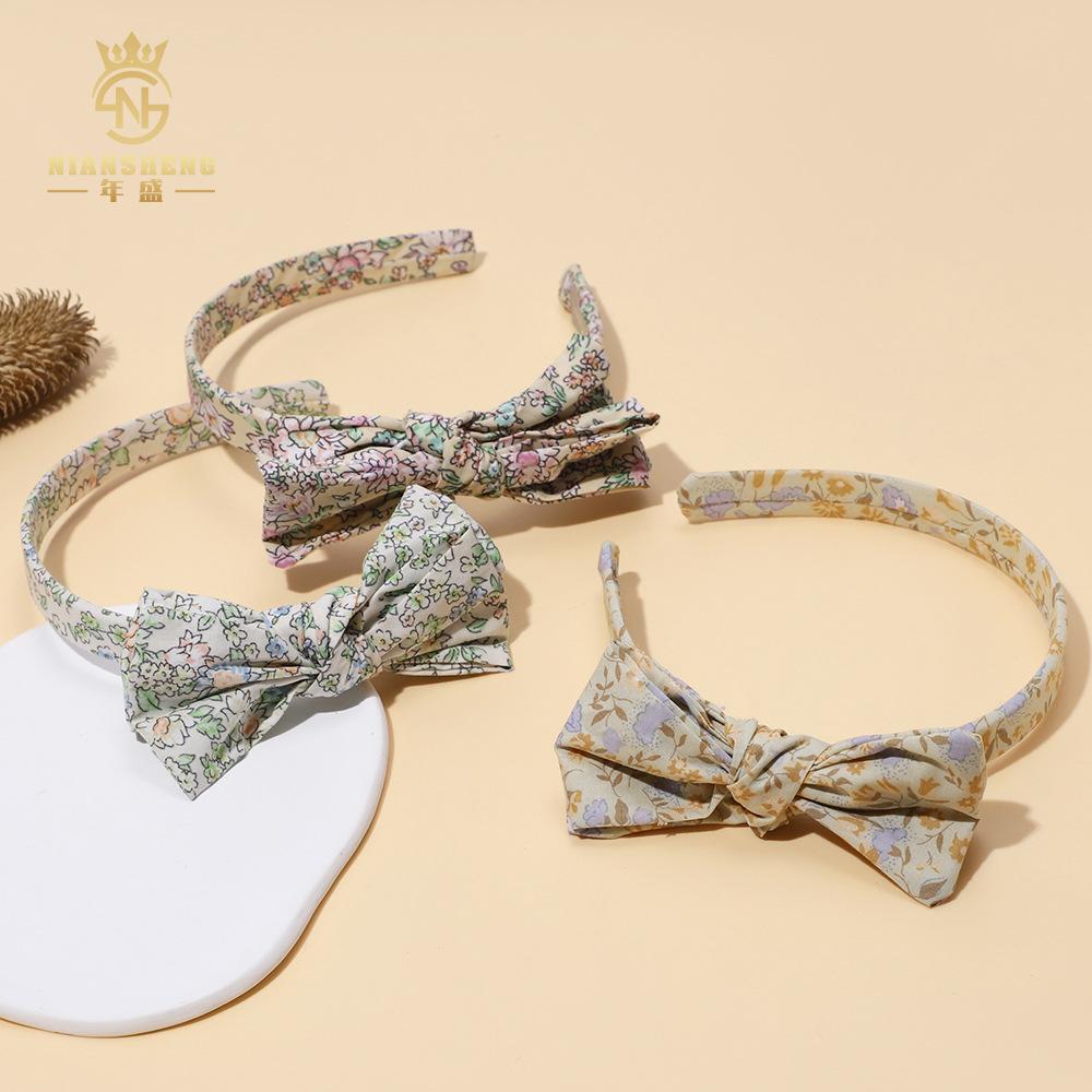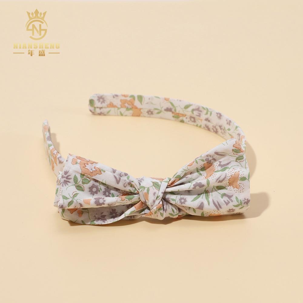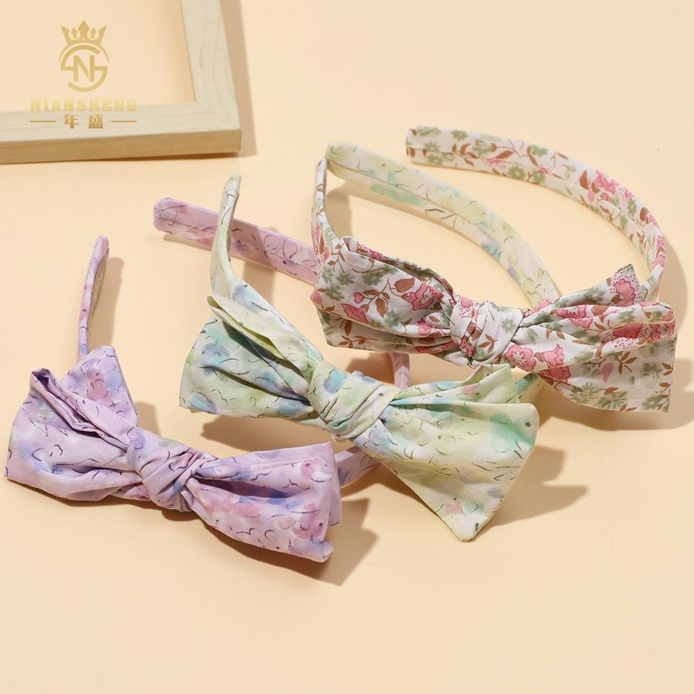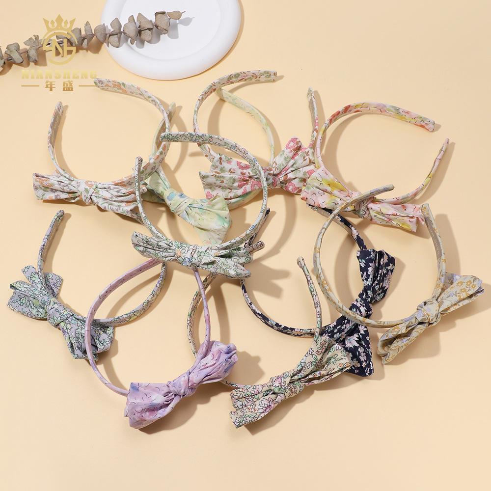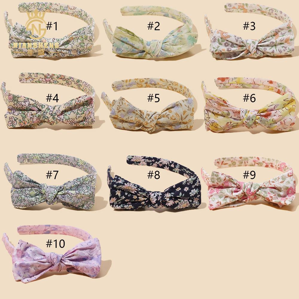 Nuevo Estilo Europeo y Americano Banda para el Cabello para Niños con Lazo de Flores Estampadas Bebé Hecho a Mano Tela Floral Diadema Tocado para Niñas