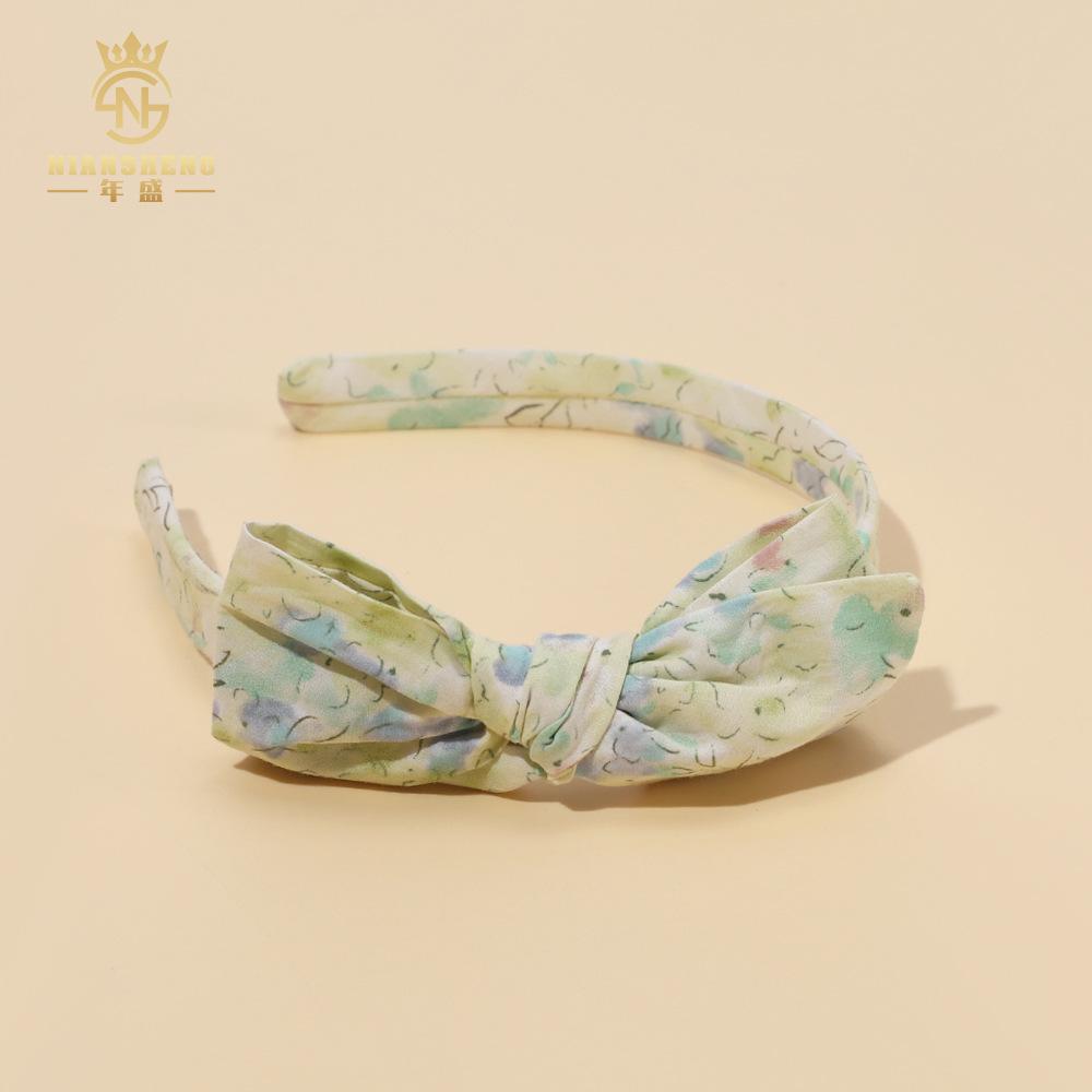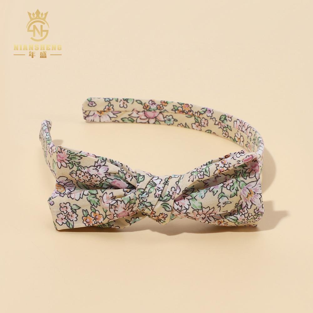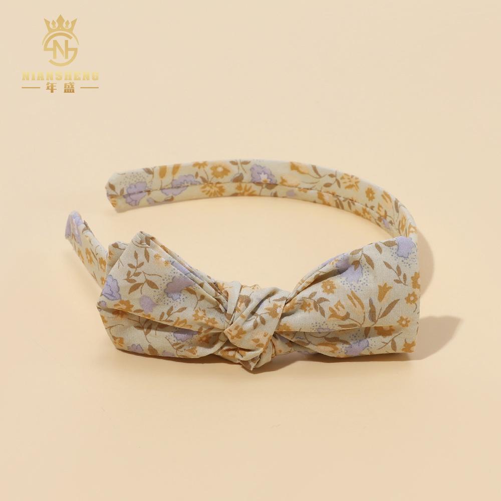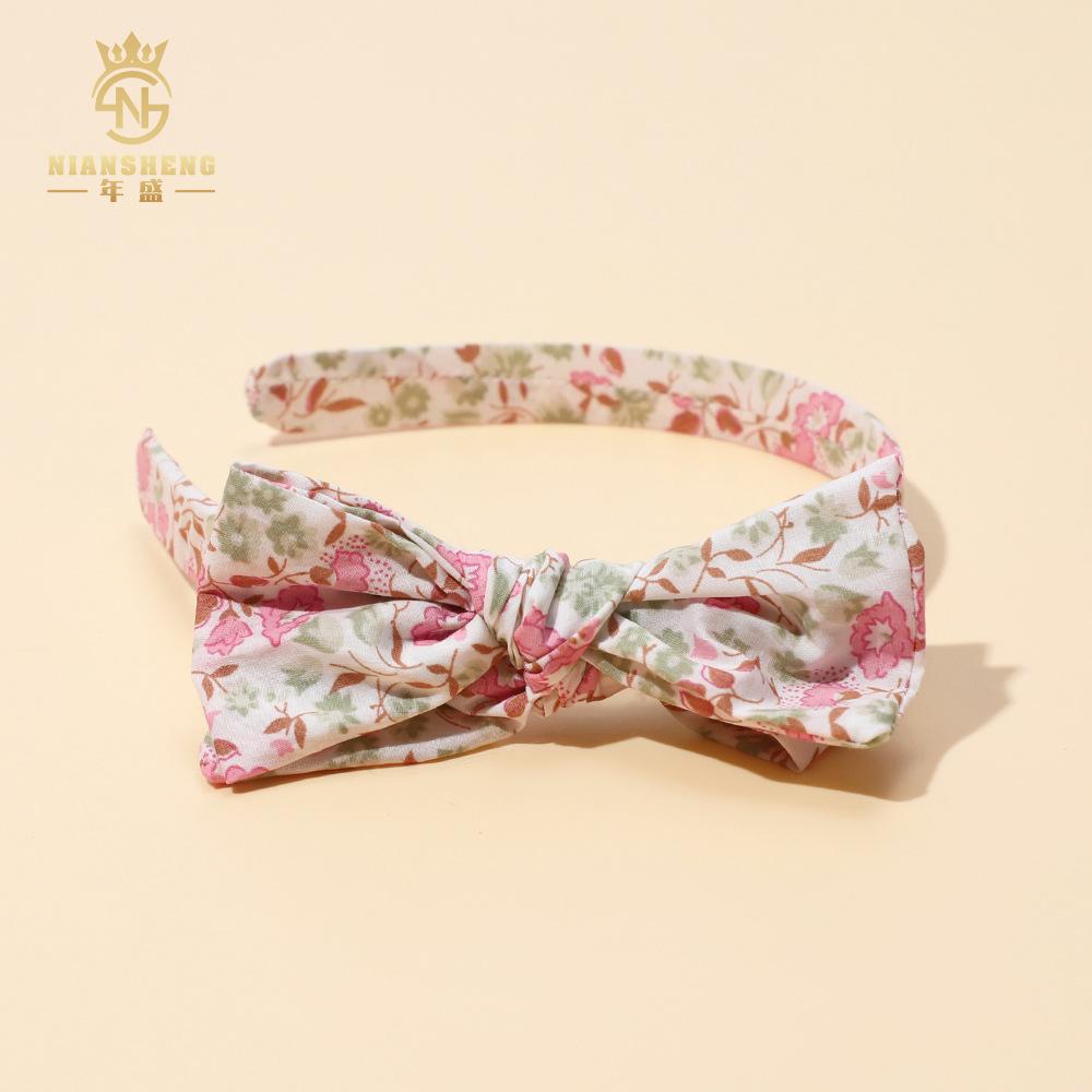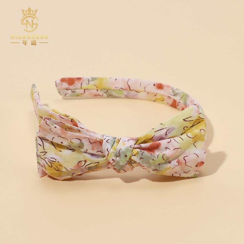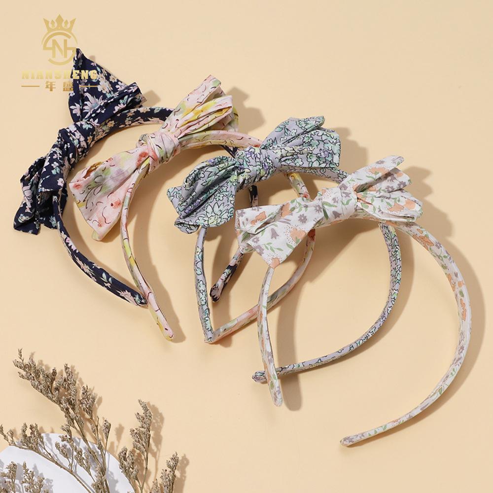 Nuevo Estilo Europeo y Americano Banda para el Cabello para Niños con Lazo de Flores Estampadas Bebé Hecho a Mano Tela Floral Diadema Tocado para Niñas