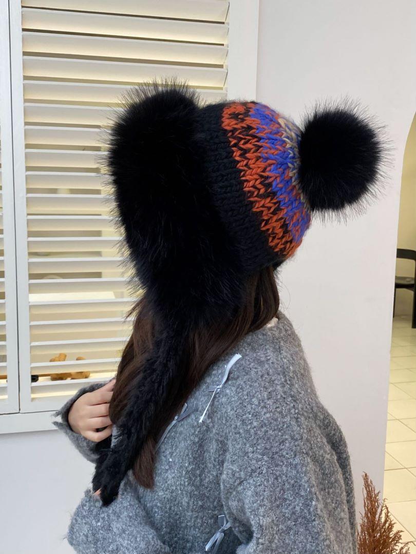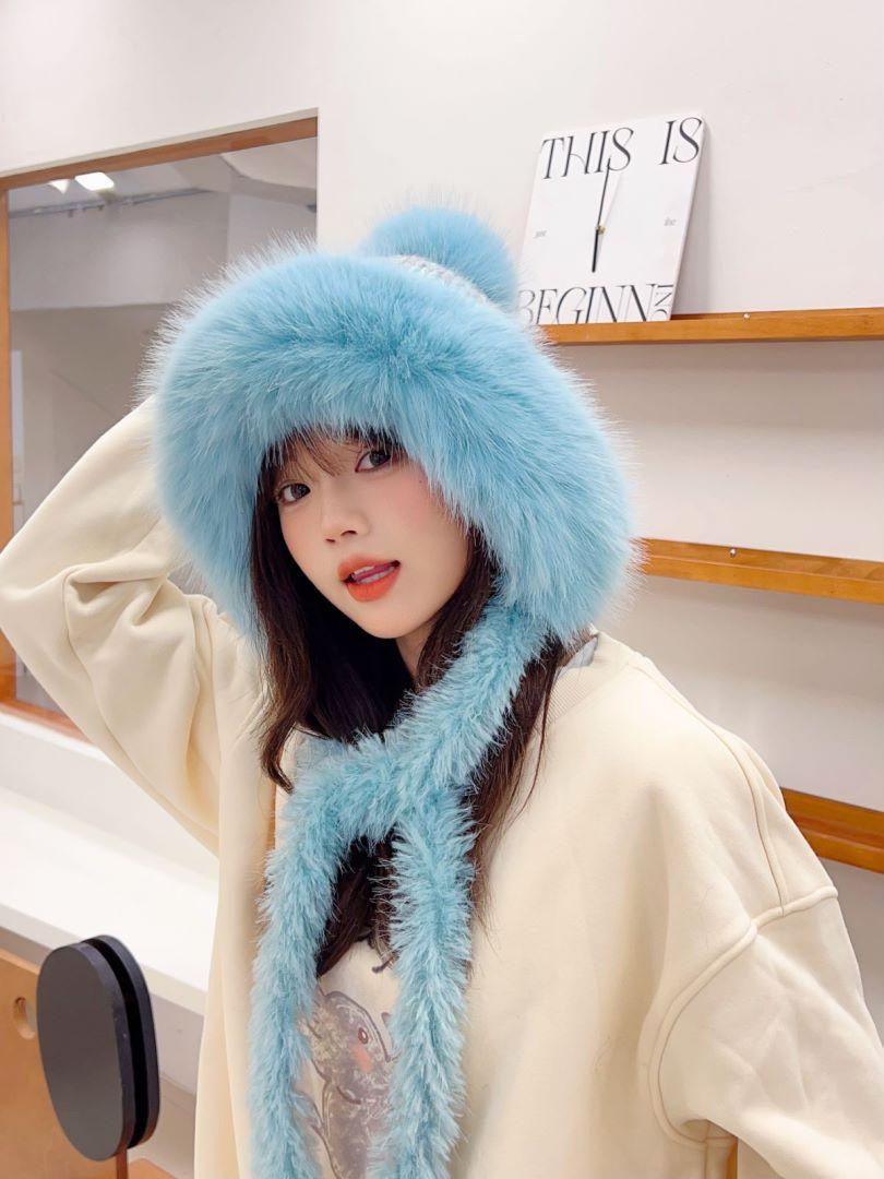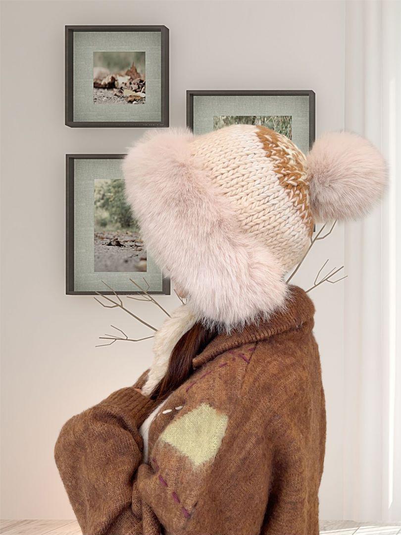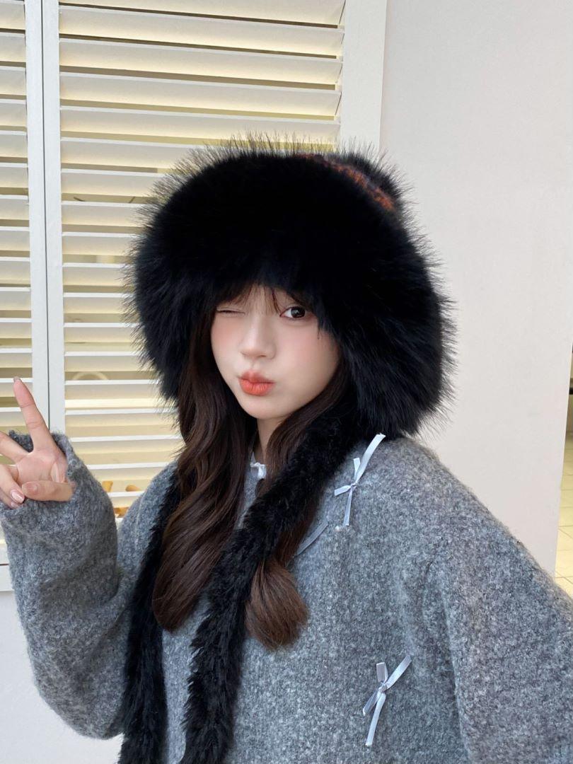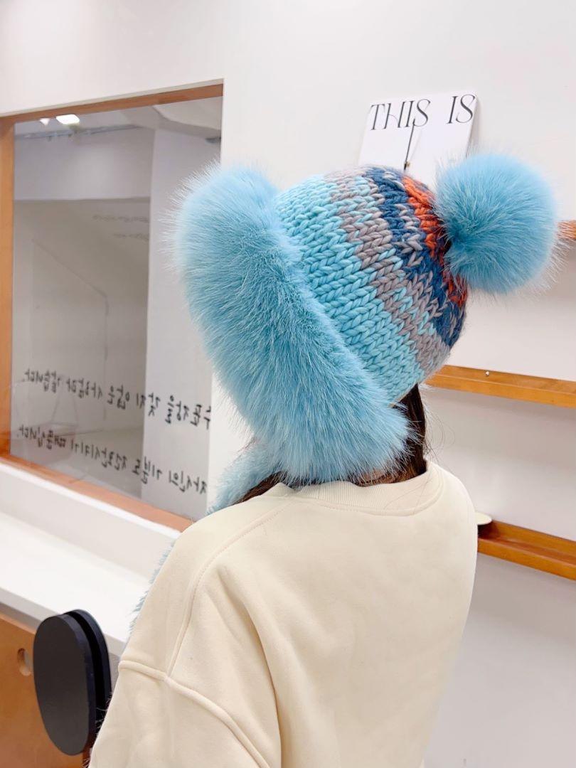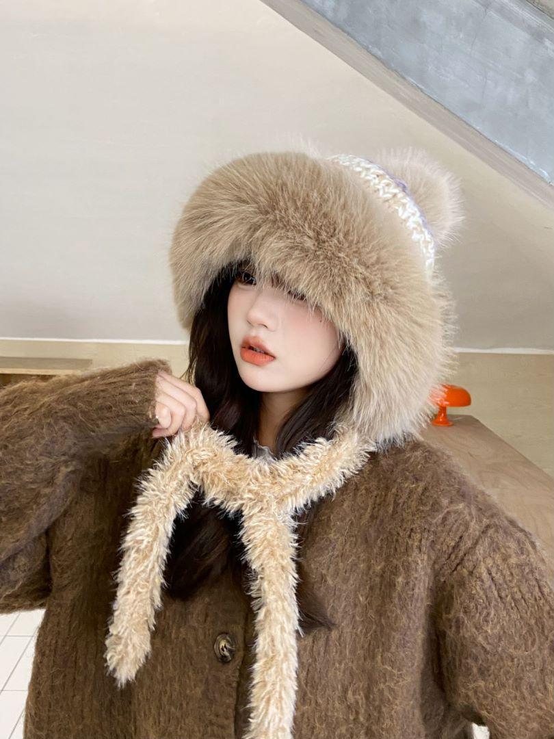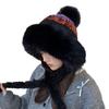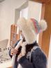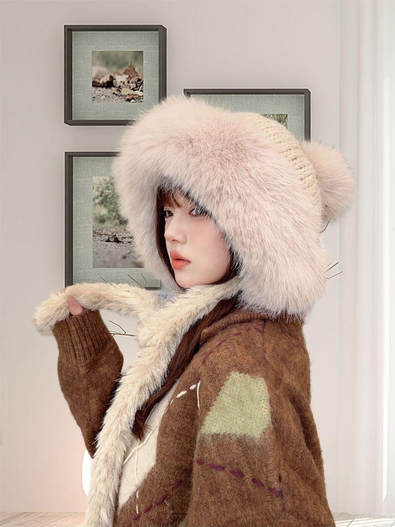 Noreste Espesado Cálido Protección para las Orejas Sombrero Lei Feng de Piel de Conejo Nuevo Color Trenzado de Hilo Tejido Moda Aprendizaje Sombrero con Cuello de Piel Tejida para Mujer