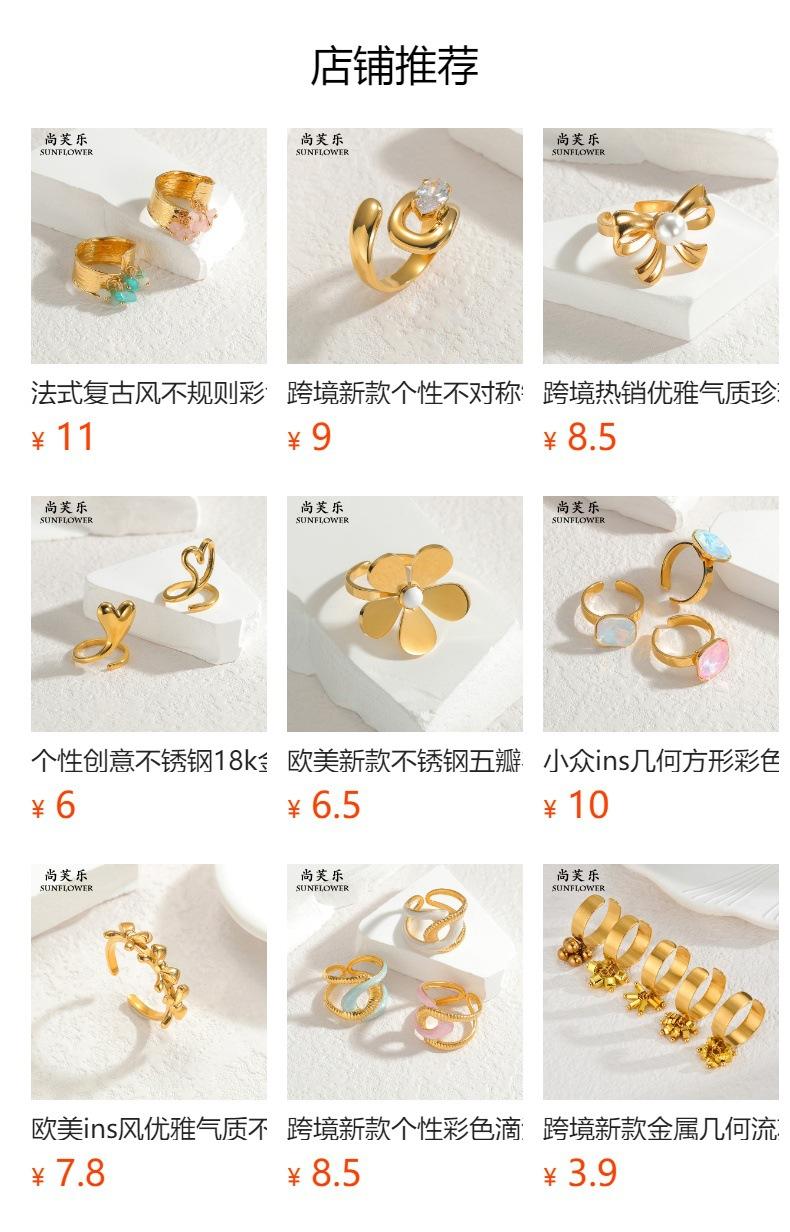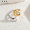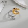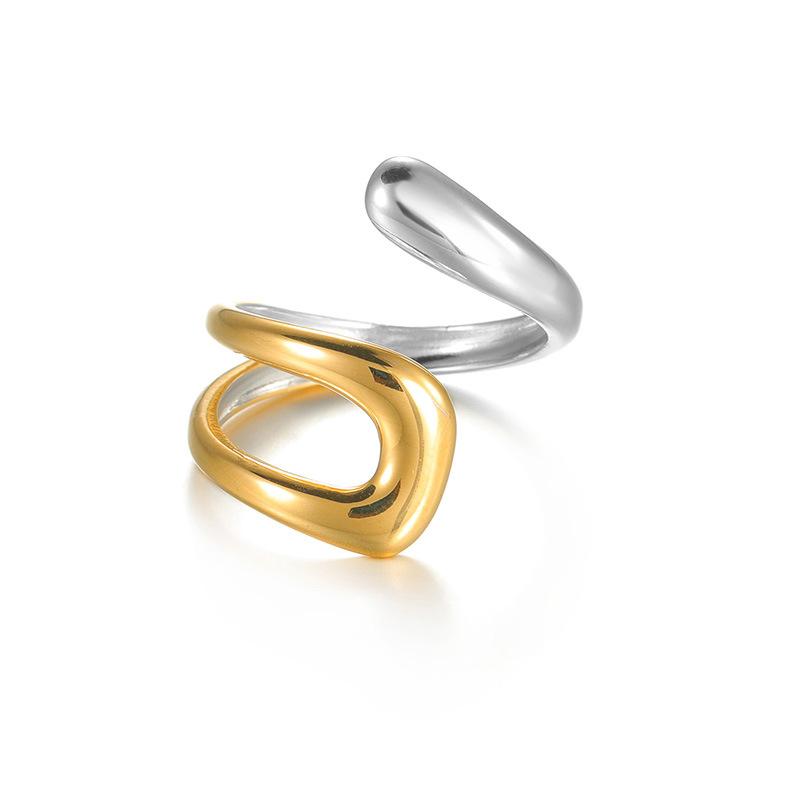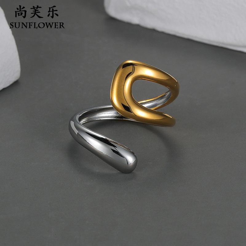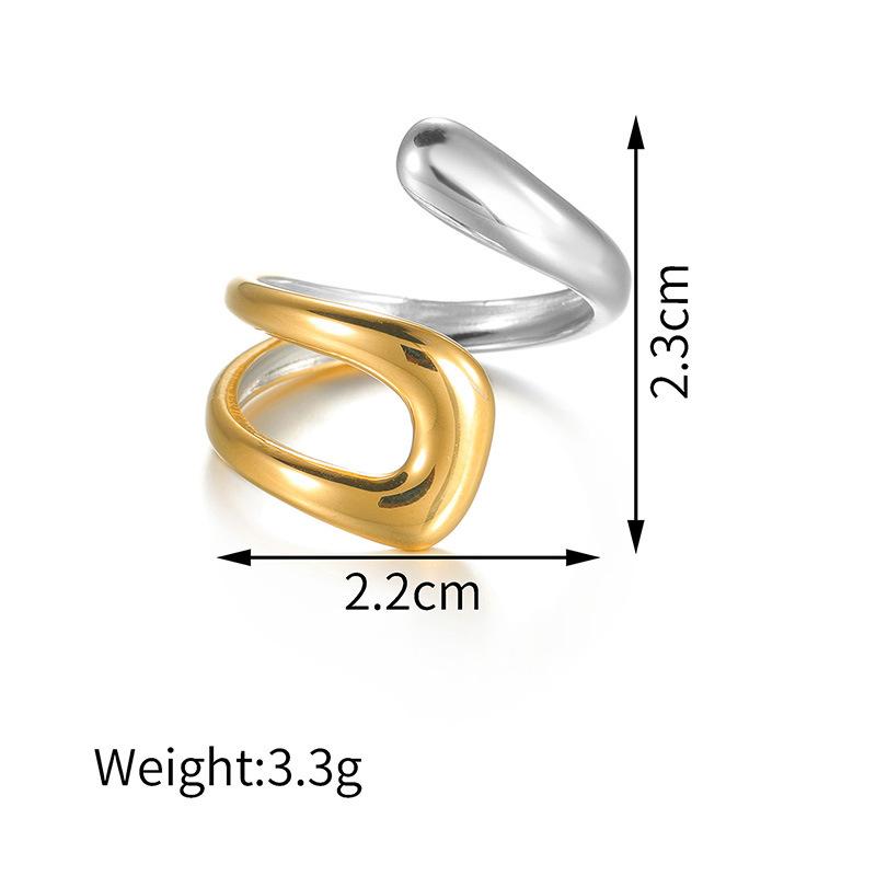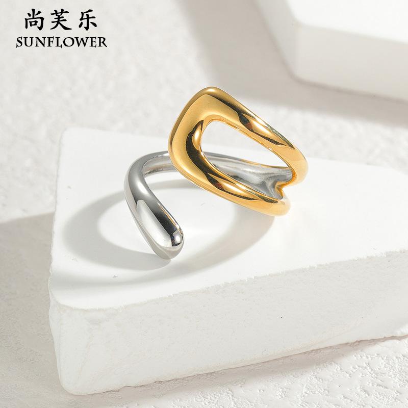 Anillo de apertura de acero de titanio dorado asimétrico con diseño de nicho, estilo simple personalizado, combina con todo.