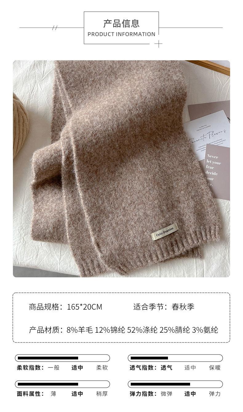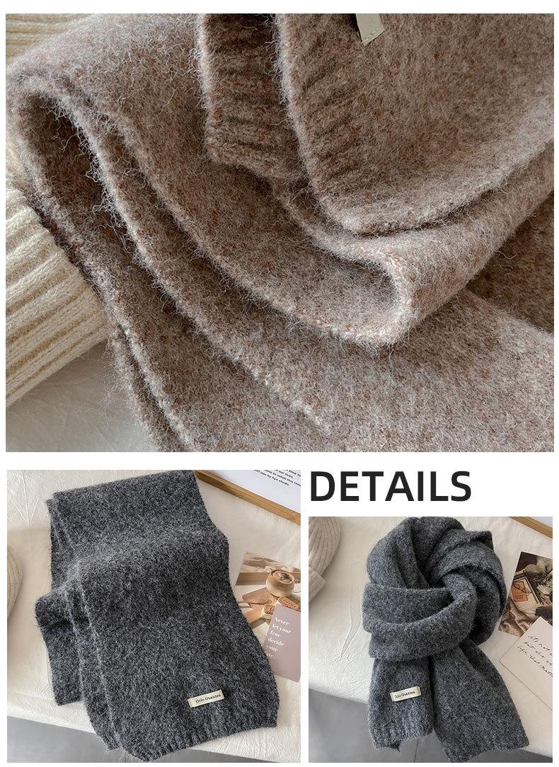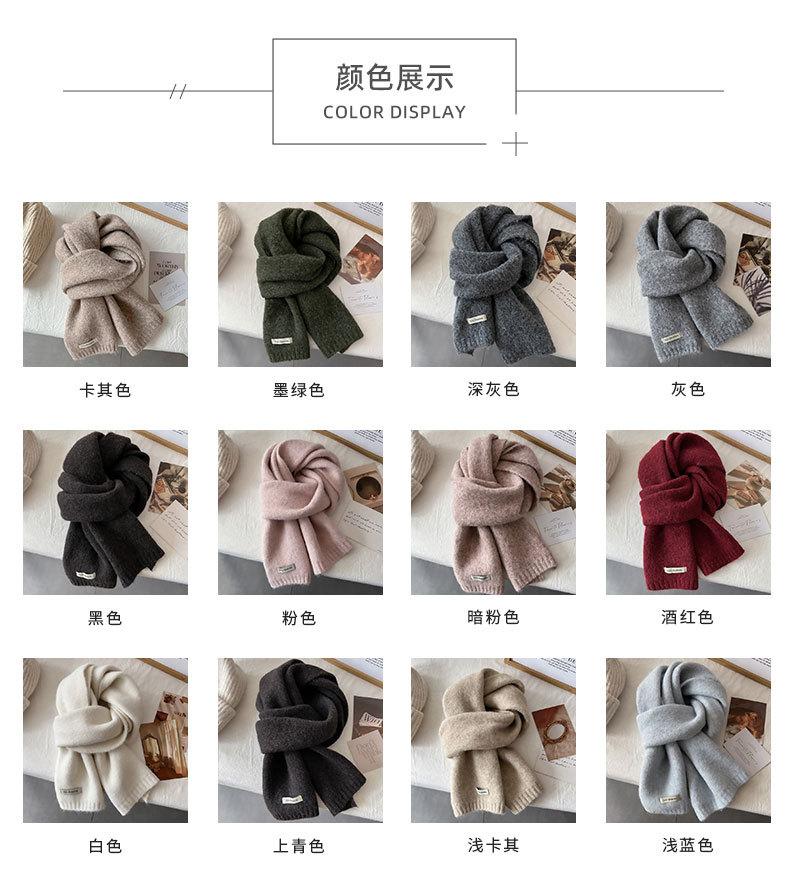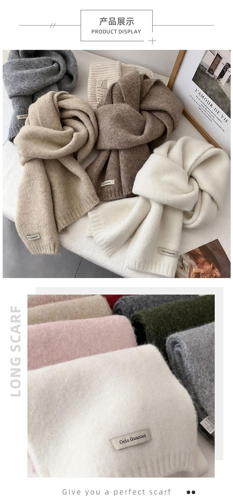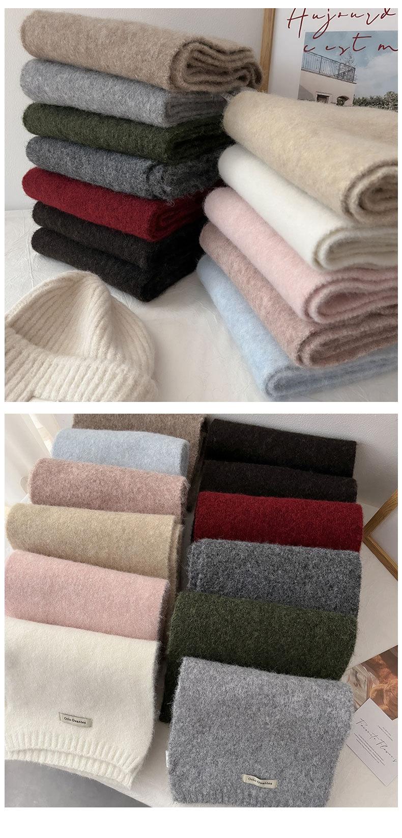 Bufanda de Punto de Color Sólido Suave Cera Amigable con la Piel Combinable Invierno Cálida Lana Cómoda Blanca Estudiante Pareja Coreana
