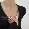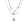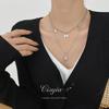 Collar de doble capa con colgante de lazo de cristal, cadena de clavícula de lujo ligera y elegante de lana apilada.