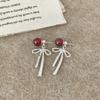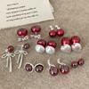 Pendientes de perla roja gris fría para mujer, aretes ligeros de lujo, de estilo nicho, exquisitos y combinables, novedad de 2024