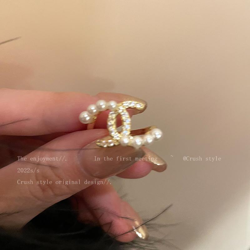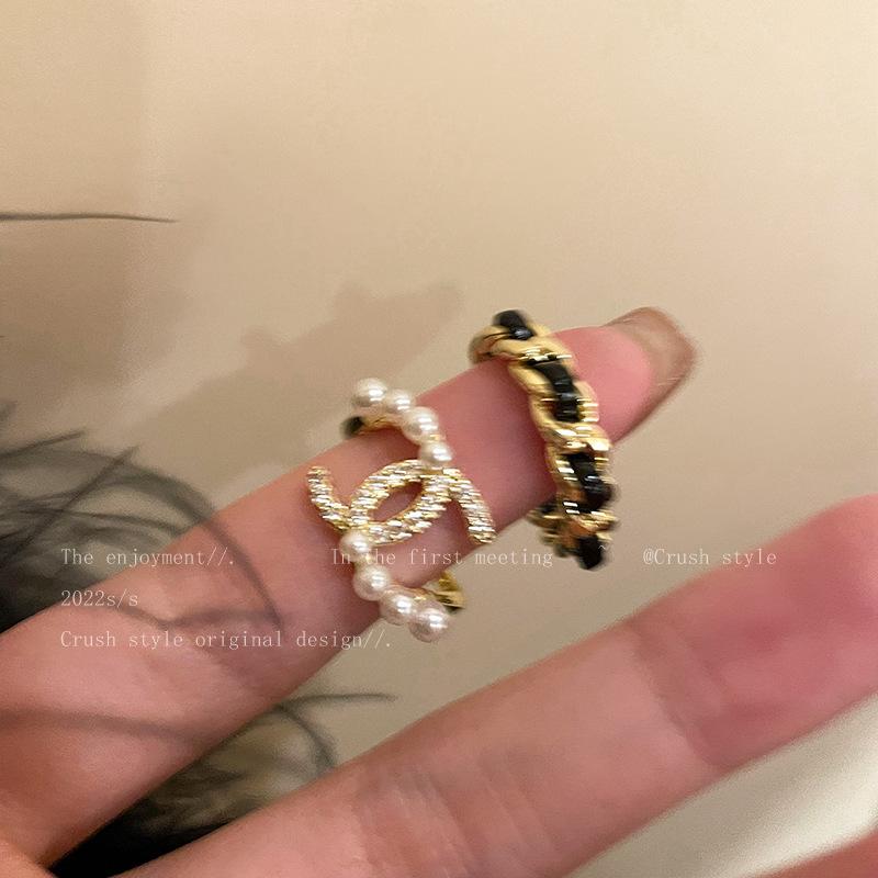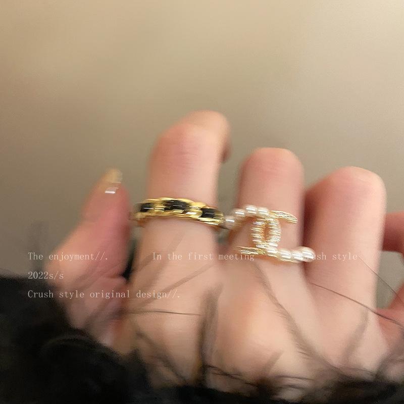 Anillo de dedo de alta calidad con diseño de nicho, estilo Hepburn, anillo distintivo de moda, anillo abierto de perla y circón.