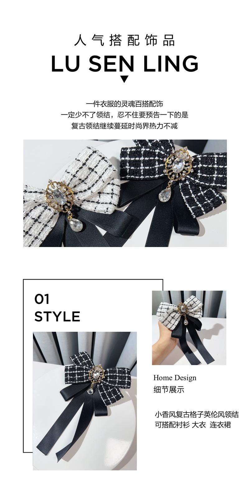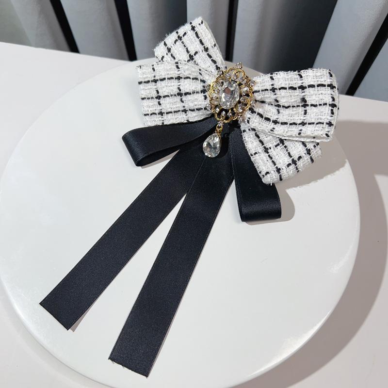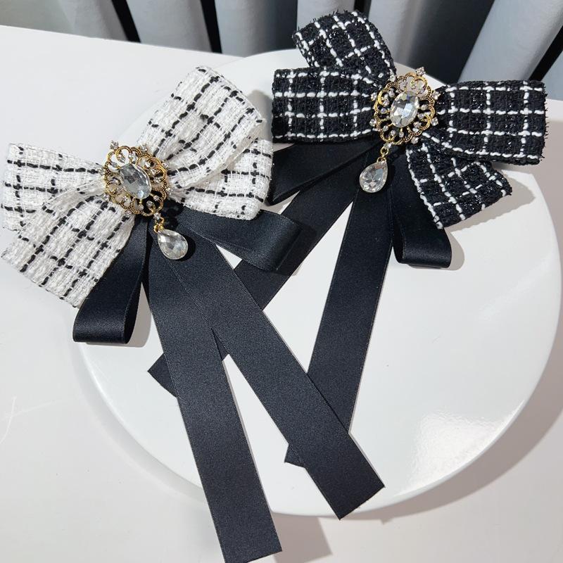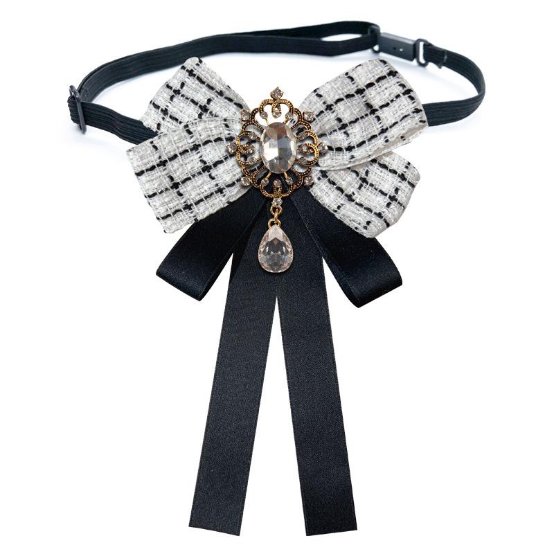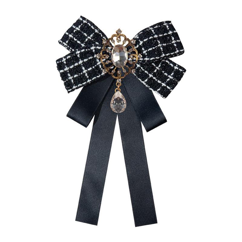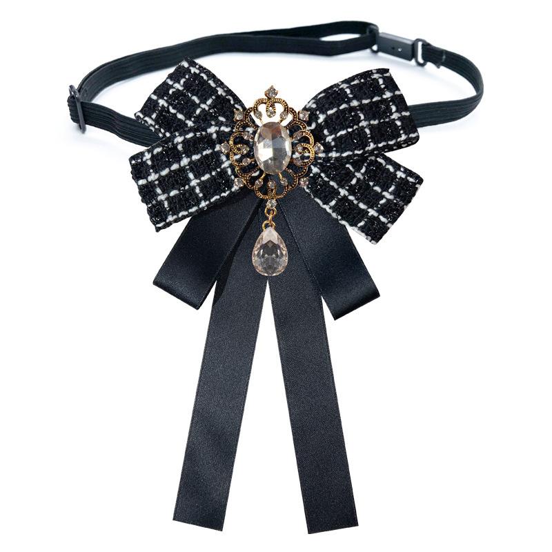Estilo Coreano Estilo Amazon Otoño e Invierno Estilo Pequeño Fragante Aleación Pedrería Broche Lazo Grande Corbata Negra Accesorios para Camisa de Mujer