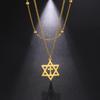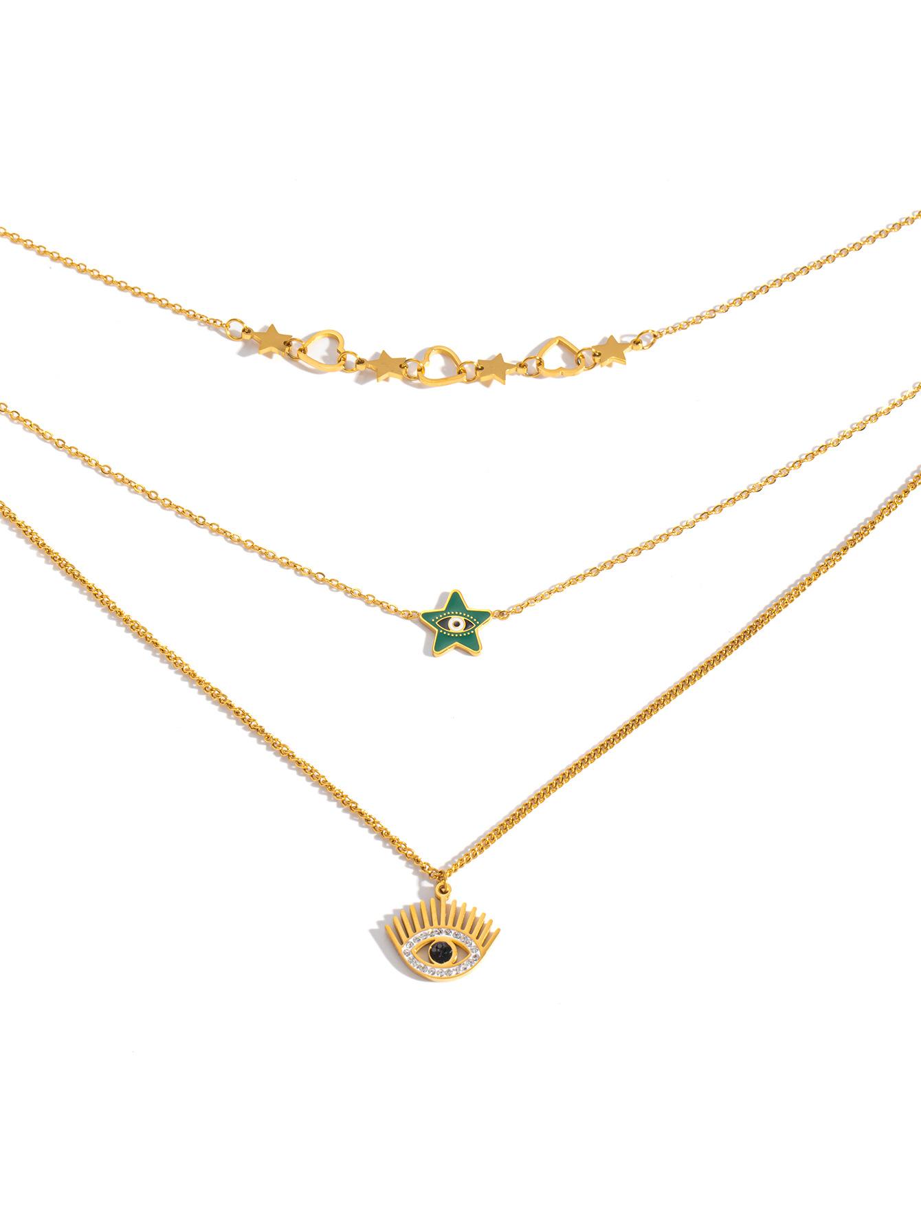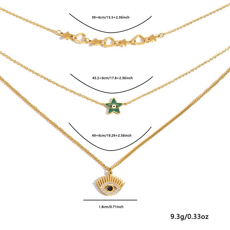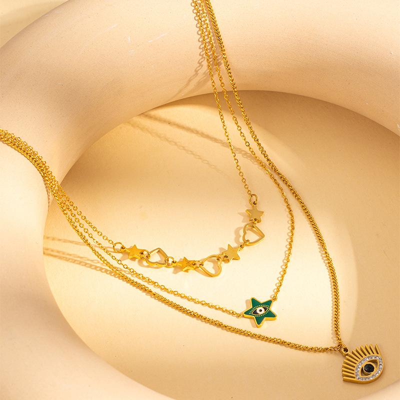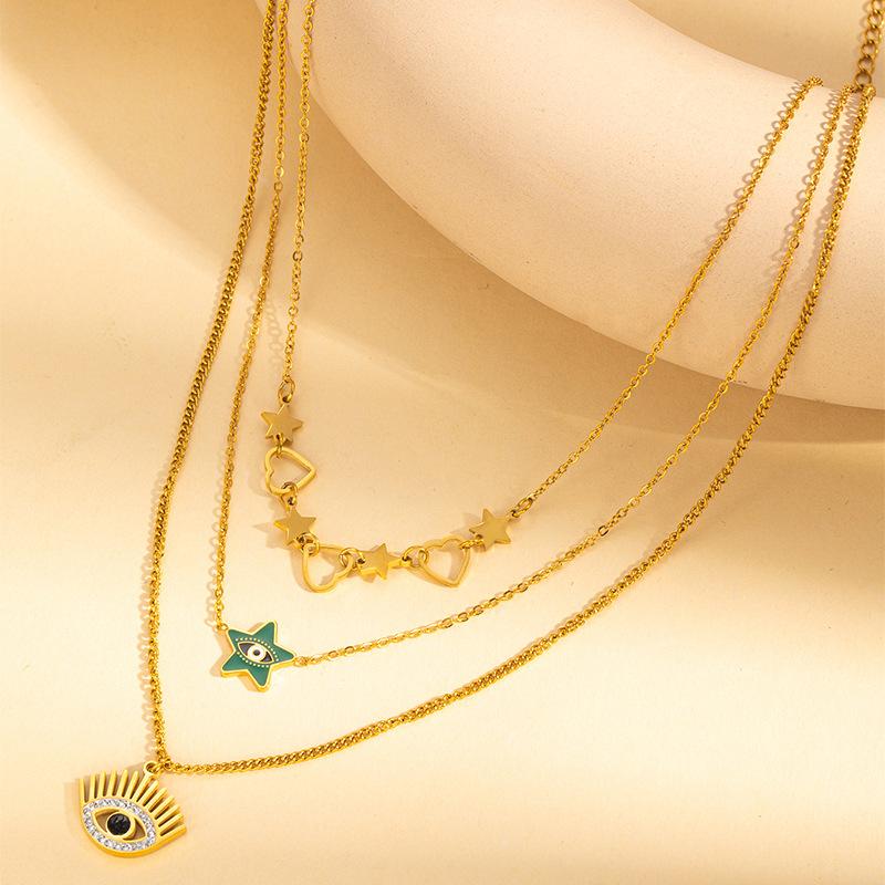 Collar de Acero Inoxidable Moda Europea y Americana Retro Cadena Clavicular de Tres Capas Ojos de Amor Cadena Estrella de Cinco Puntas Collar de Acero Titanio para Mujer