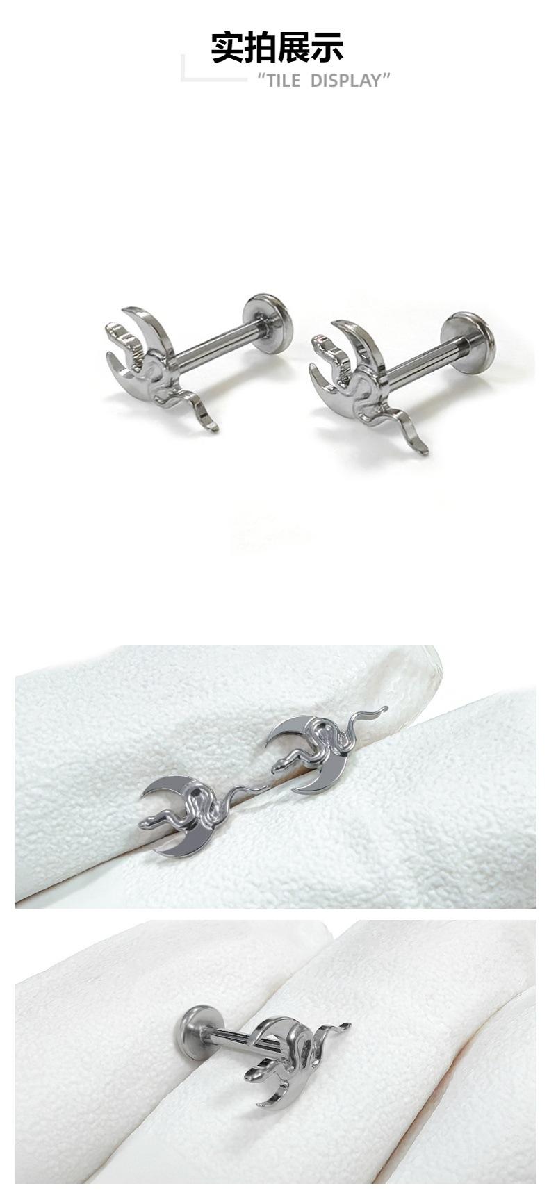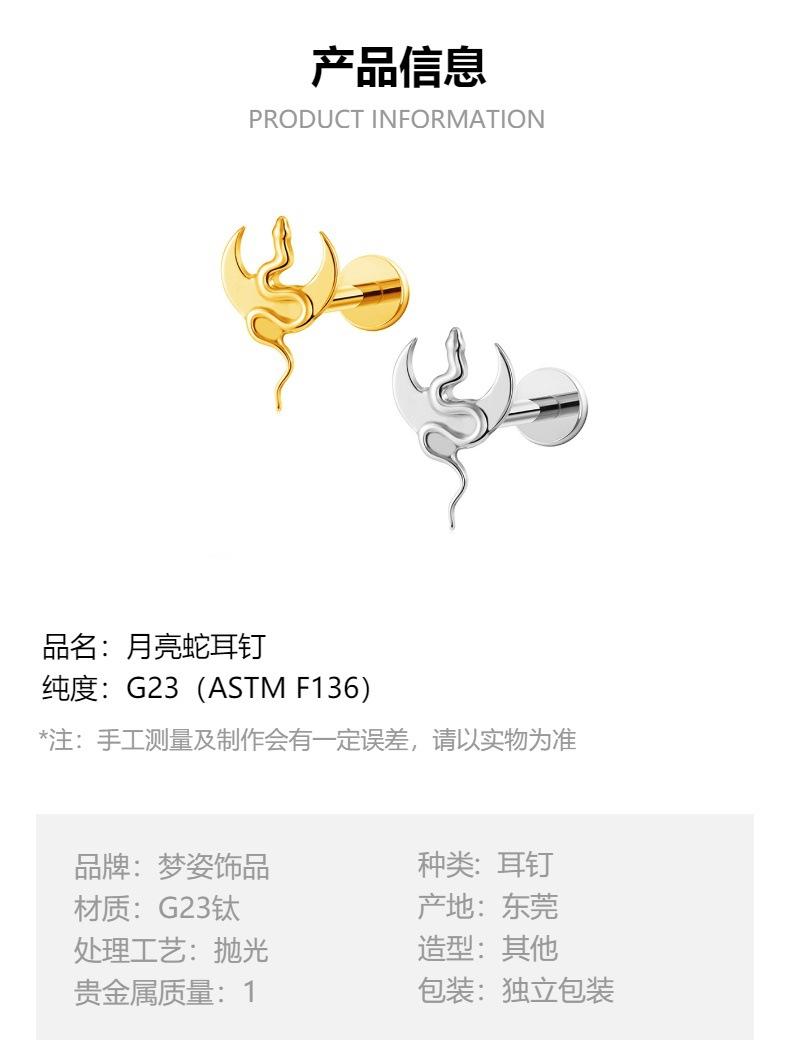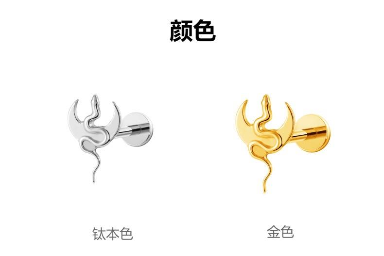 Clavo de titanio F136 con forma de serpiente y luna, rosca interna, venta transfronteriza, aleación de titanio G23, joyería para perforación humana, clavo para nariz y lengua.