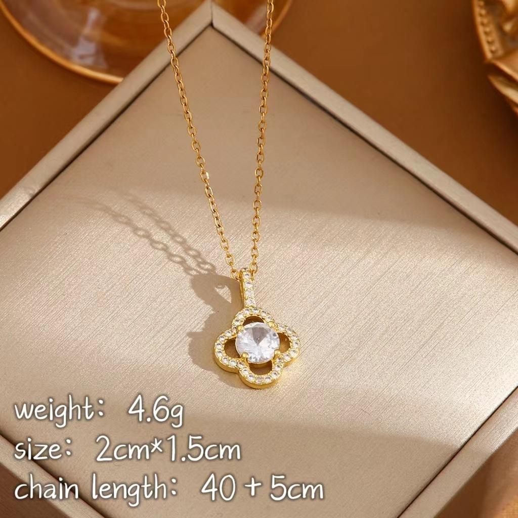 Collar Europeo y Americano Transfronterizo de Lujo Ligero Flor de Cuatro Hojas Transfronterizo Banquete Boda Collar Cadena Clavicular para Mujer Celebridad de Internet Combinable Cadena de Acero de Titanio