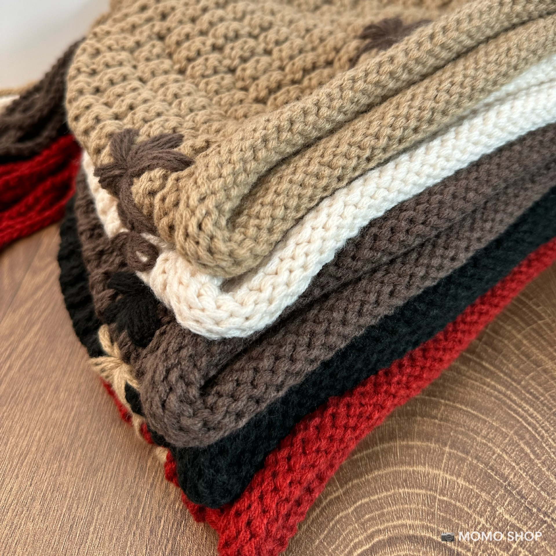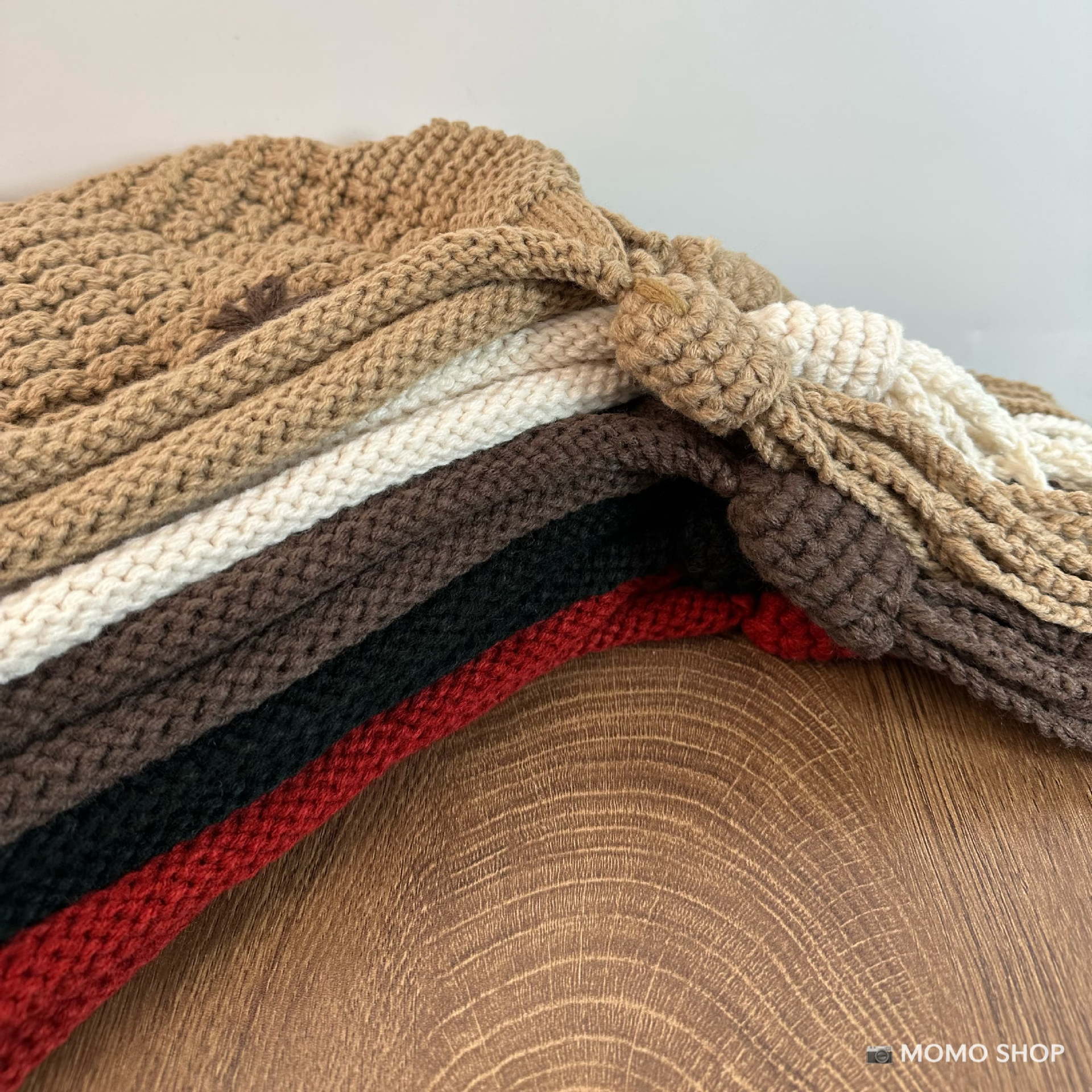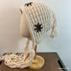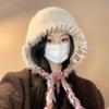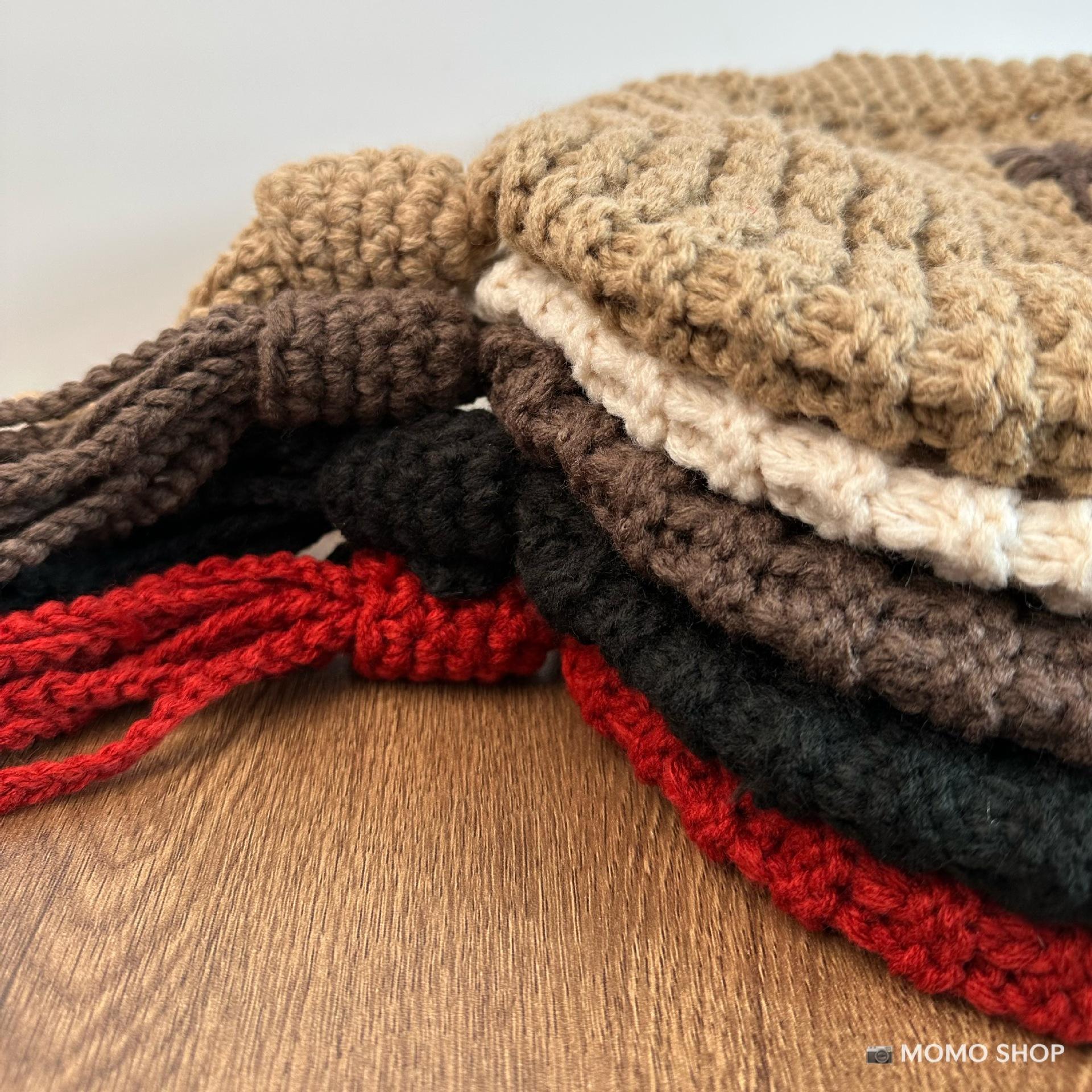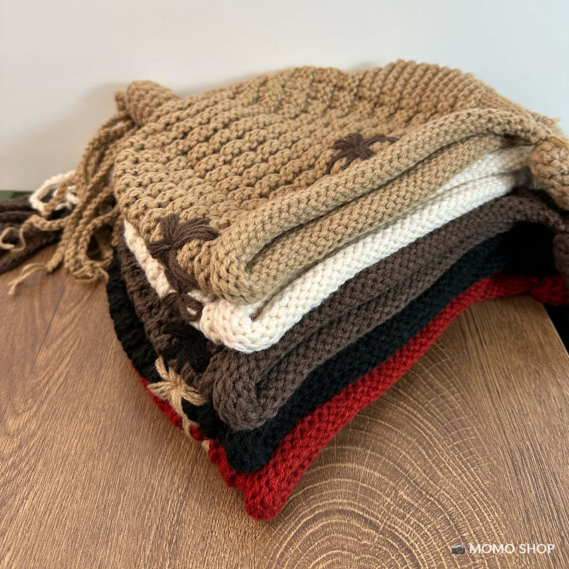 Gorro hecho a mano ~ Gorro de lana con borlas y flores tejidas para mujer, otoño e invierno, cálido, con trenza pequeña y protección para las orejas.