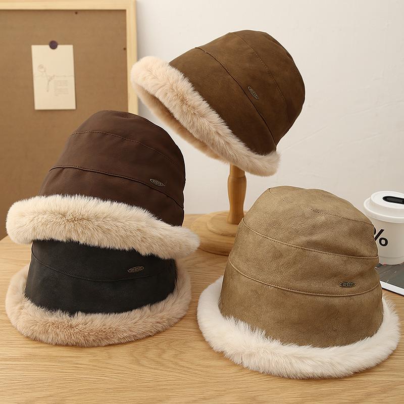 Sombrero Cálido de Gamuza de Alta Gama para Mujer Invierno Protección para los Oídos a Prueba de Viento a Prueba de Frío Grueso de Felpa Sombrero de Pescador Simple Combinable Sombrero de Invierno