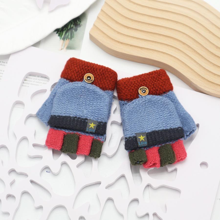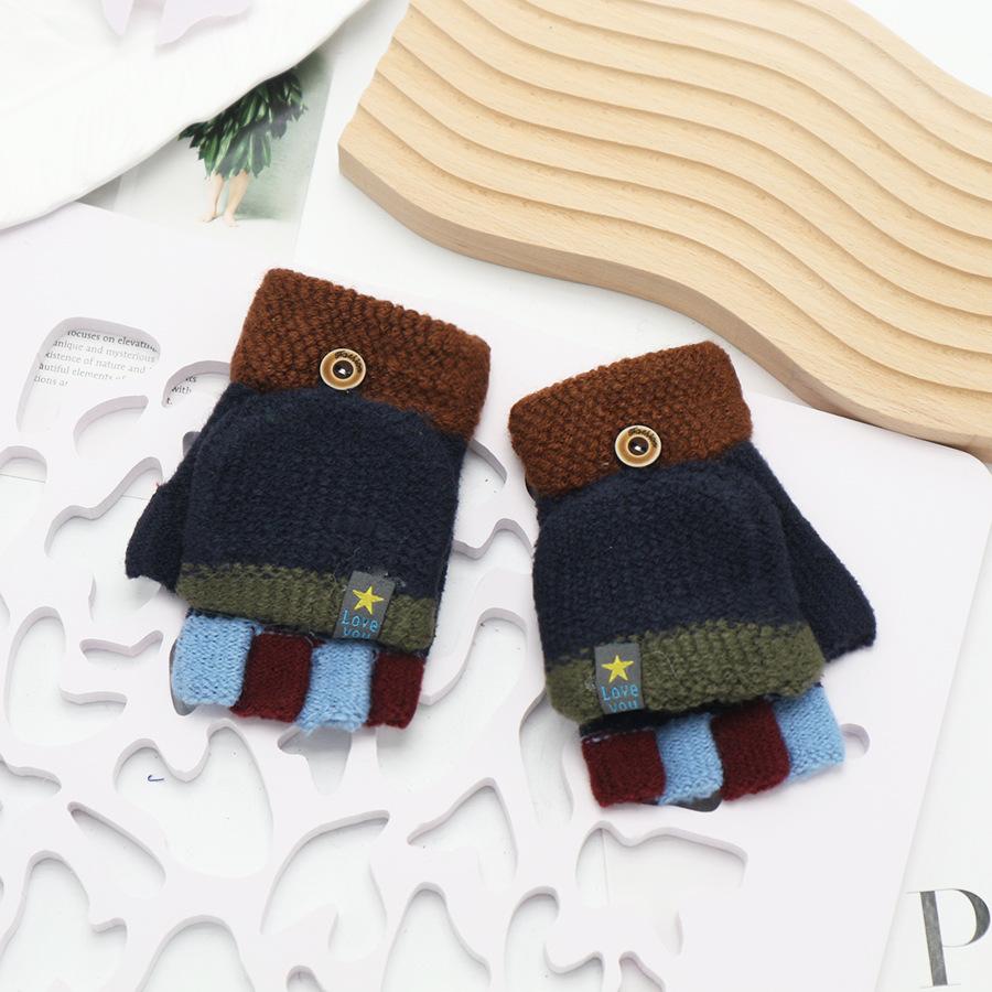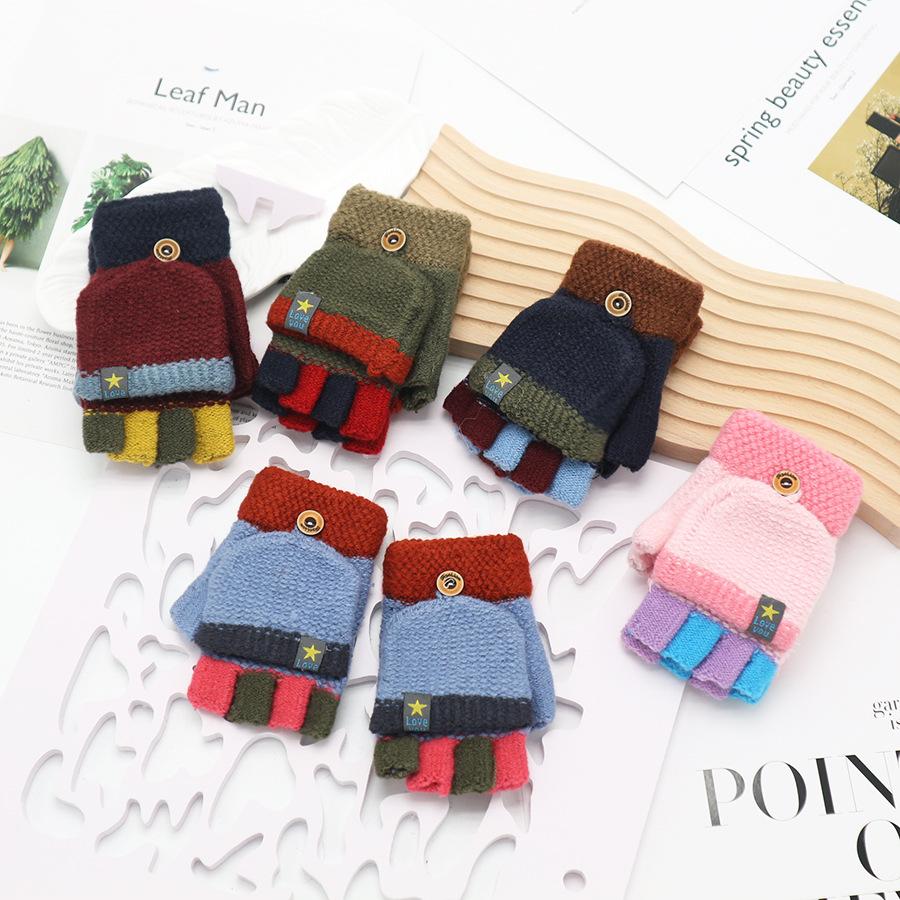 Guantes Flip para Niños Invierno Niños y Niñas de Mediana Edad Cálidos Estudiantes Estilo Coreano Lana Engrosada Extra-dedo Medio Dedo A Prueba de Frío Escritura