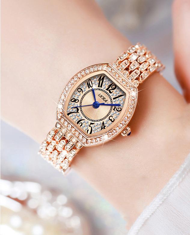 Reloj Yinlang/INRA de lujo para mujer, con esfera de vino y diamantes, resistente al agua, de cuarzo