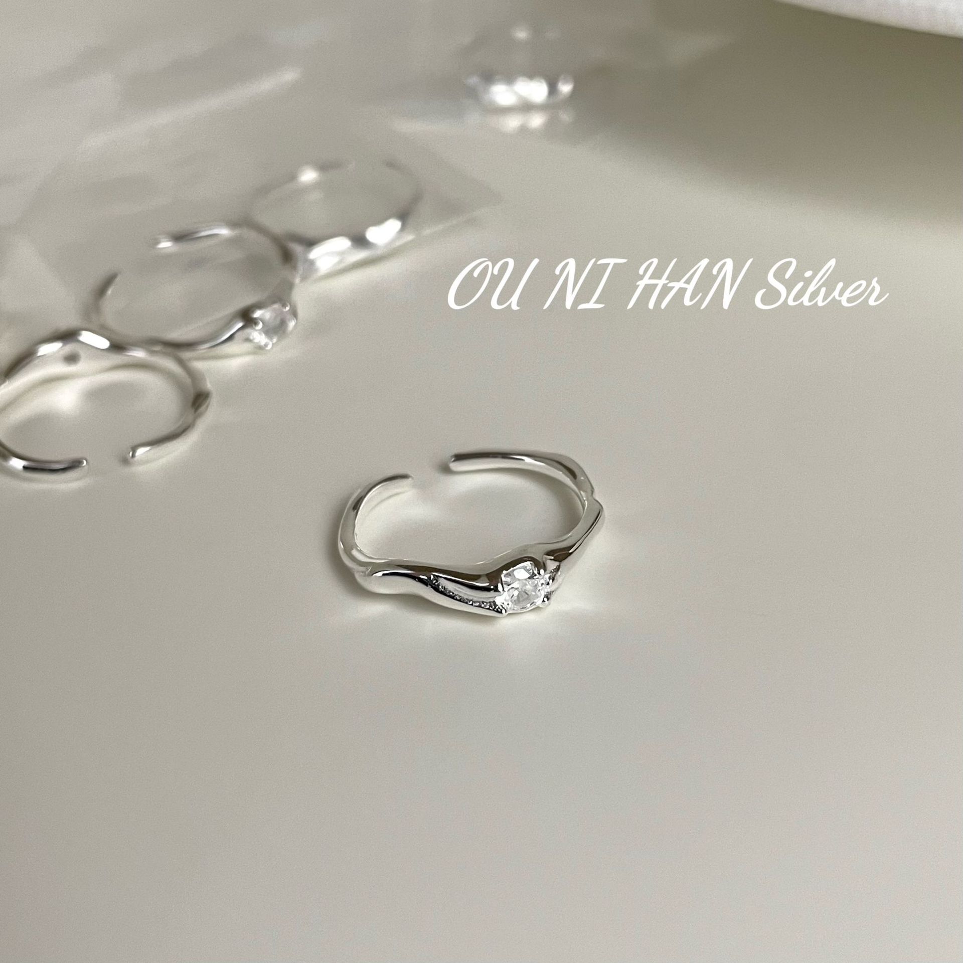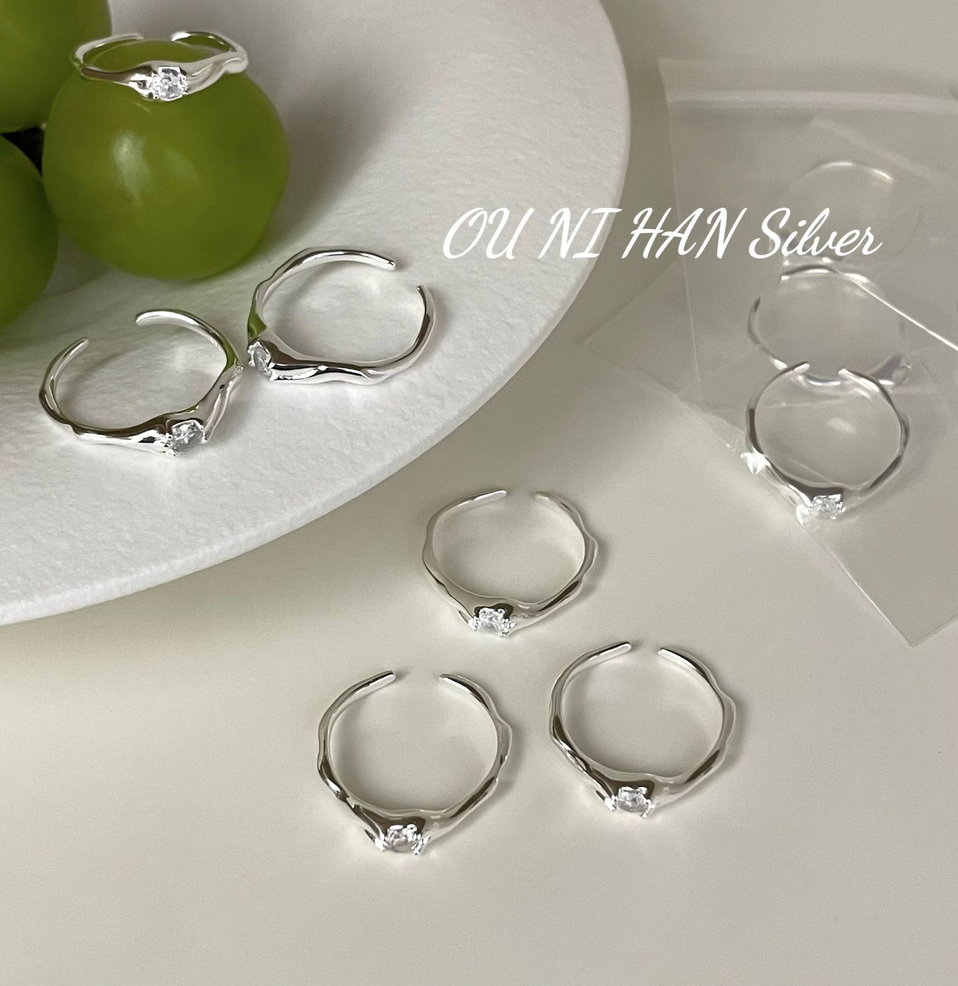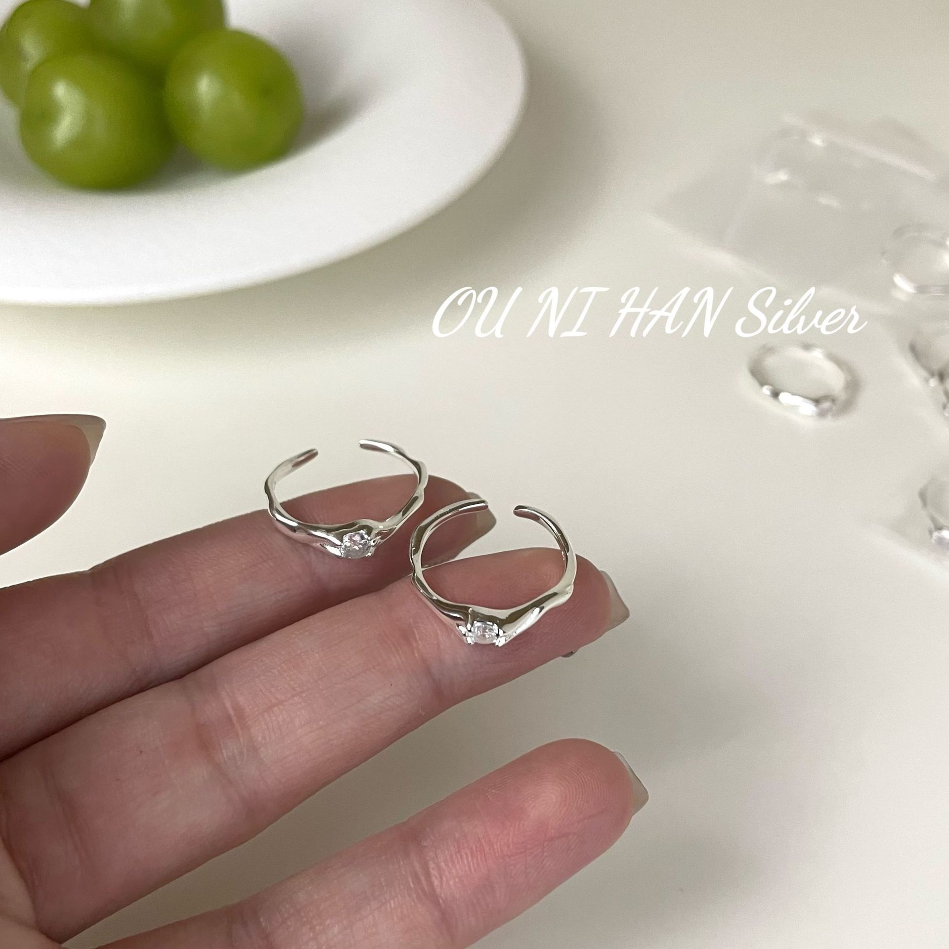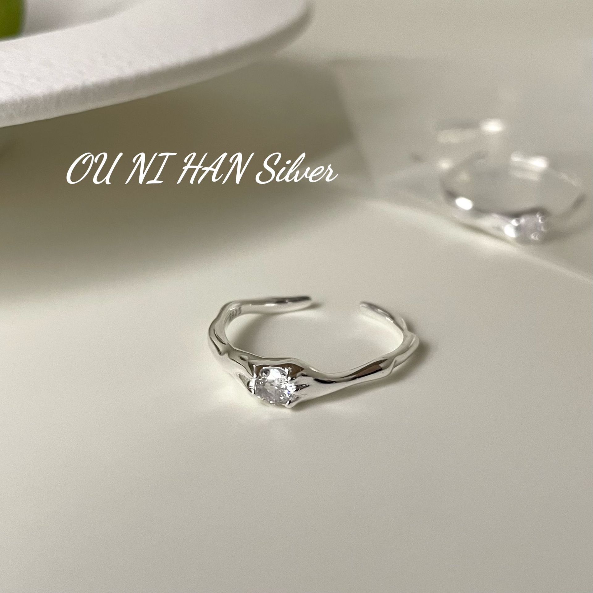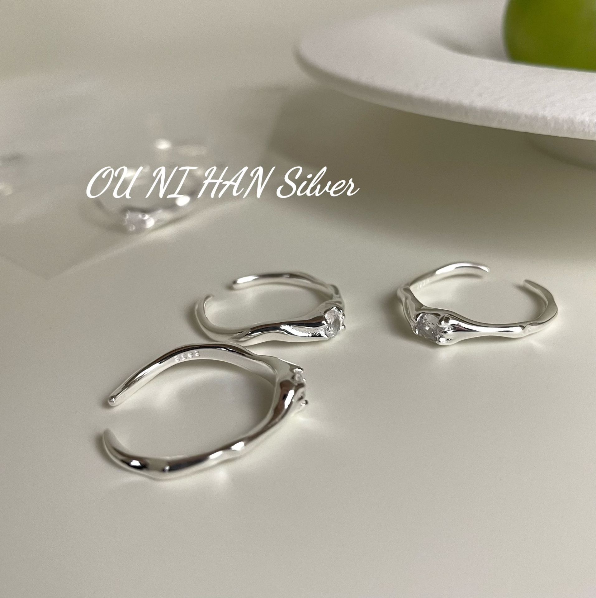 Anillo Abierto Ajustable de Plata Esterlina S925 Onihan de Sensación Premium con Circonita Micro-incrustada Estilo Cool Personalizado Anillo Simple