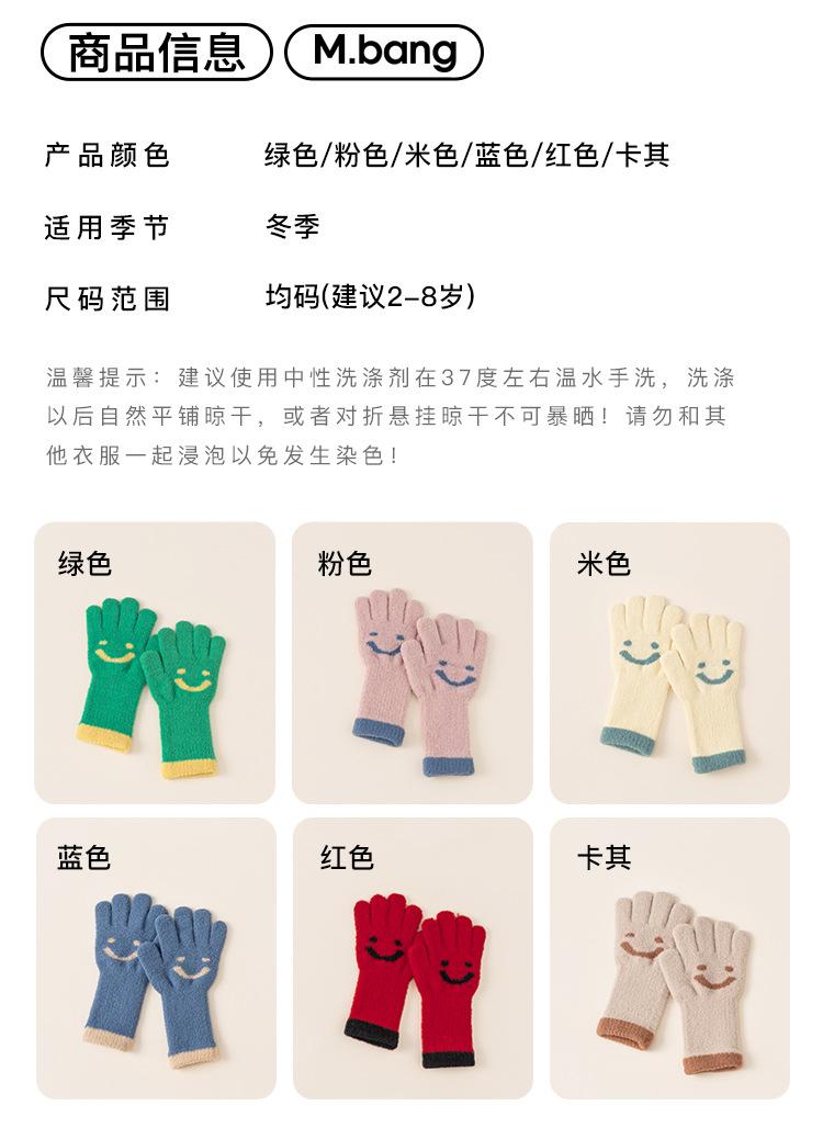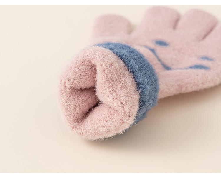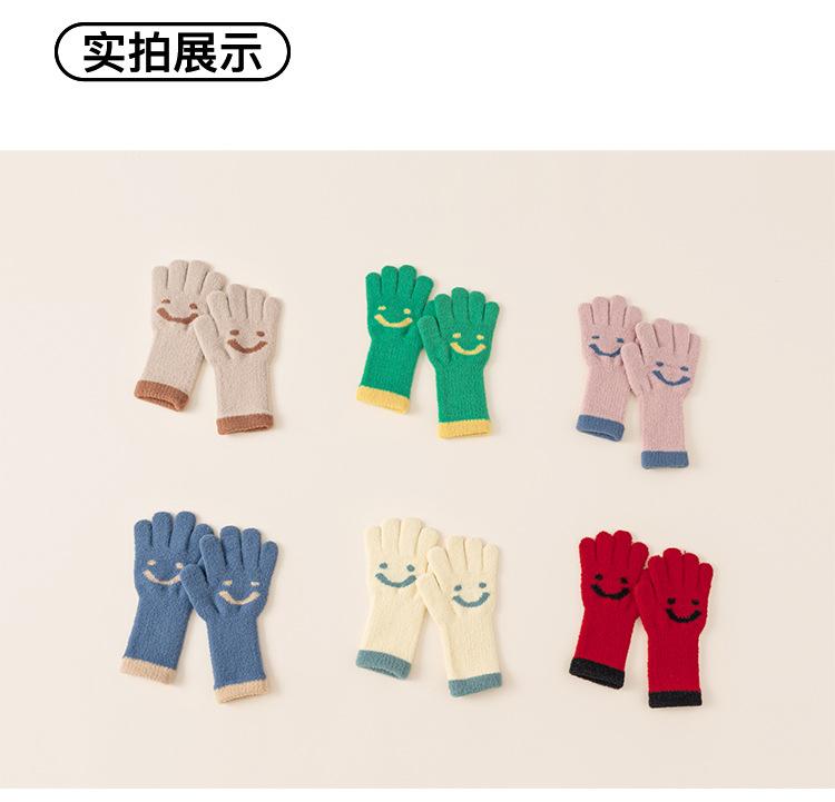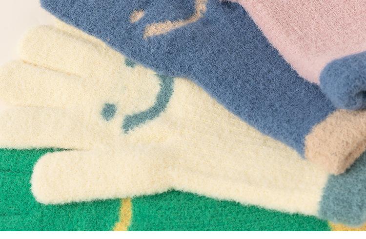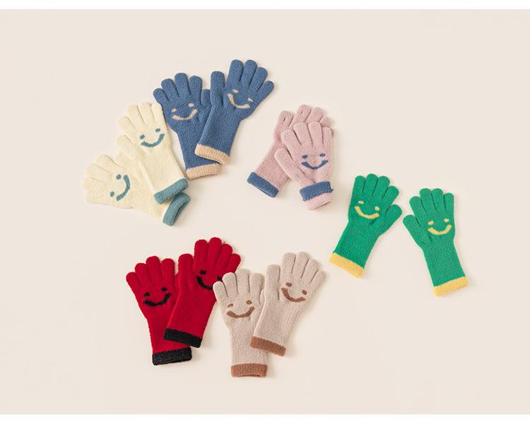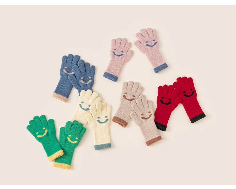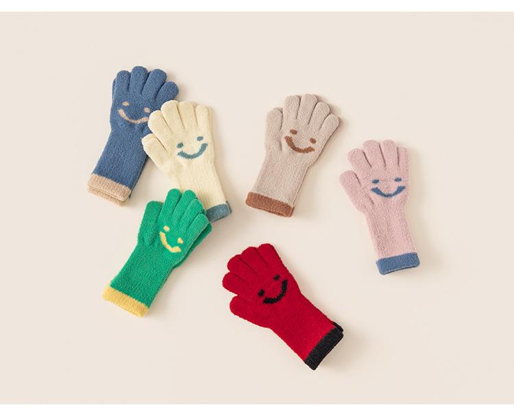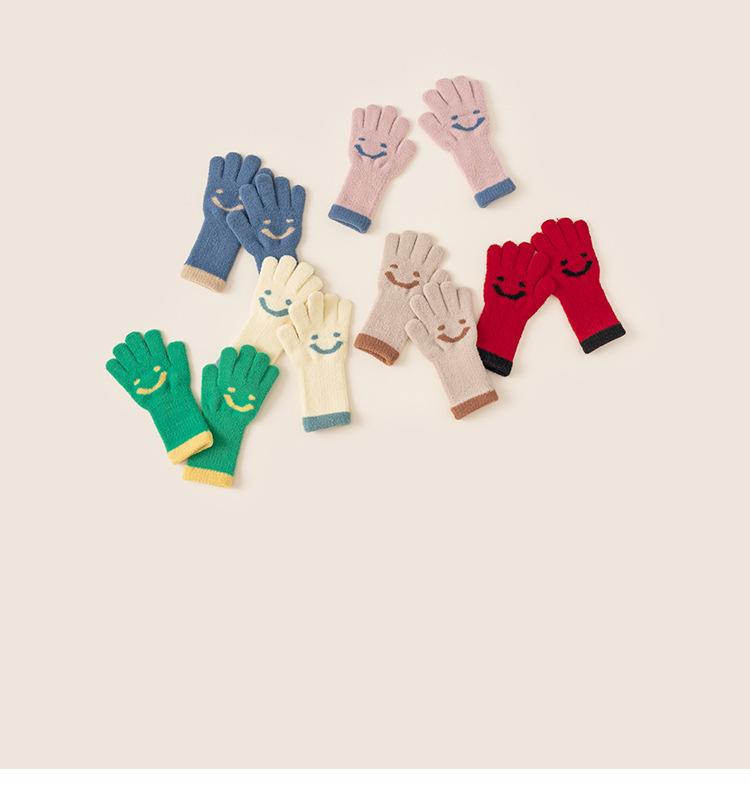 Ropa Infantil Yubao Guantes para Niños Invierno Nuevo Agujero Dividido de Cinco Dedos Smiley Niñas Tejidos Cálidos Guantes para Niños