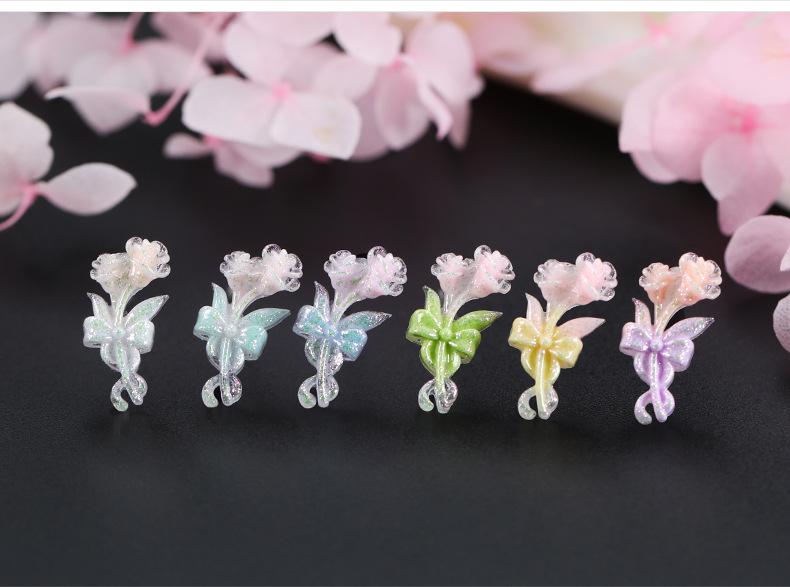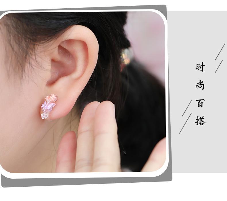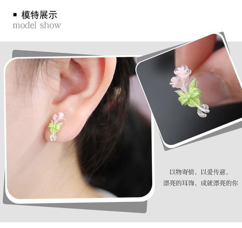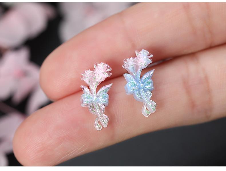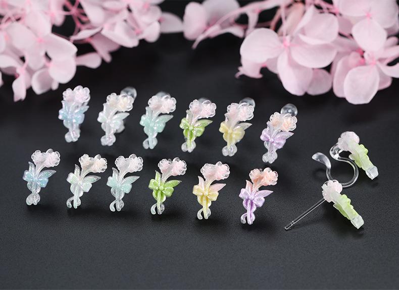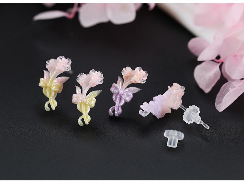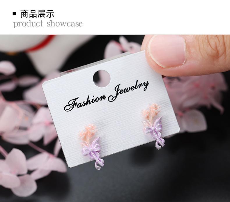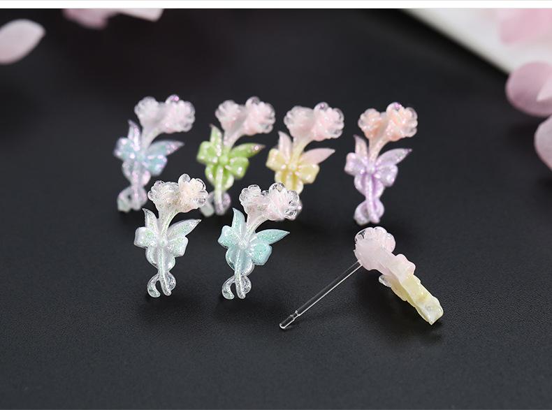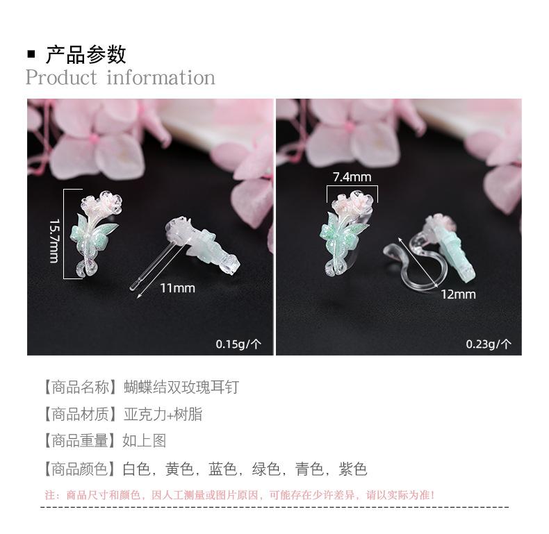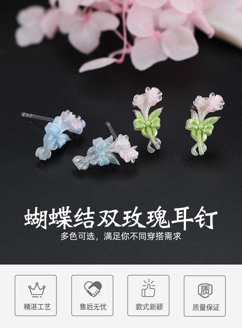 Bow double rose earrings/with daisy ear plugs, Bow double rose ear clips