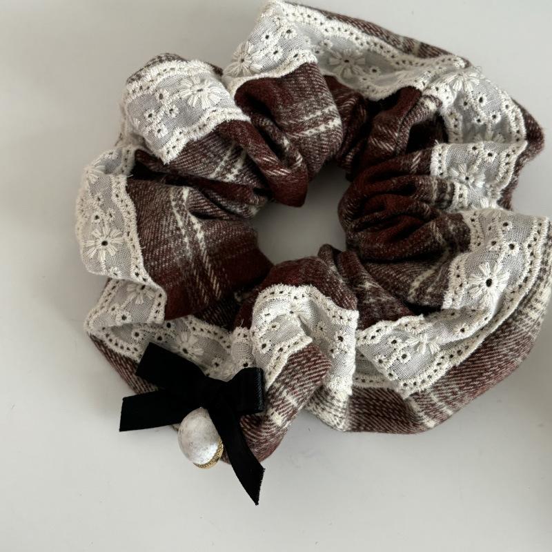 1# Khakis Stripe Bow Hairpin Pair, 2# Khakis Flower Clamp, 4# Khakis Striped Hair Ring with Black Edge
