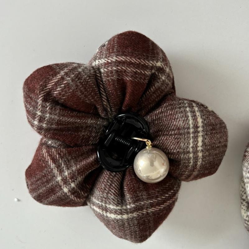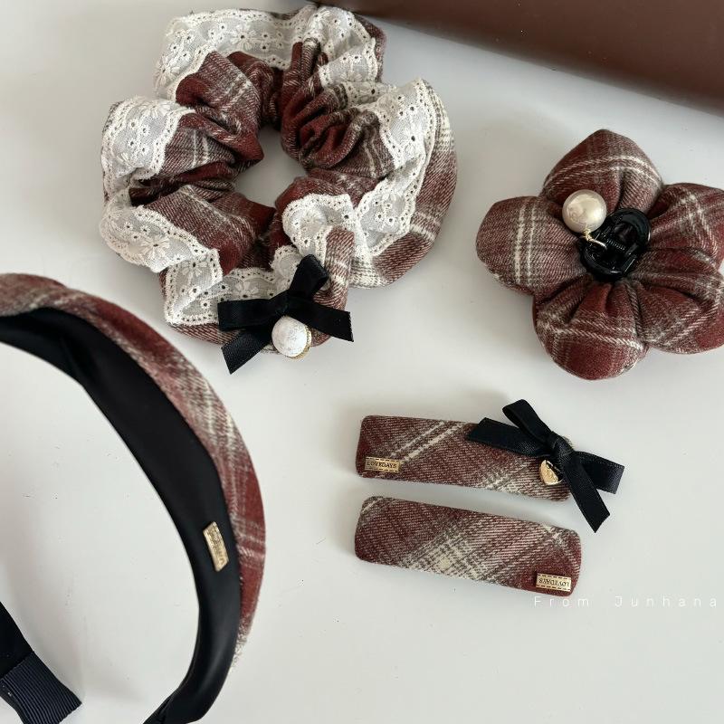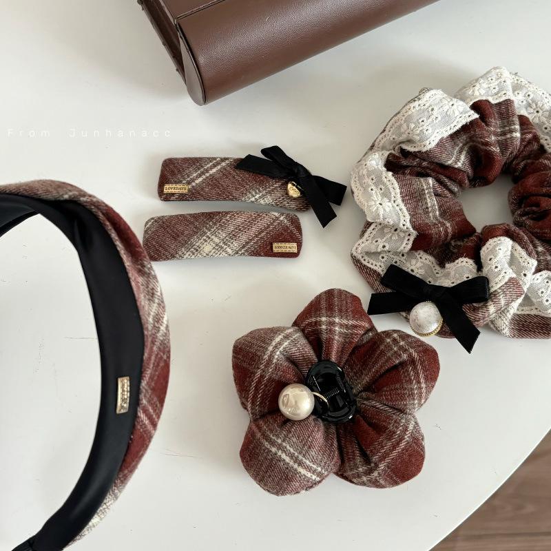 Serie francesa roja y marrón, horquilla para el cabello, accesorios para el cabello, diadema de terciopelo con perlas, diadema para otoño e invierno, horquilla suave que combina con todo, tocado