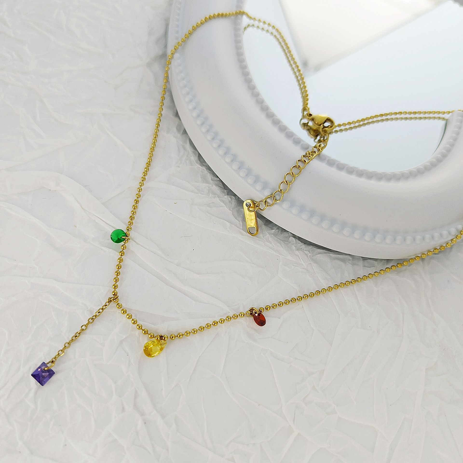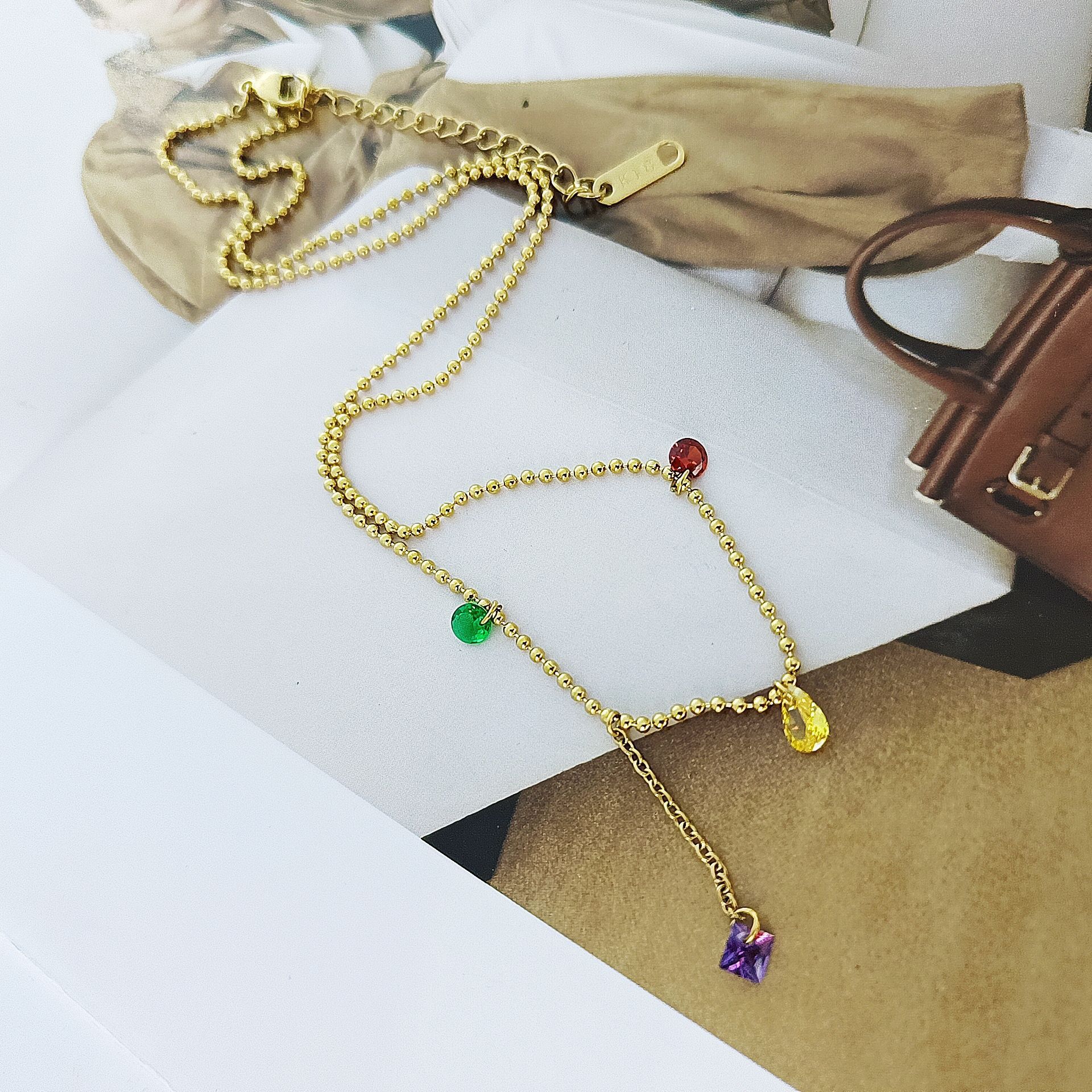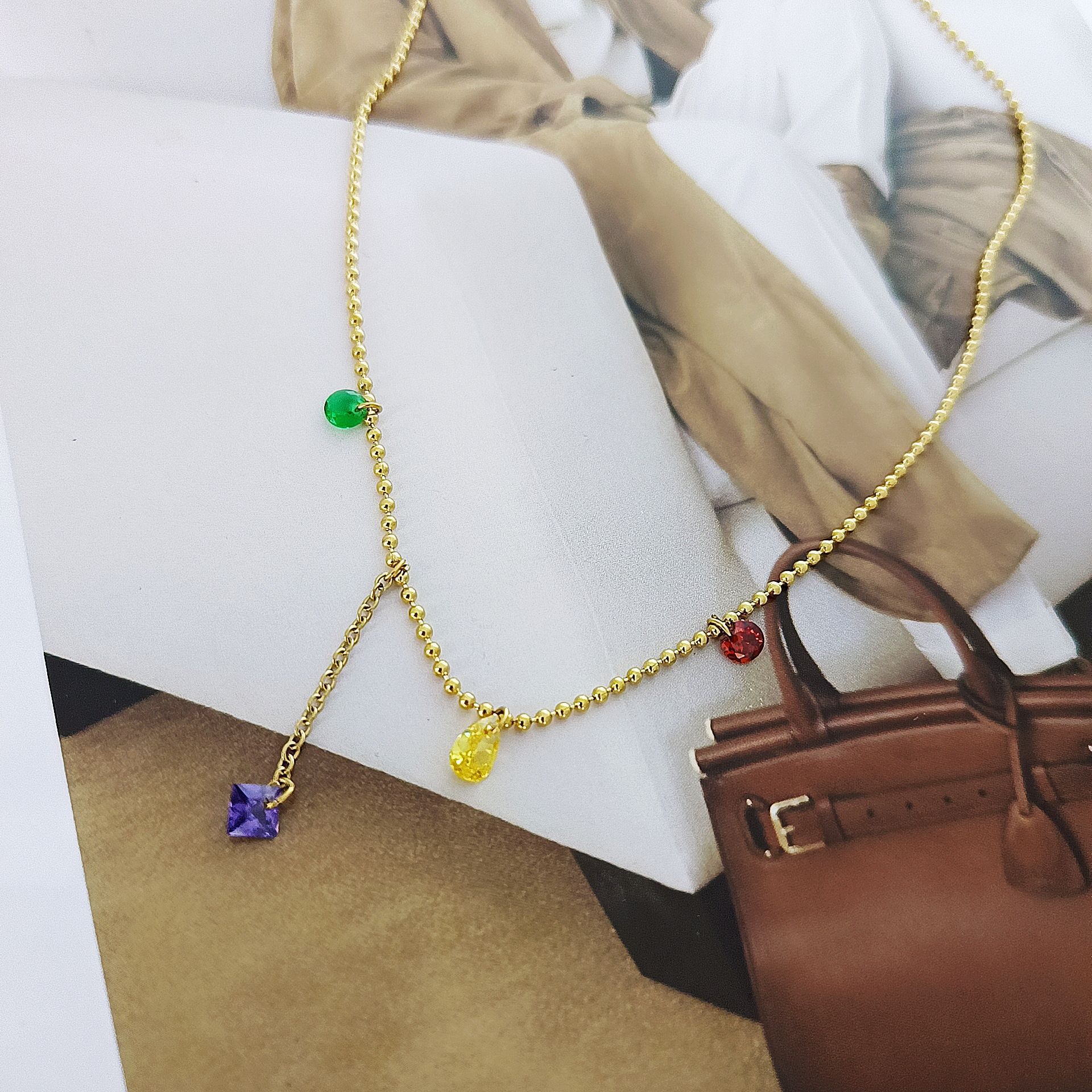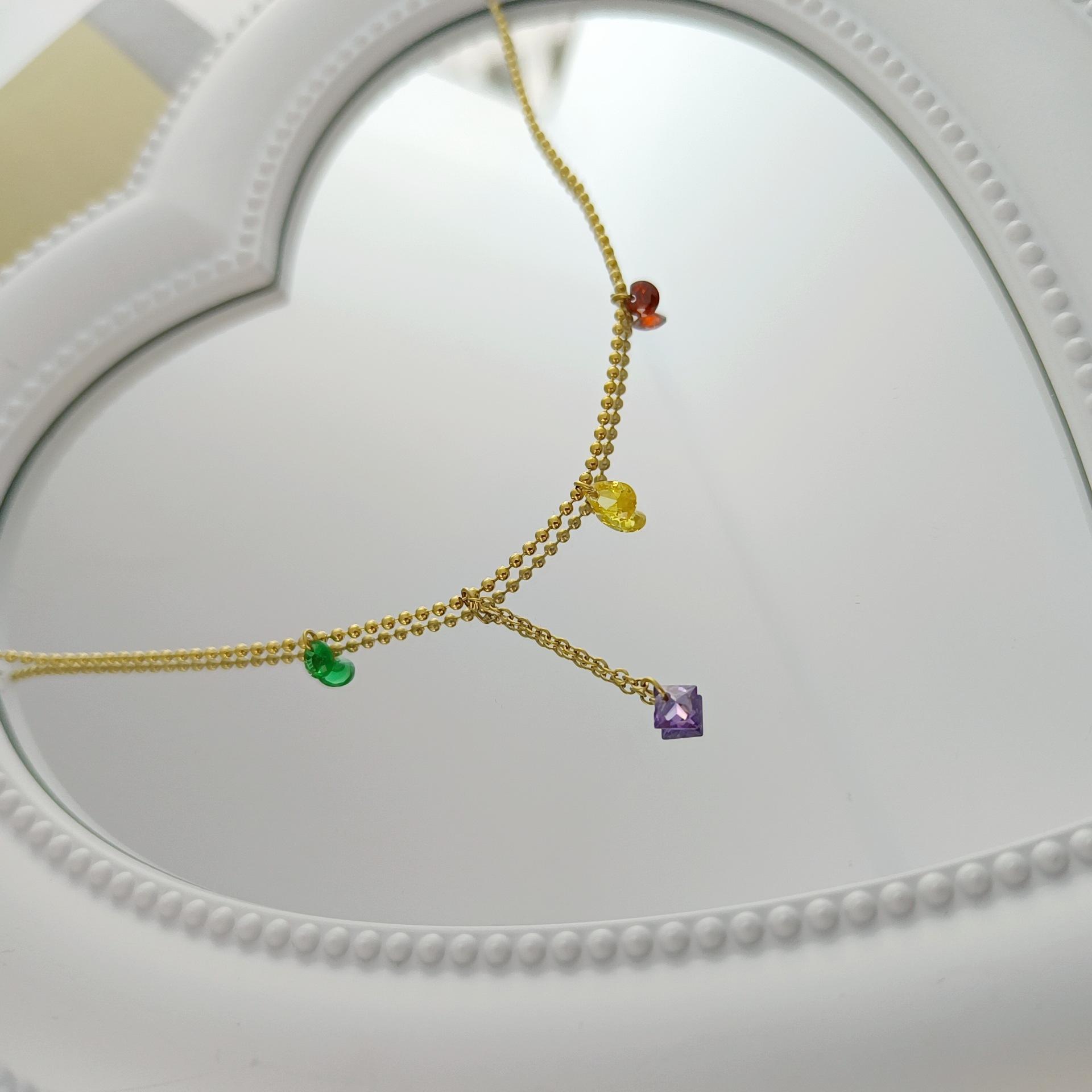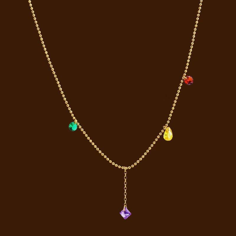 Nuevo collar de acero de titanio con borlas de diamantes de color dopamina para mujer, cadena de clavícula de acero inoxidable de lujo ligera, accesorios de moda que combinan con todo, al por mayor