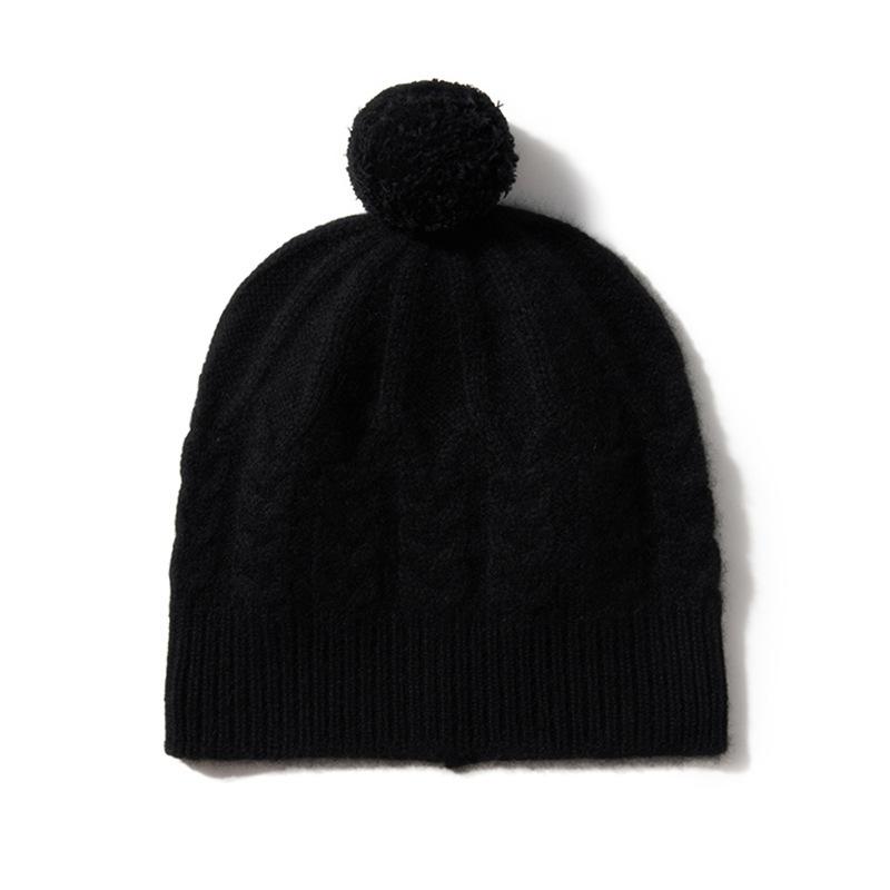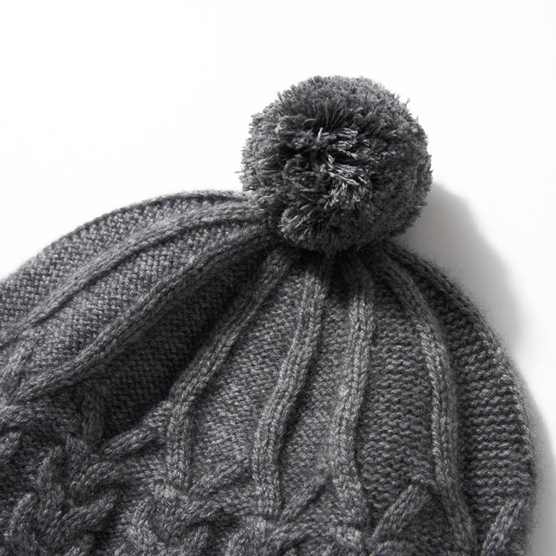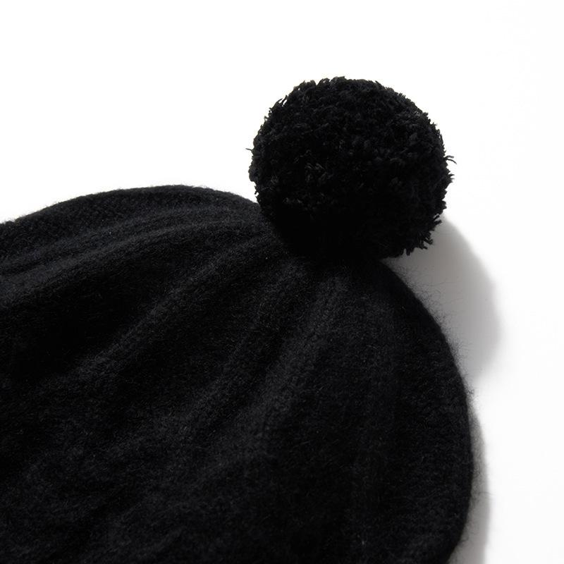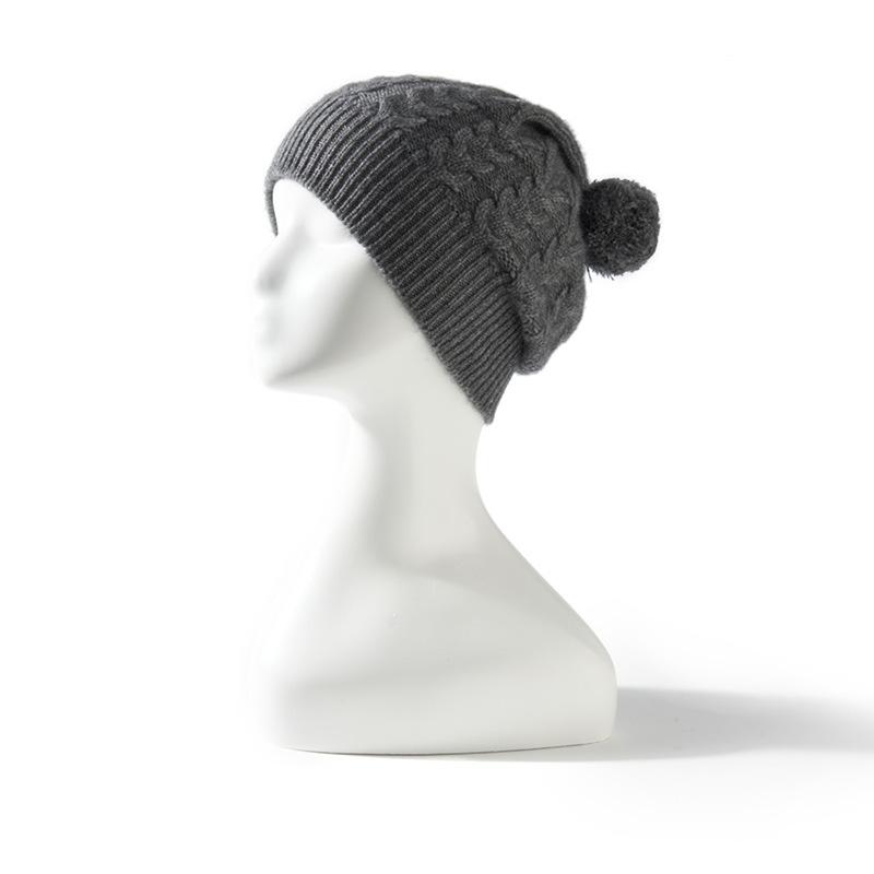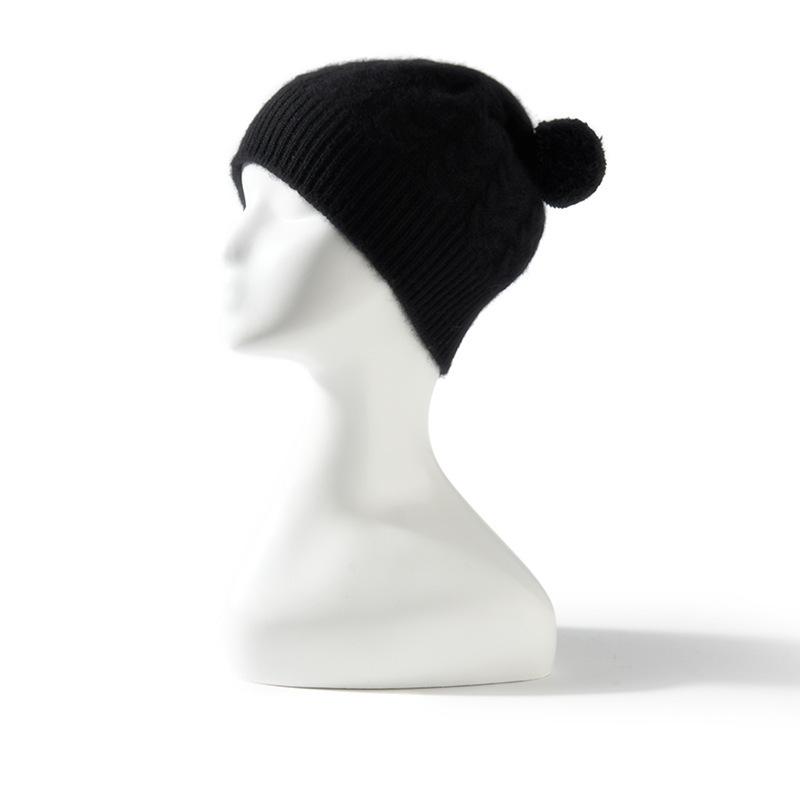 Cachemira 2024 otoño e invierno nuevo para mujer color sólido flor retorcida al aire libre cálido bola de lana orejeras sombrero tejido casual