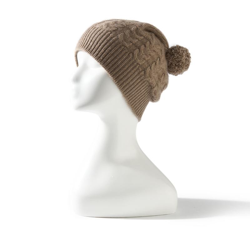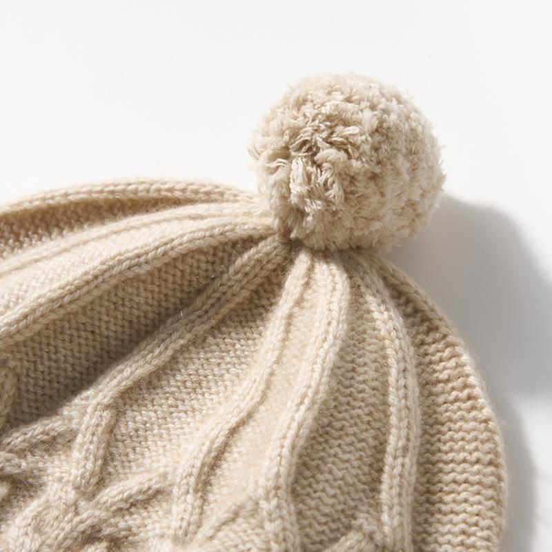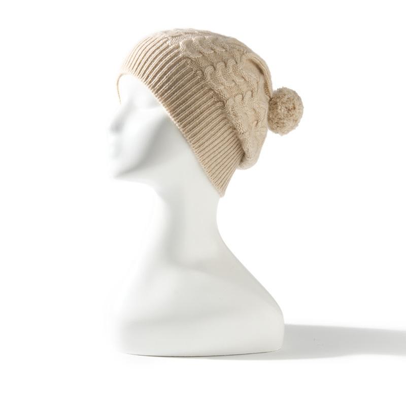 Cachemira 2025 Otoño e Invierno Nuevo Sombrero de Punto Casual de Color Puro Trenzado para Mujer, Cálido para Exteriores con Protección para las Orejas con Bola de Pelo
