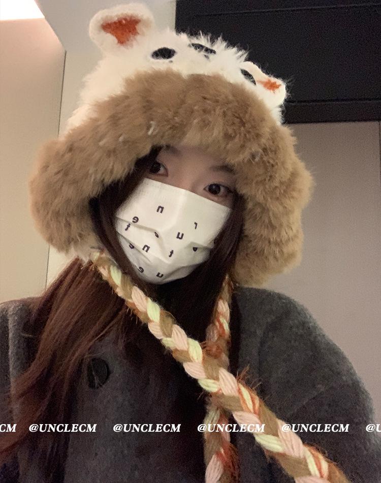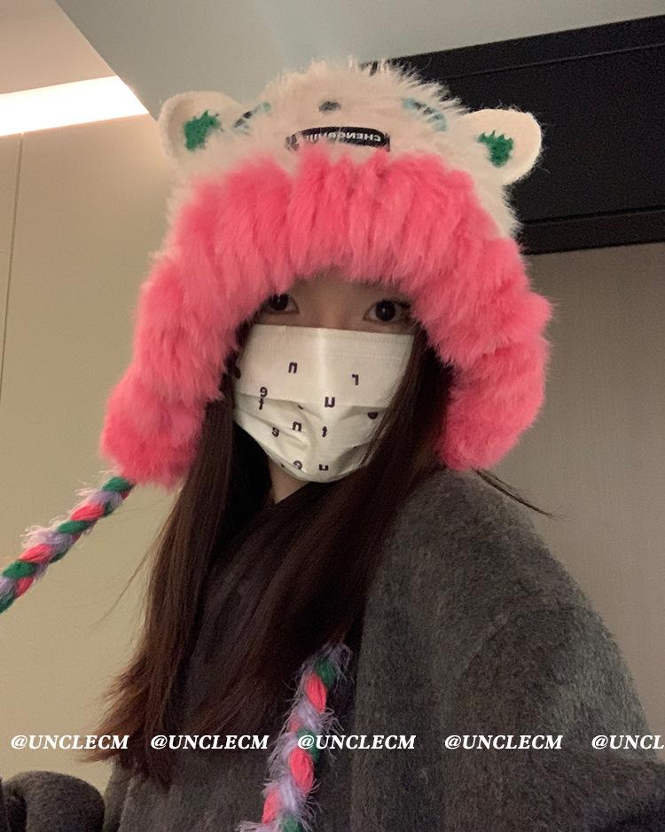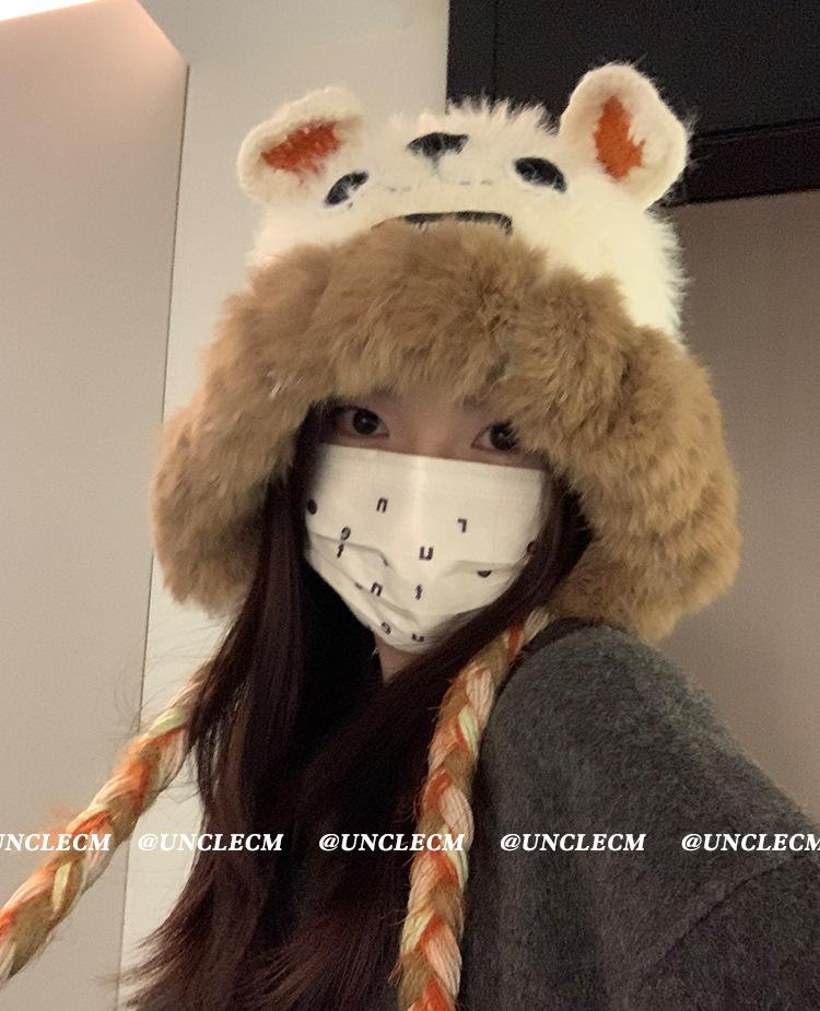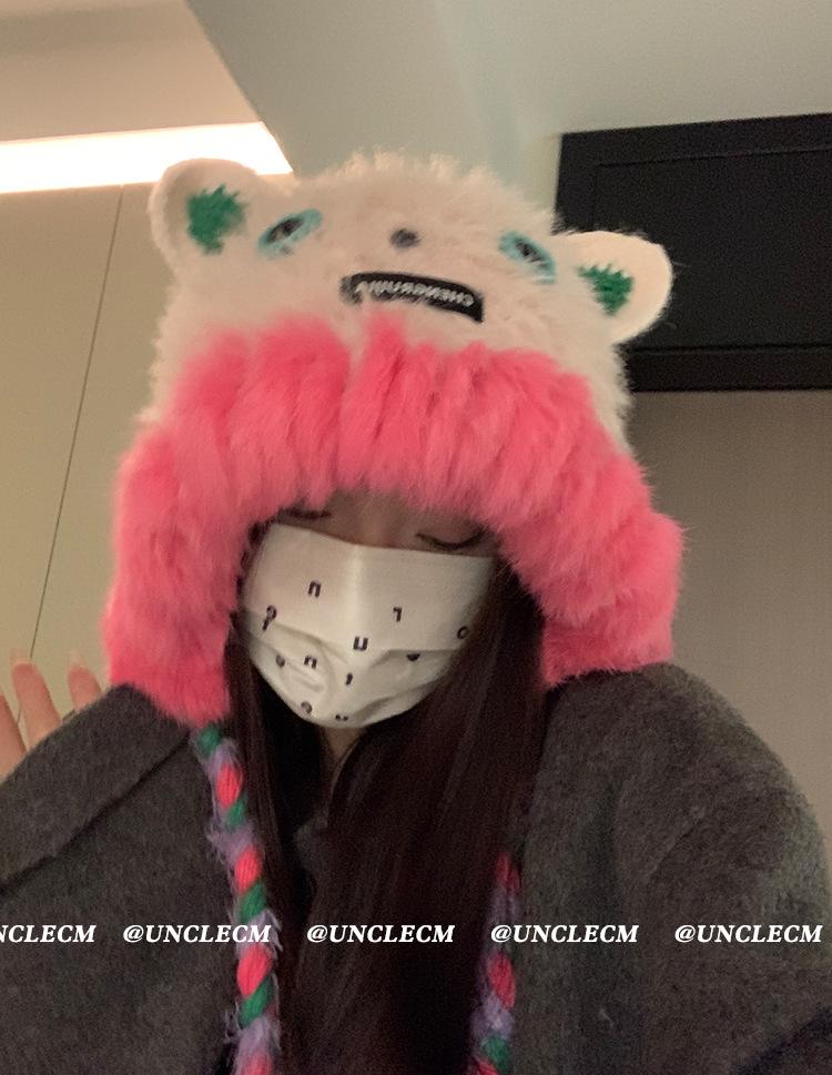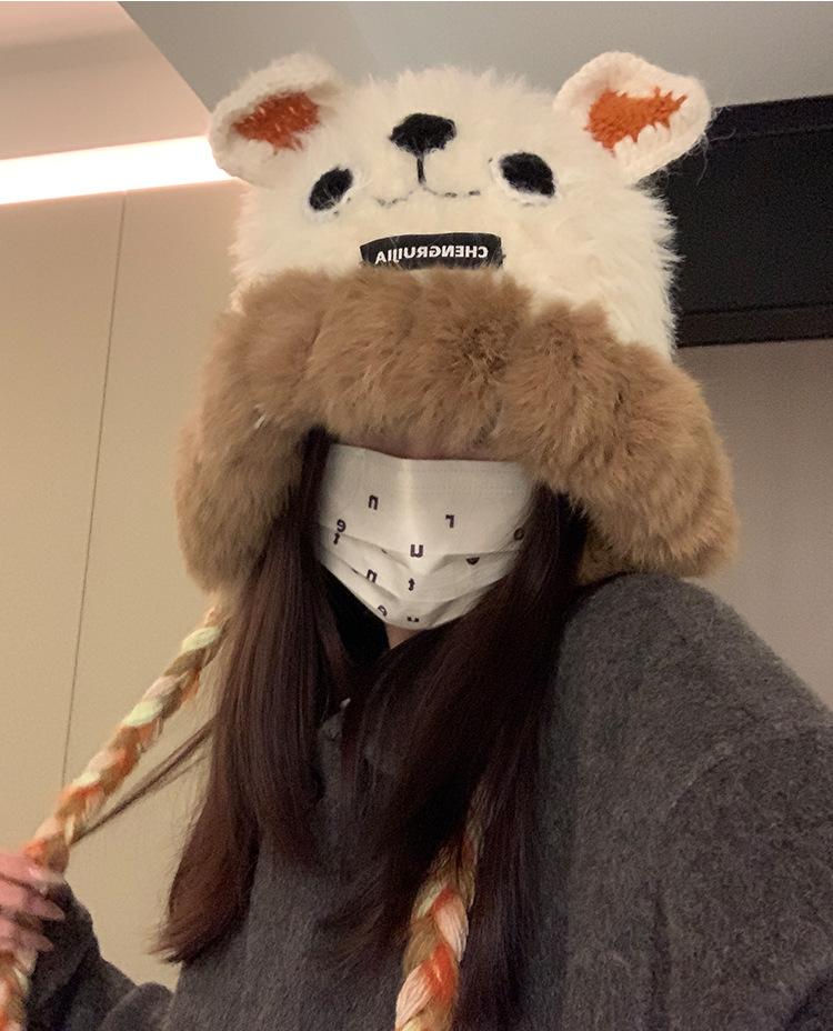Gorro de oso de peluche monstruo para mujer, otoño e invierno, nuevo, dulce, lindo, pequeño gorro de lana con protección para las orejas, gorro Lei Feng blanco