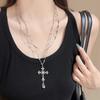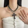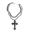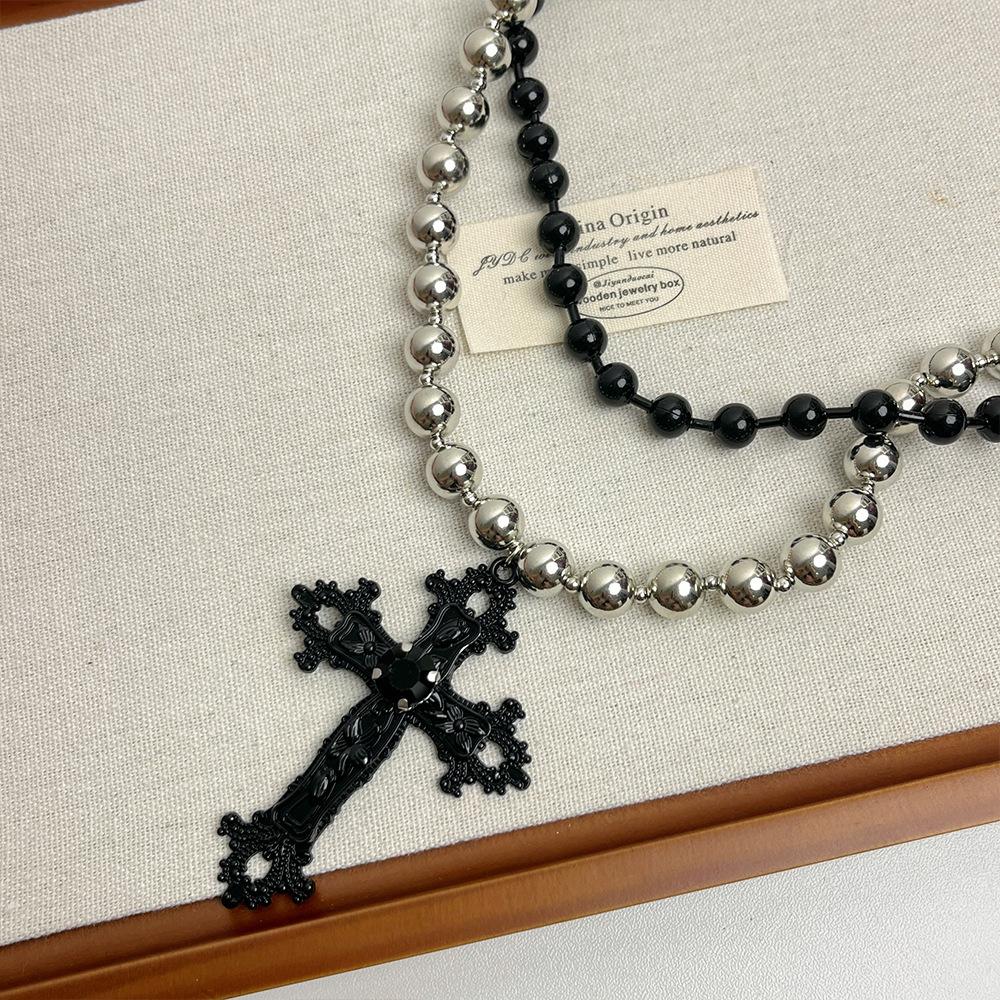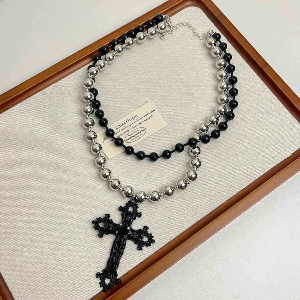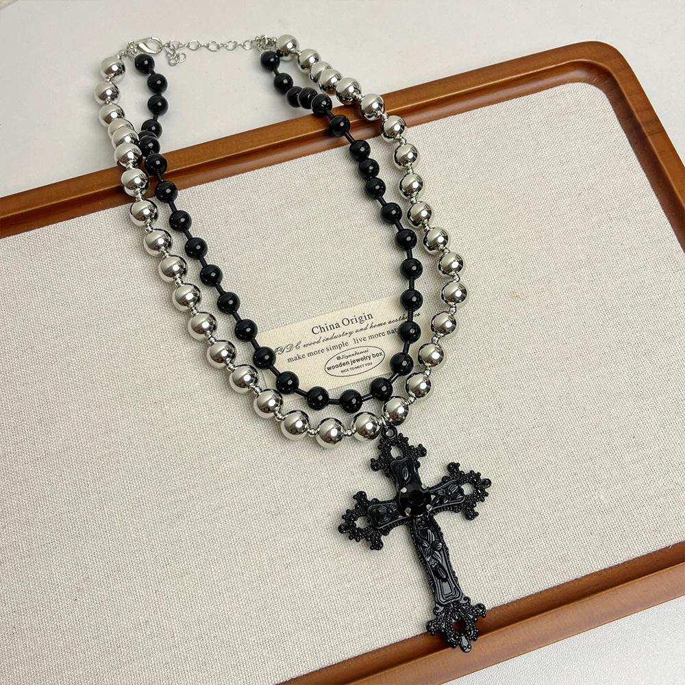 Collar punk de doble capa con cuentas de cruz a juego en colores negro y plateado para mujer, cadena de clavícula dulce, genial y sexy, collar de personalidad nicho