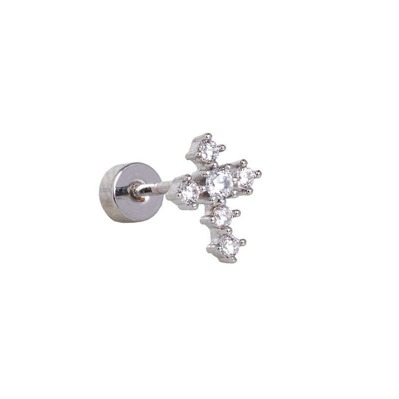Pendientes de acero de titanio 316L con micro circonita cúbica chapada en oro y cobre, con perforación transfronteriza, para oreja.
