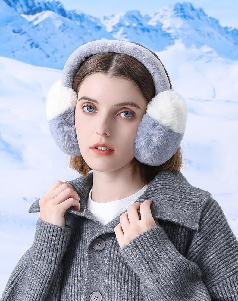 Orejeras de Invierno para Mujer, Lindas Orejeras Plegables de Felpa con Bloques de Color, Protección para los Oídos para Ciclismo al Aire Libre, Gorros para los Oídos Antihielo al Mayoreo
