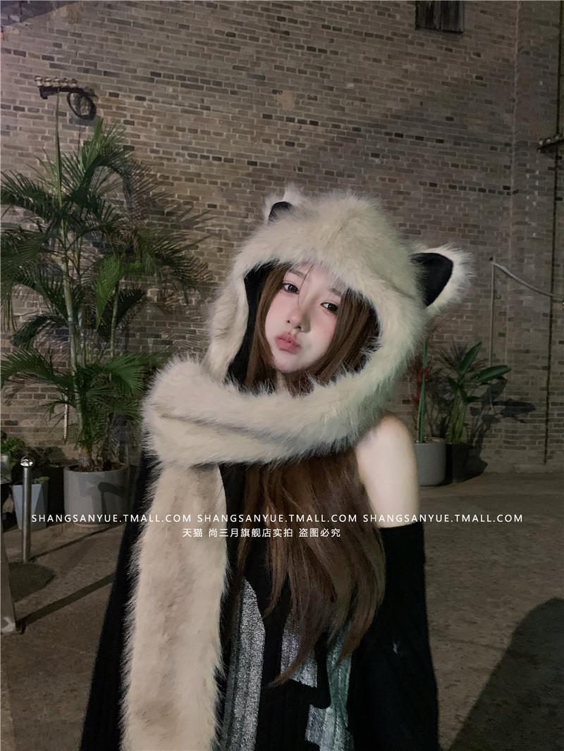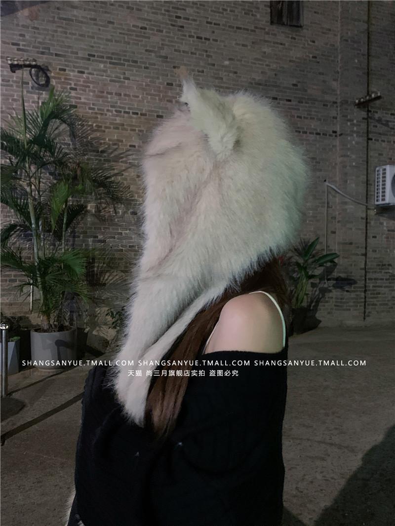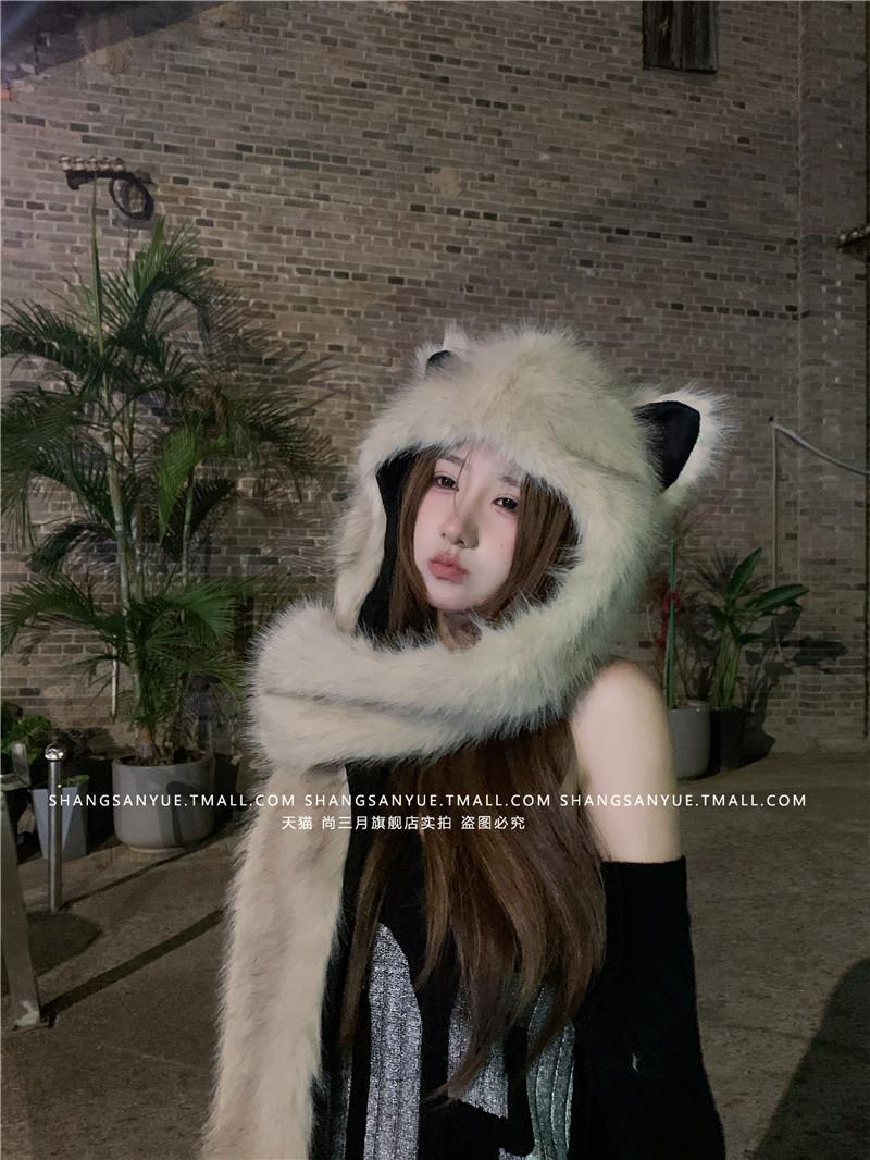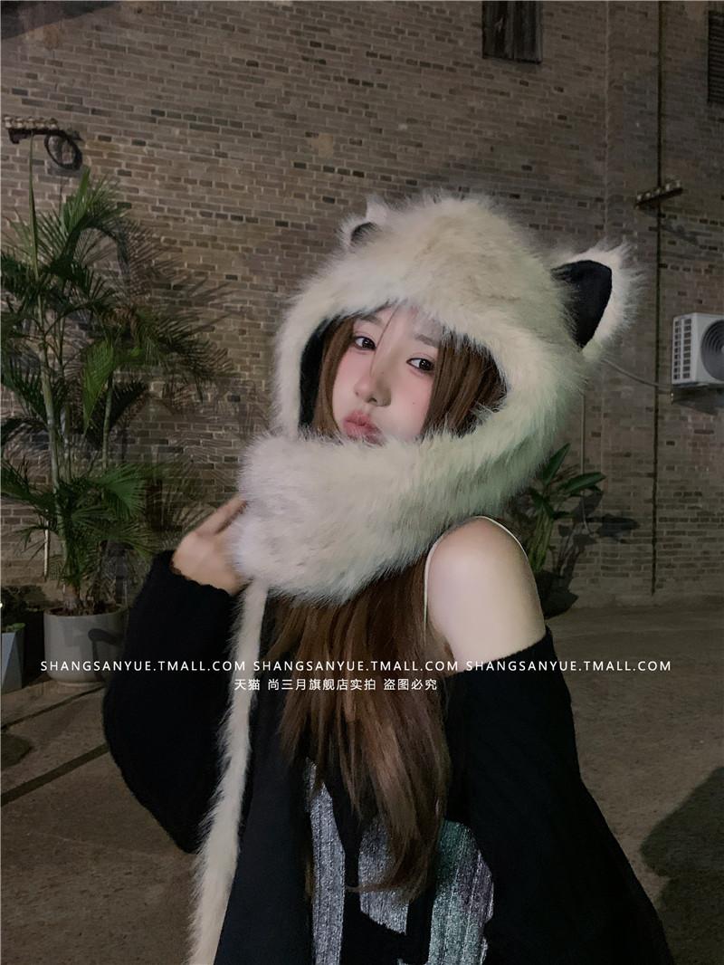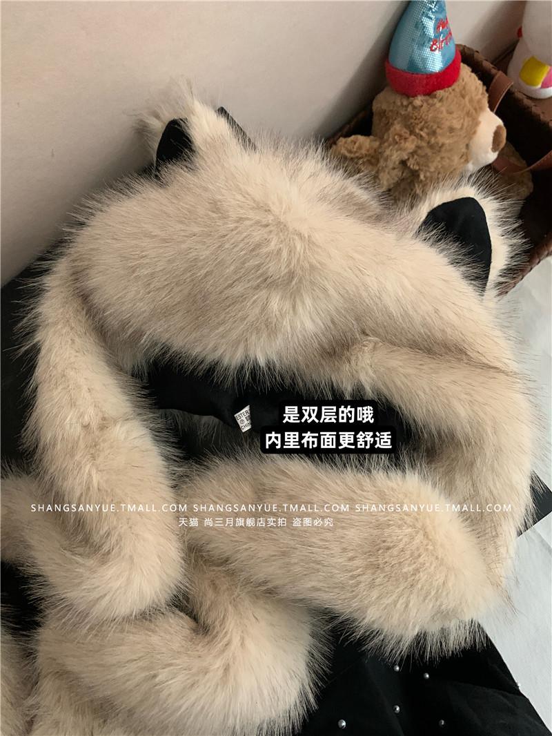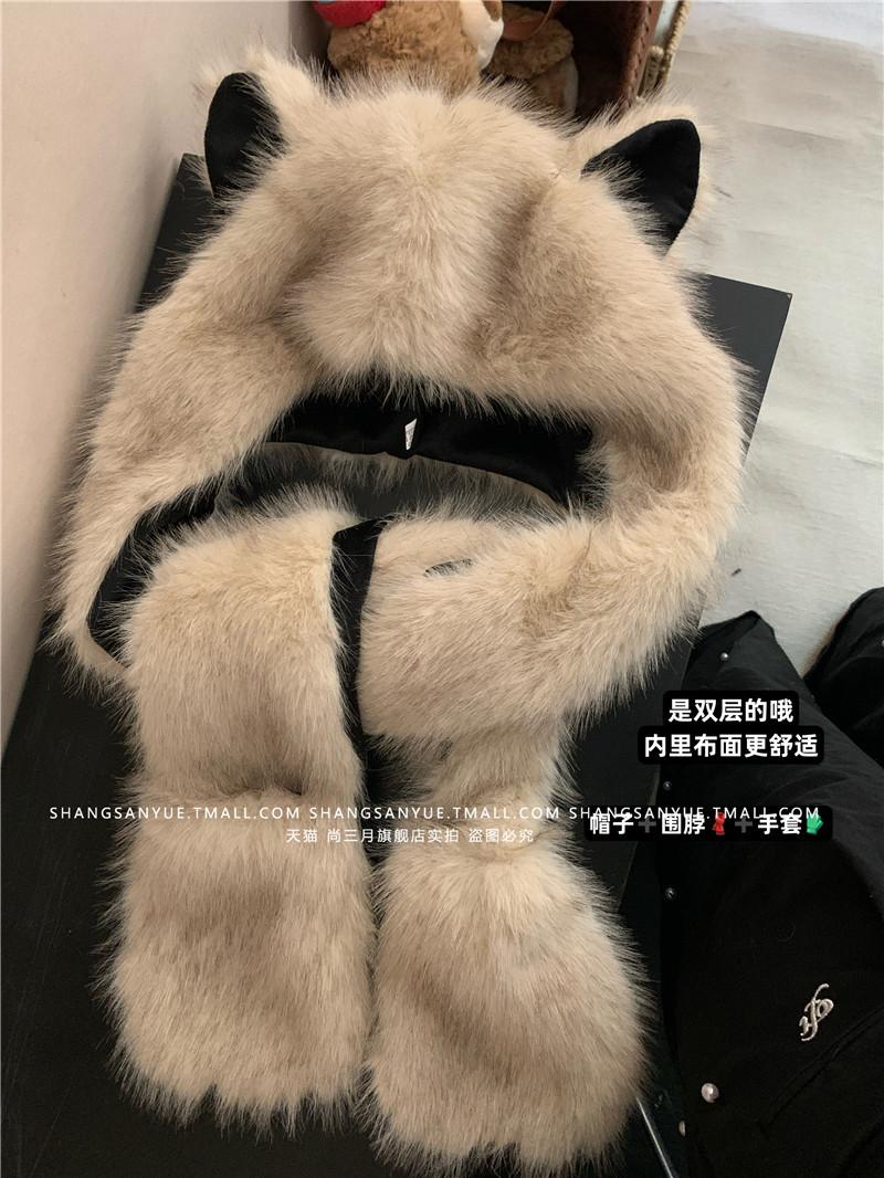 Gorro de felpa con orejas de zorro, bufanda todo en uno, cálido y protector auditivo para invierno, gorro Lei Feng, bufanda de esquí gruesa del noreste.