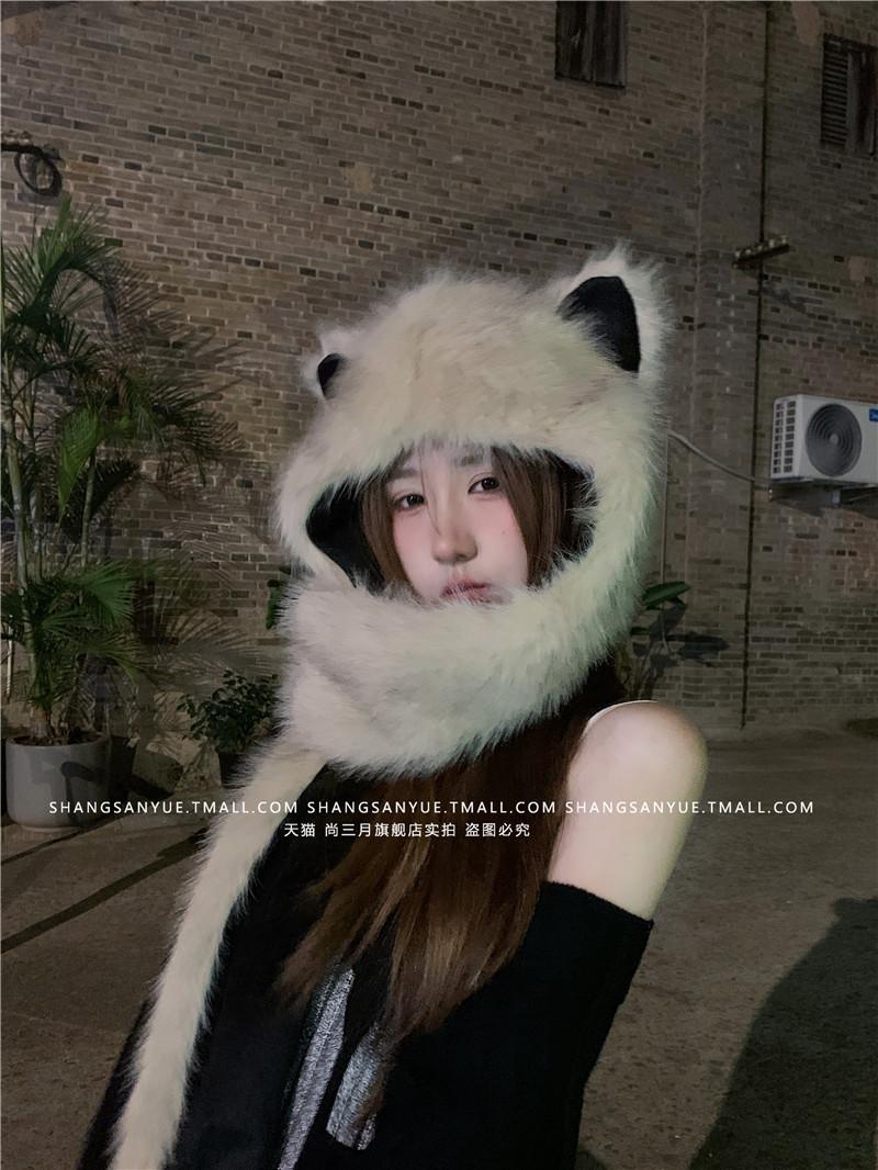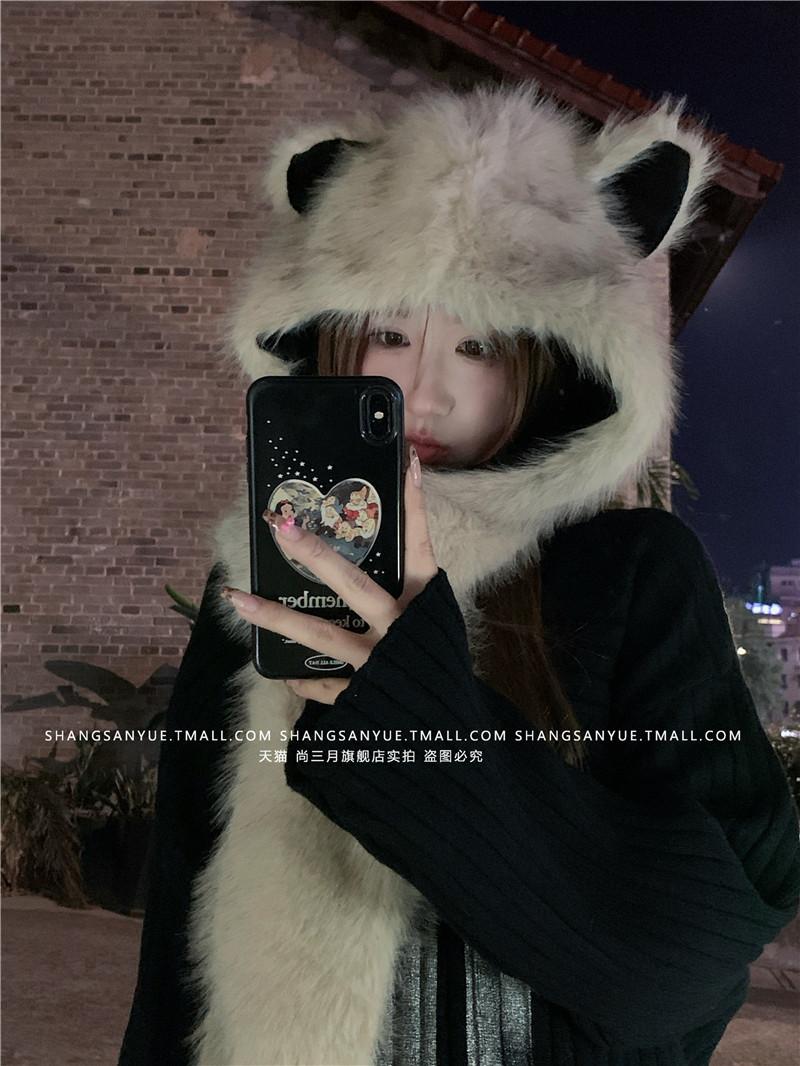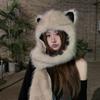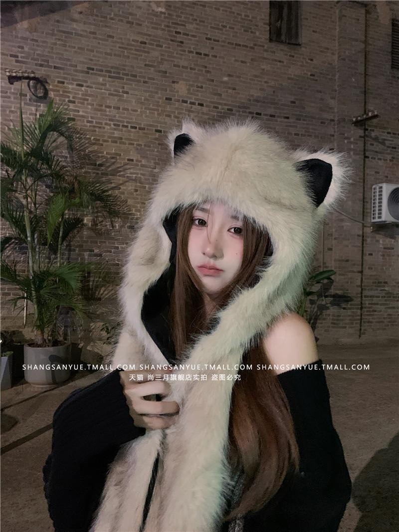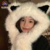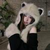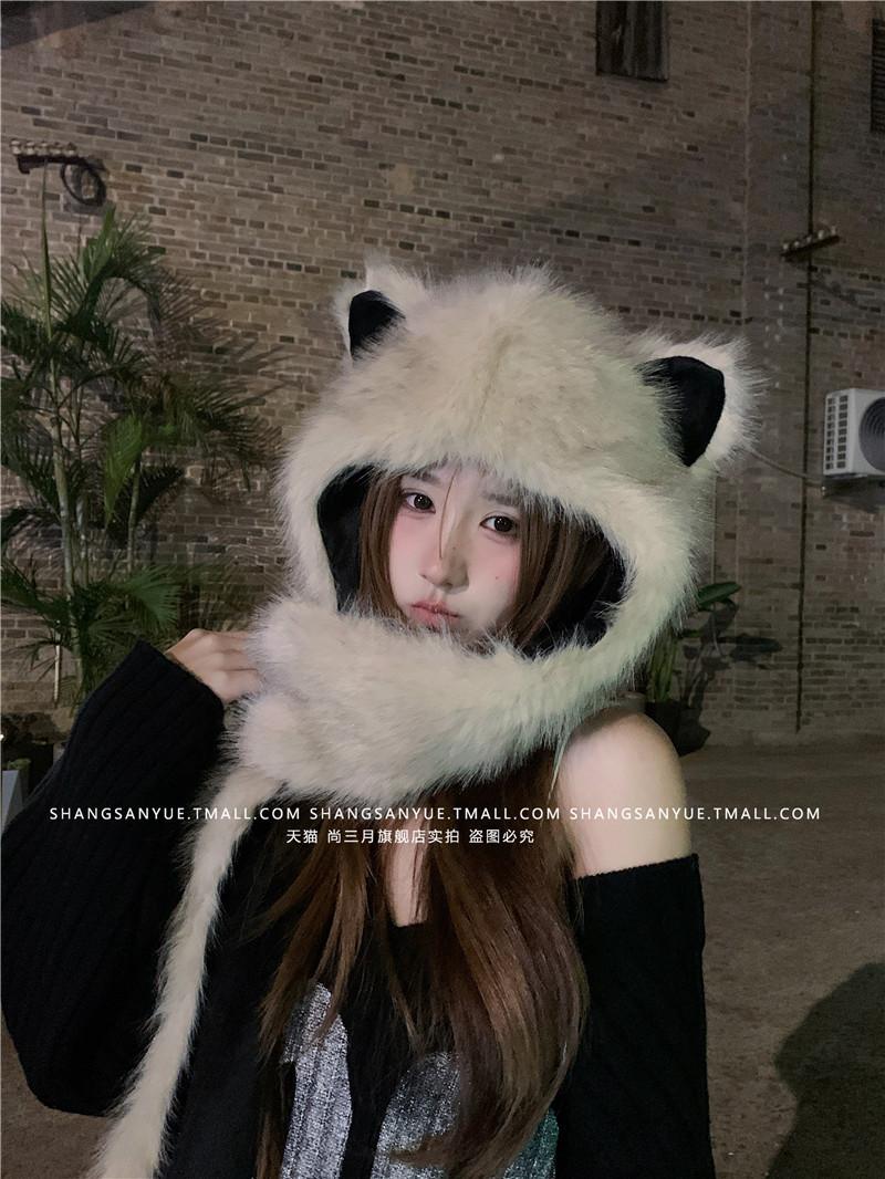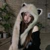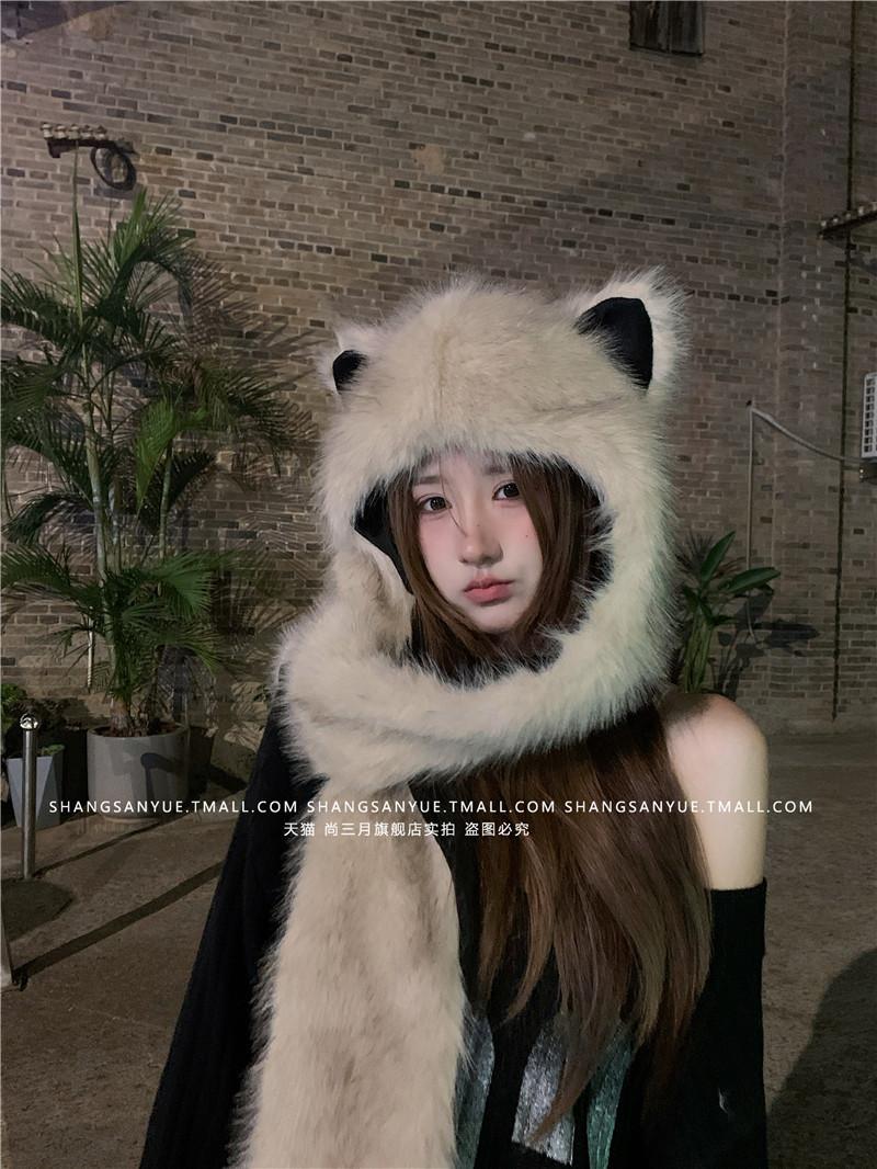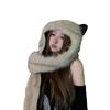 Gorro de felpa con orejas de zorro, bufanda todo en uno, cálido y protector auditivo para invierno, gorro Lei Feng, bufanda de esquí gruesa del noreste.