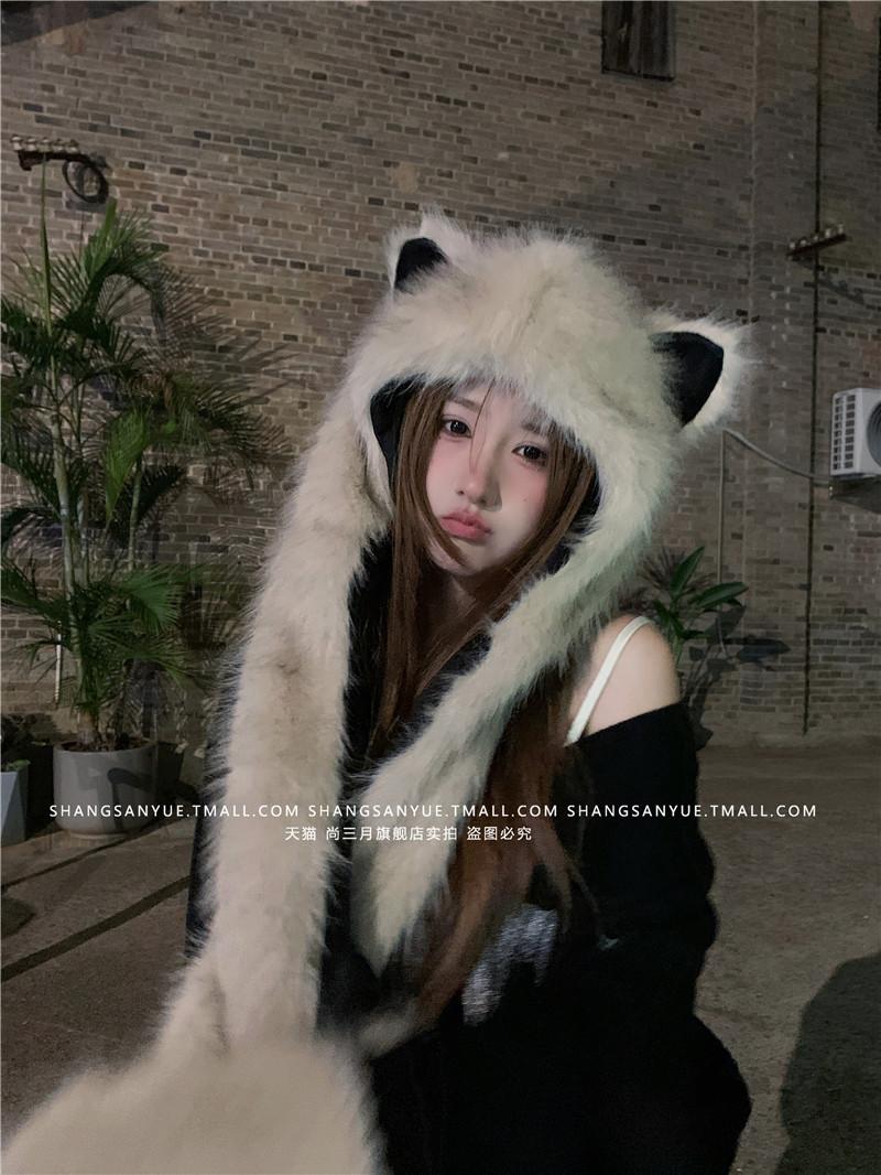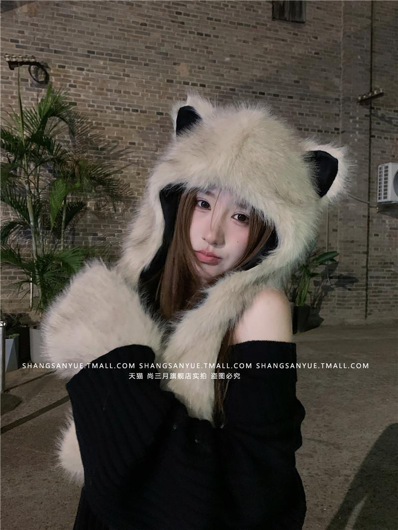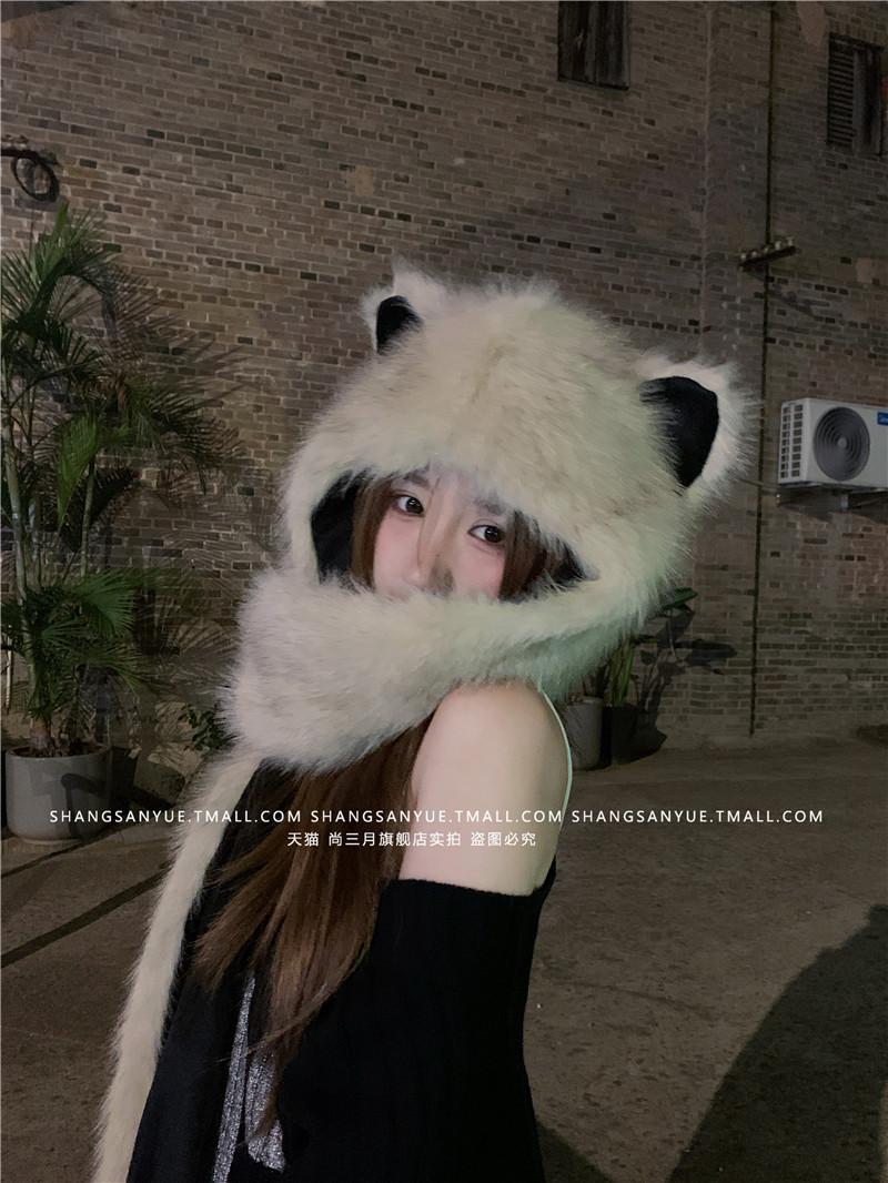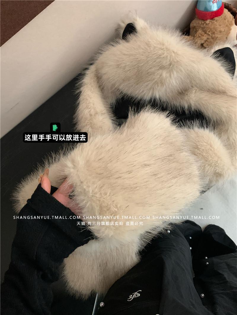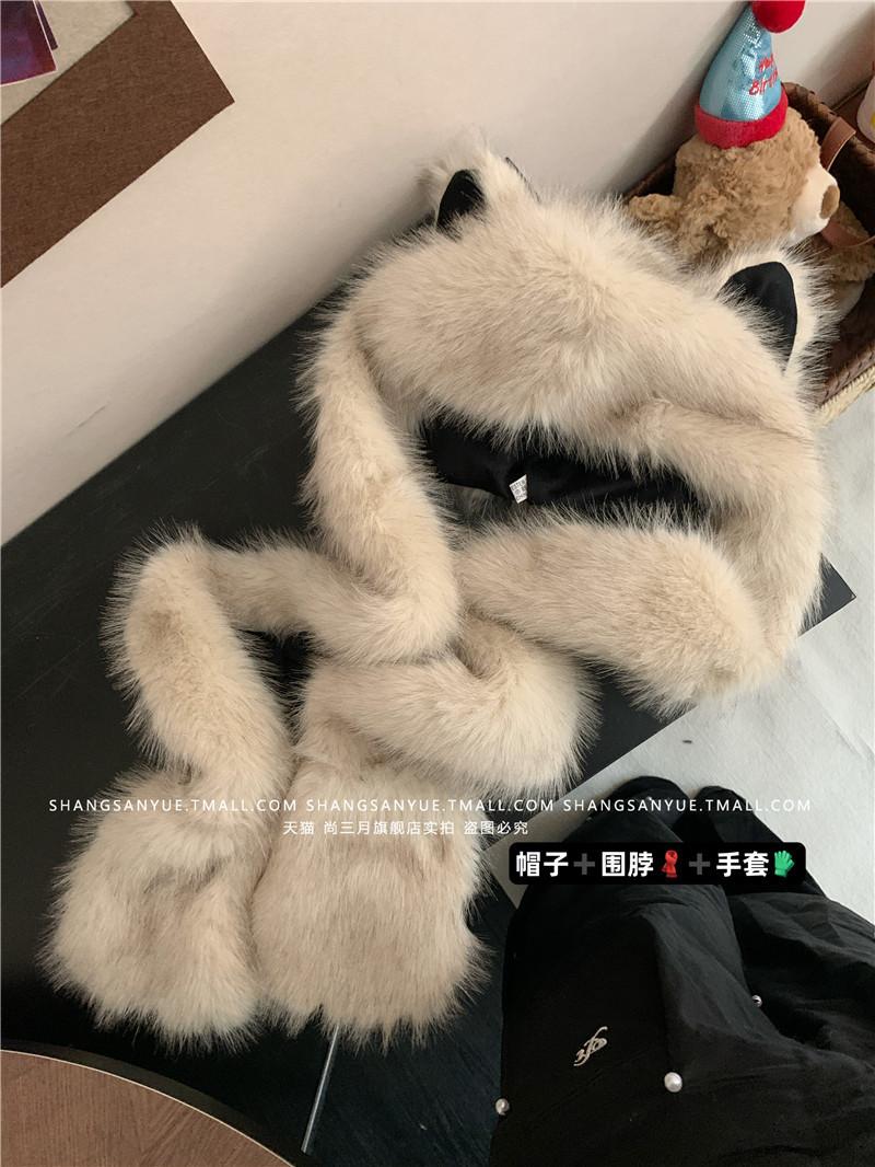 Gorro de felpa con orejas de zorro, bufanda todo en uno, cálido y protector auditivo para invierno, gorro Lei Feng, bufanda de esquí gruesa del noreste.