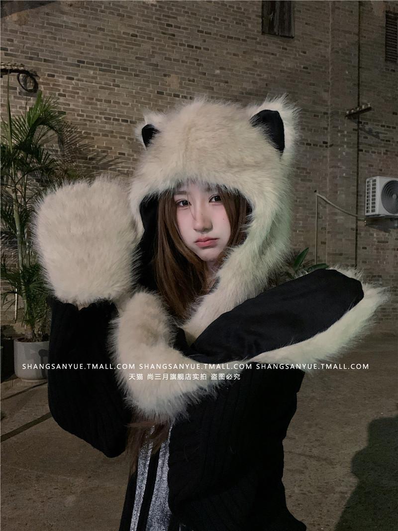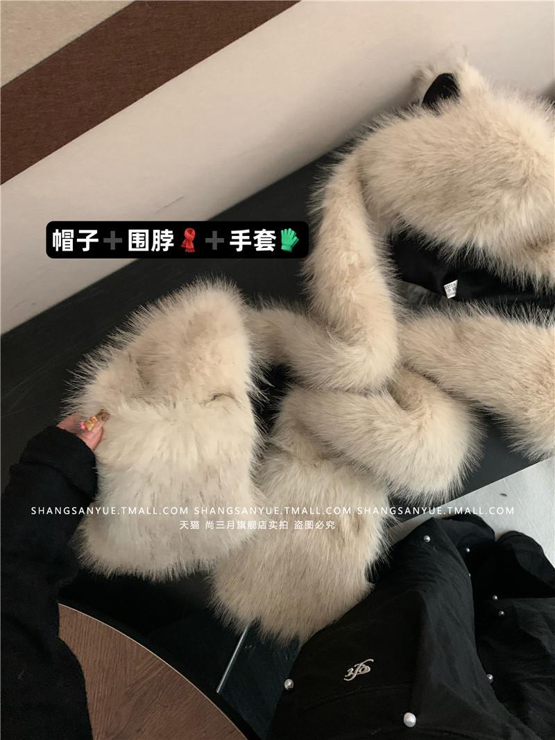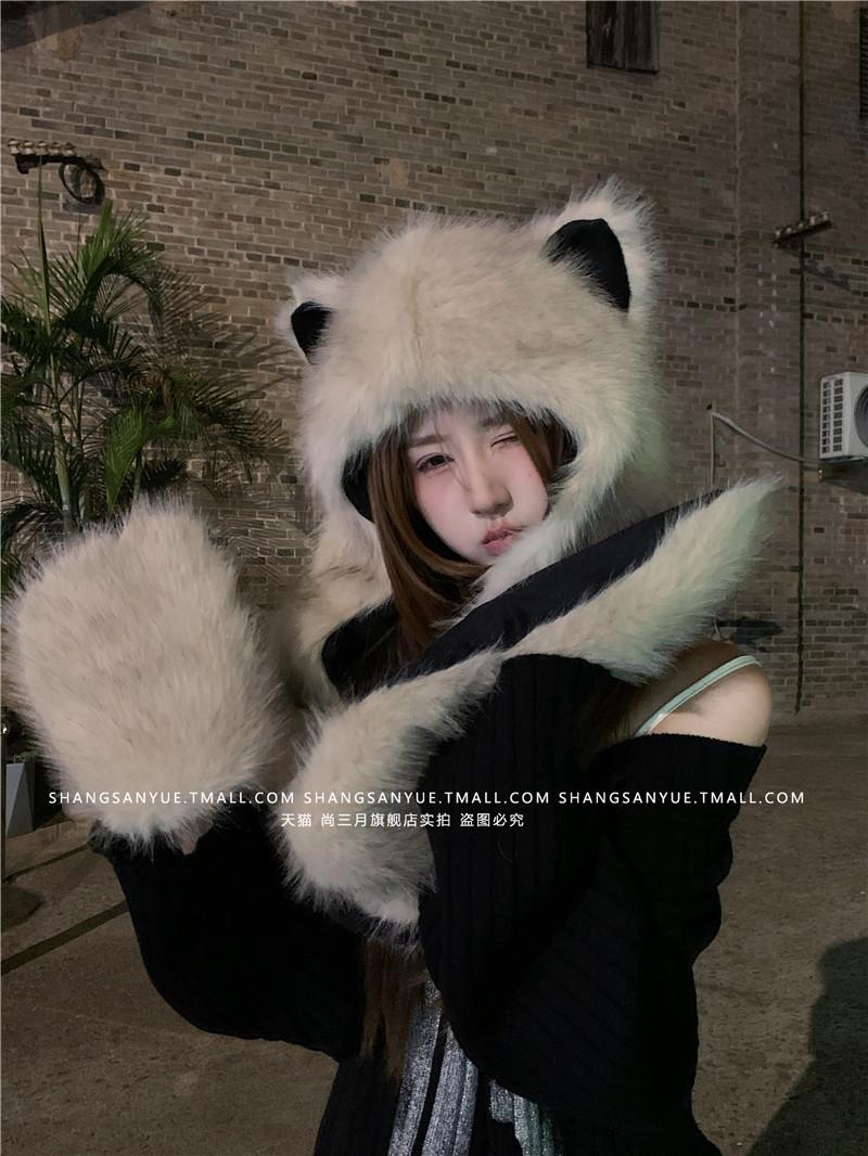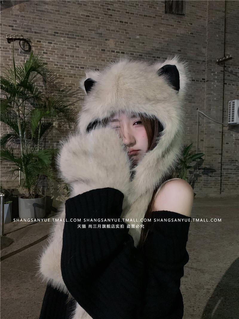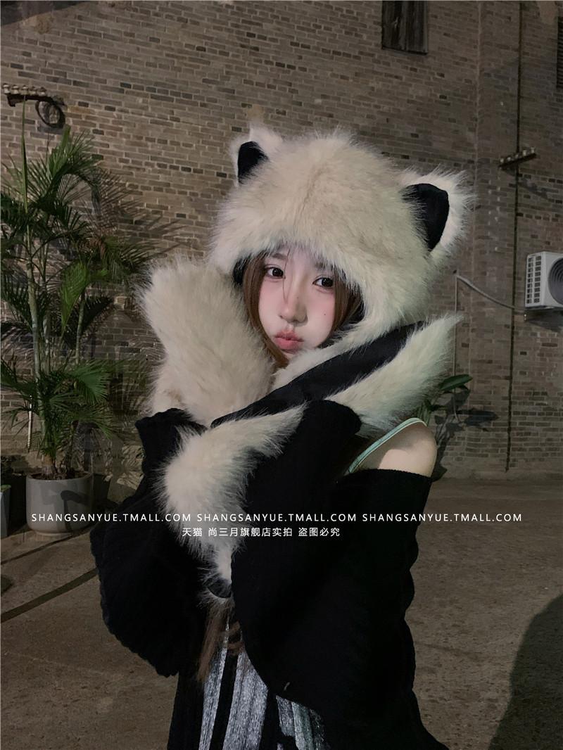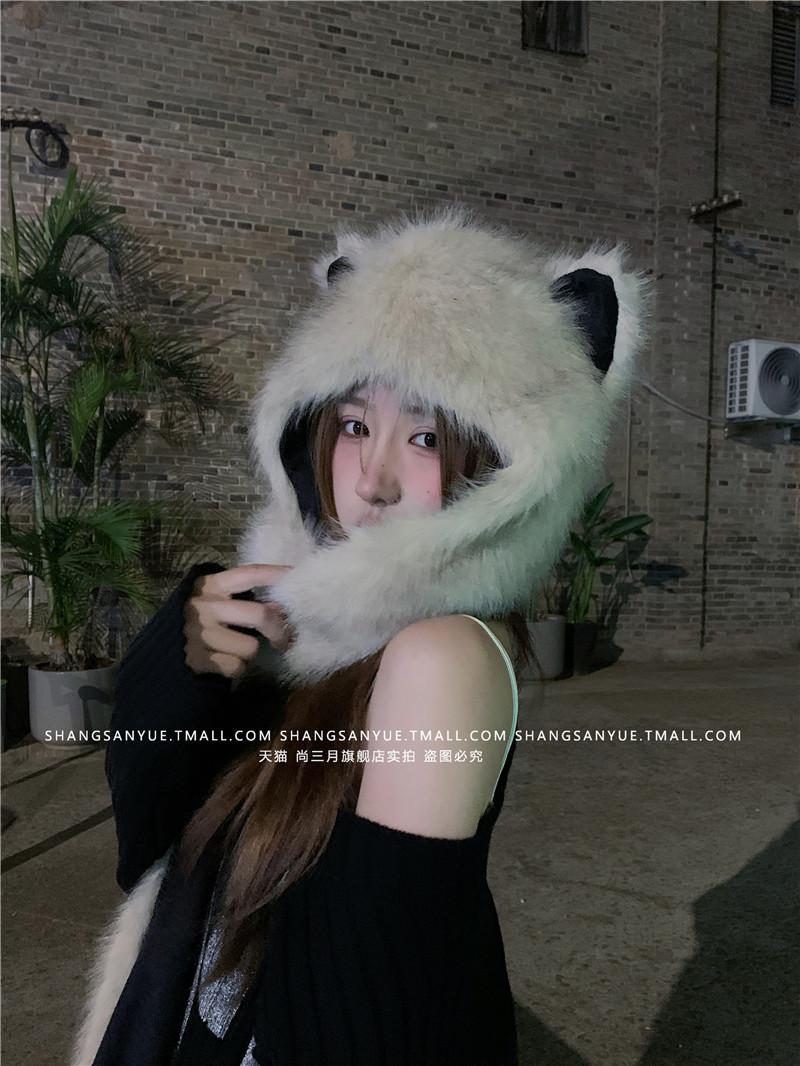 Gorro de felpa con orejas de zorro, bufanda todo en uno, cálido y protector auditivo para invierno, gorro Lei Feng, bufanda de esquí gruesa del noreste.