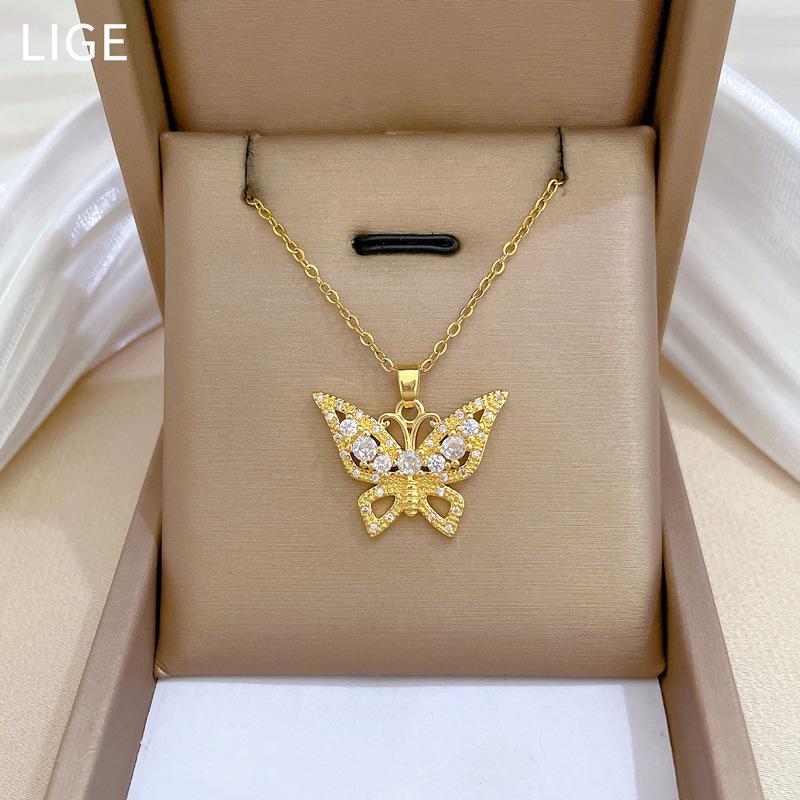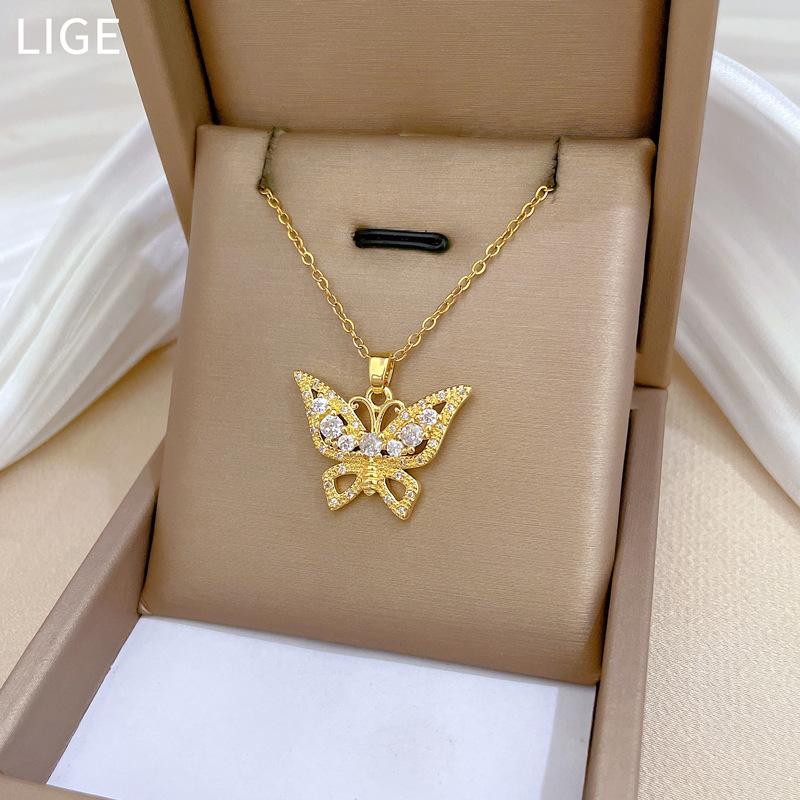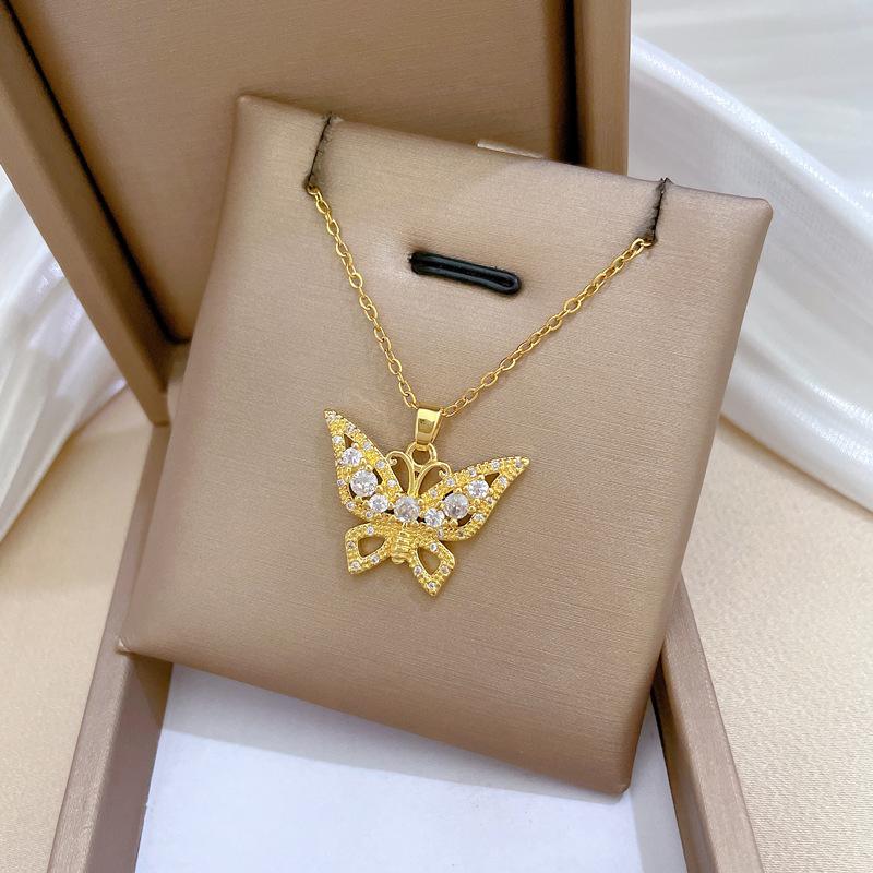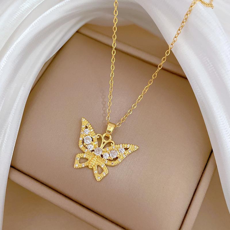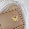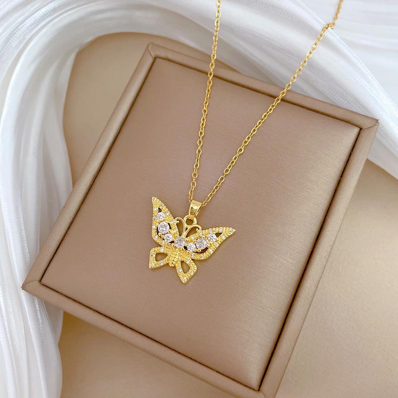 [Acero de titanio] Collar elegante y lujoso con diseño de mariposa hueca y diamantes, cadena de clavícula para mujer, cadena de acero de titanio.
