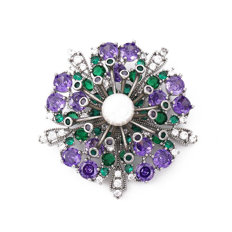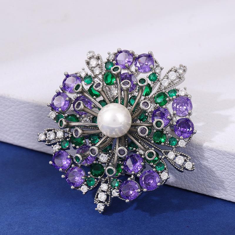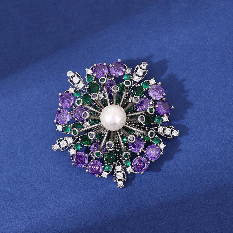 Nuevo Broche de Flor Elegante Retro de Alta Gama Cobre Incrustado Zircón Estilo Coreano Pin Moda Combinable Accesorios de Traje