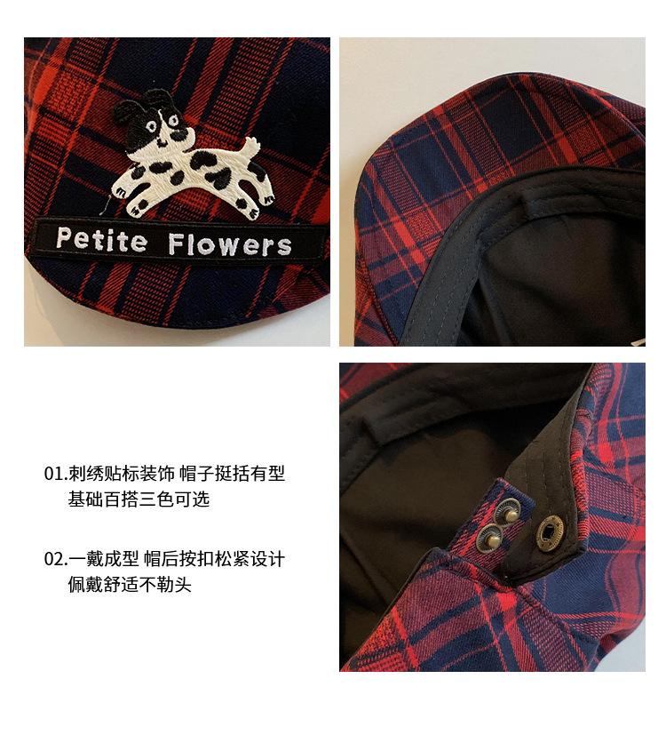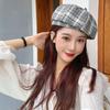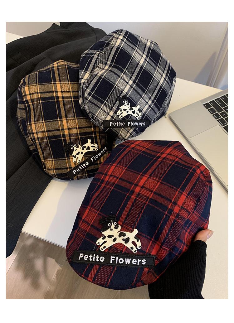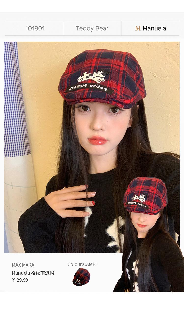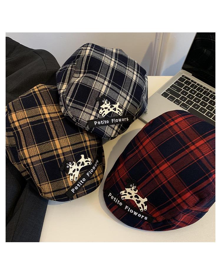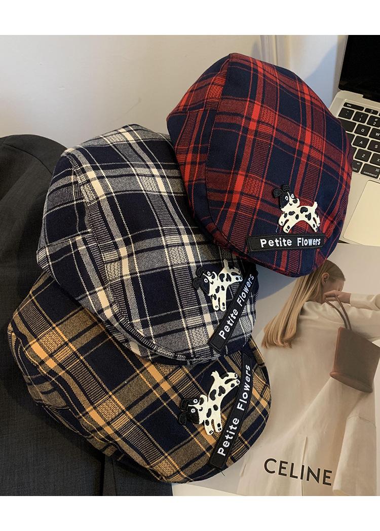 Gorra de cachorro roja a cuadros estilo coreano para mujer primavera y otoño combinable nicho boina circunferencia de cabeza grande muestra rostro pequeño sombrero