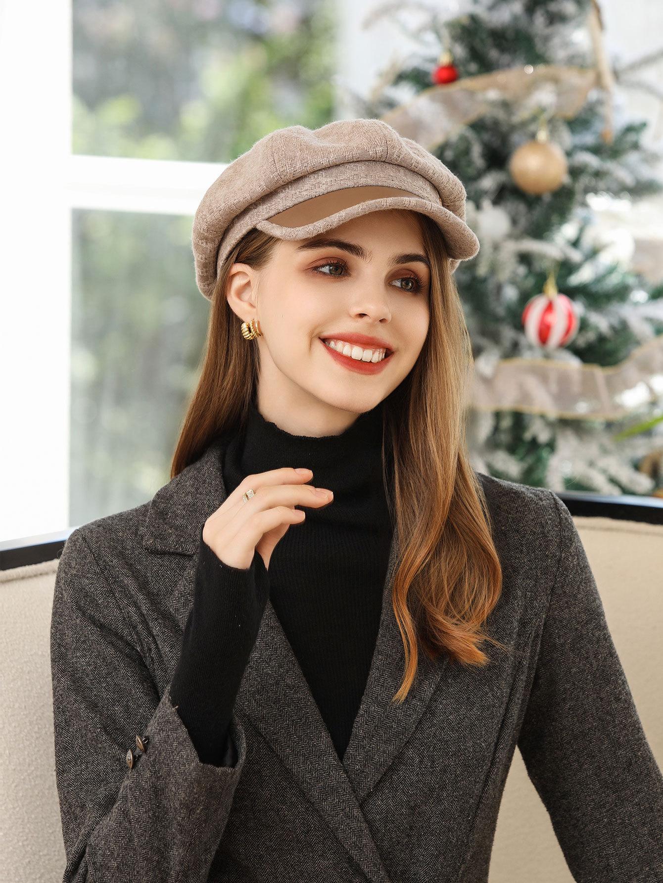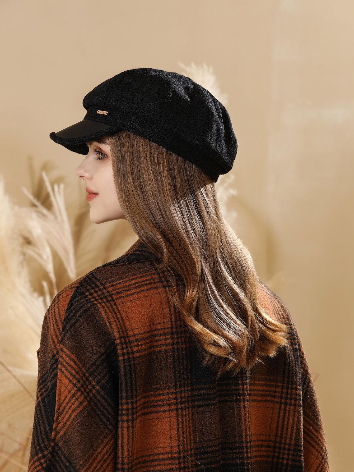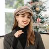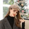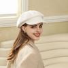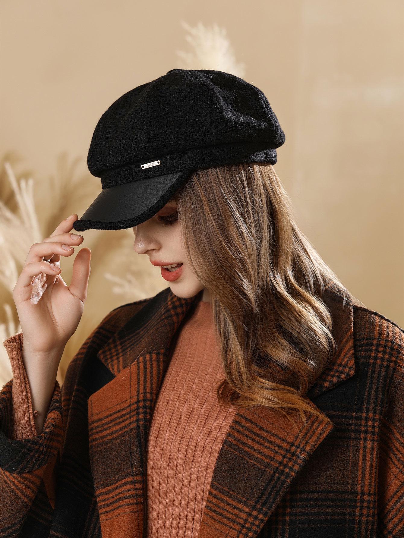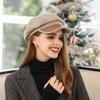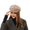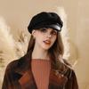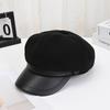 Boina de cuero sintético estilo coreano retro, sombrero octogonal de cabeza grande británico, sombrero de pintor pequeño con cara mostrada para otoño e invierno, sombrero octogonal