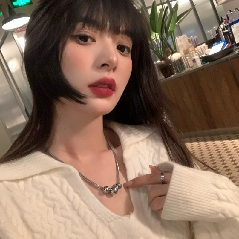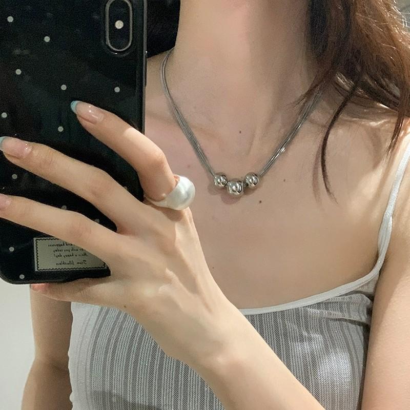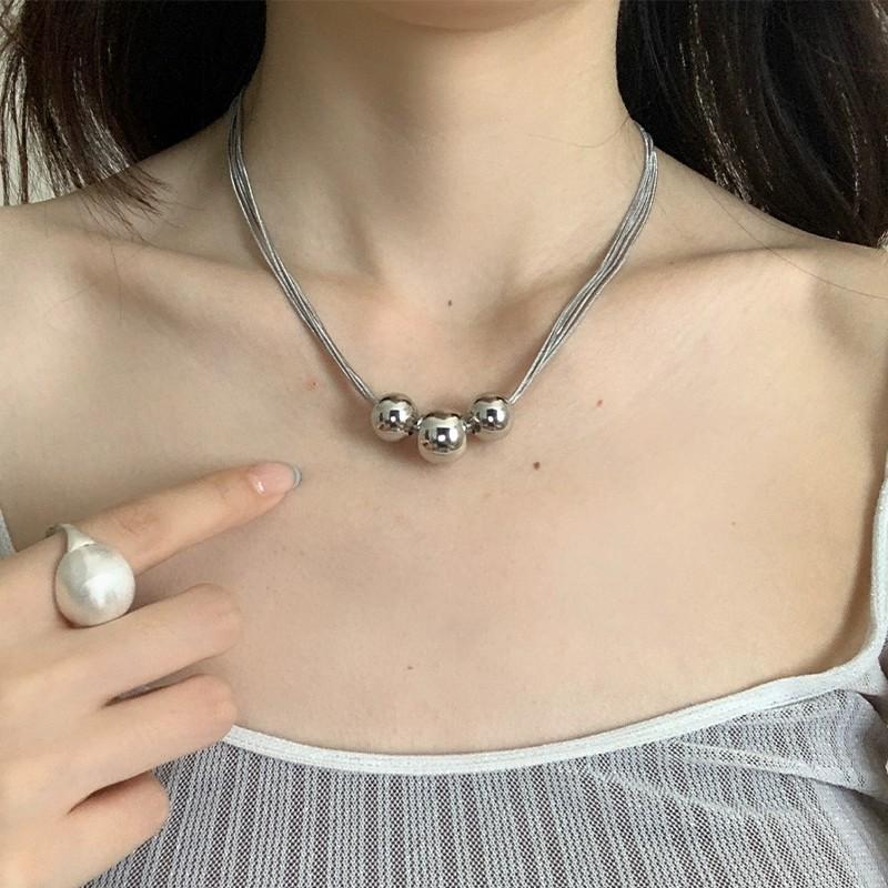 Collar de lujo ligero de alta gama con colgante de bola de metal para mujer, estilo frío, elegante y versátil, cadena de clavícula.