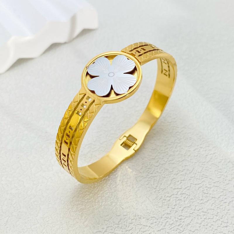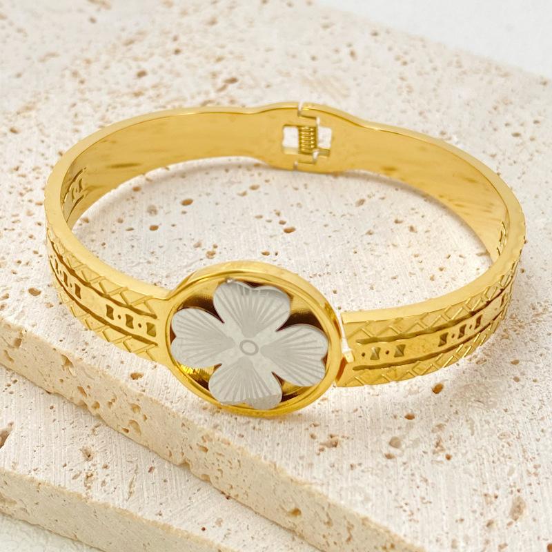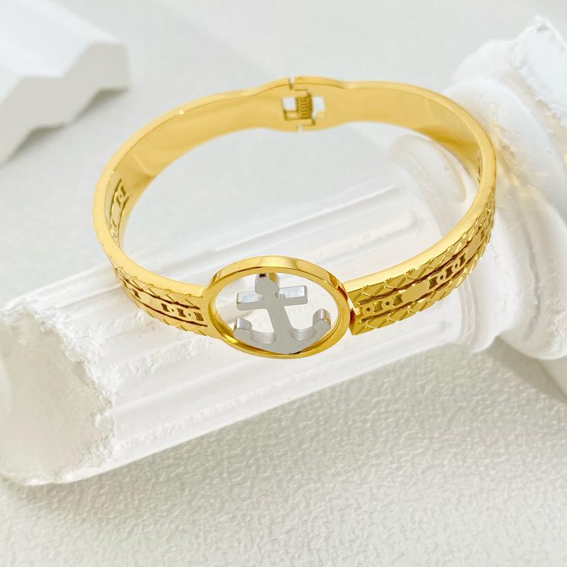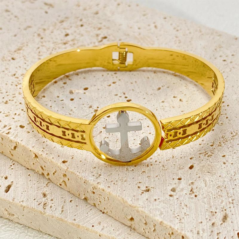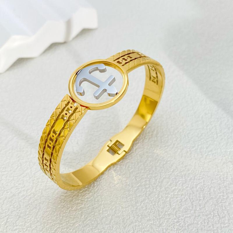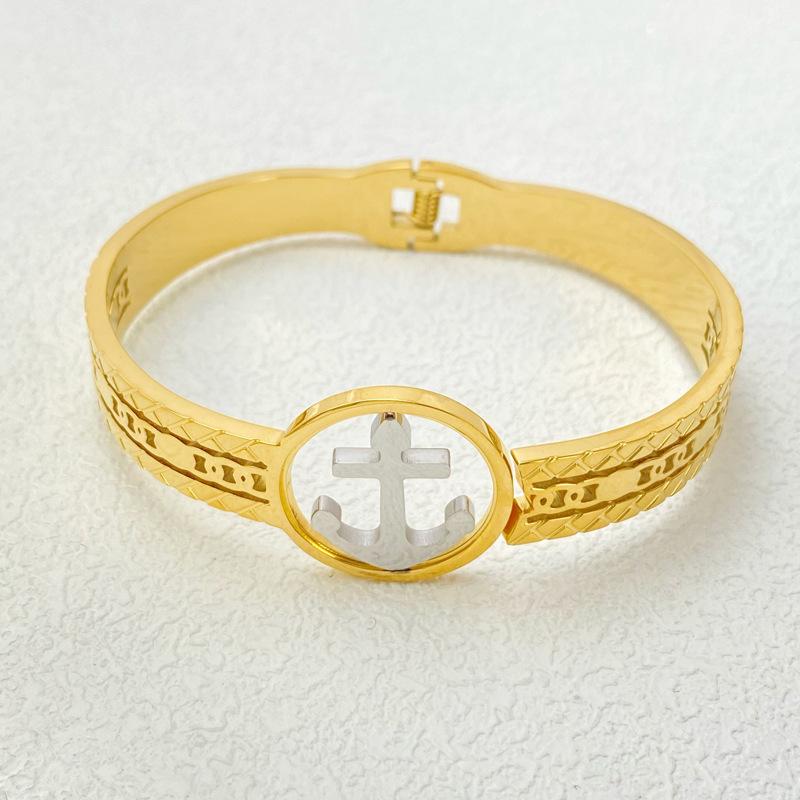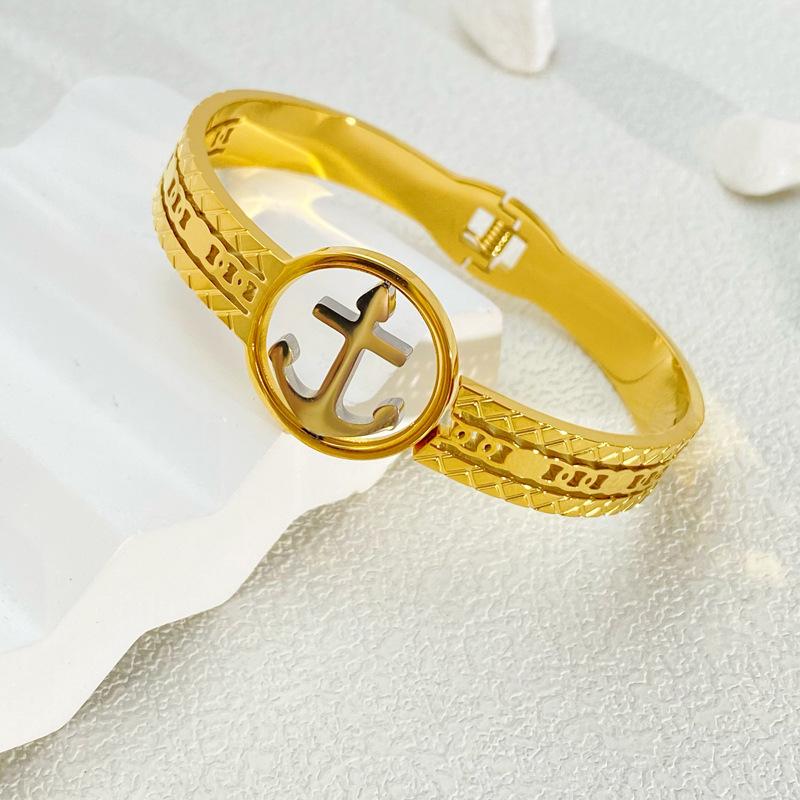 Venta Caliente Transfronteriza Ancla de Barco Trébol de Cuatro Hojas Metal con Textura Pulsera de Acero de Titanio Hueca Forma Geométrica Popular Pulsera de Acero Inoxidable