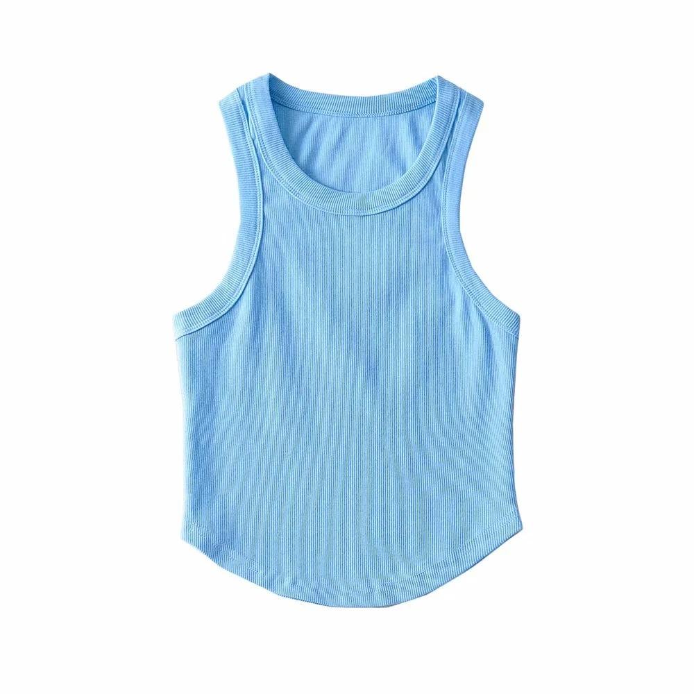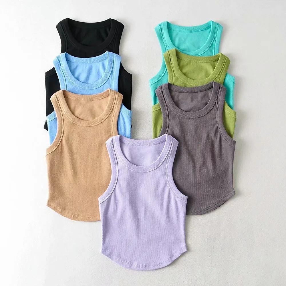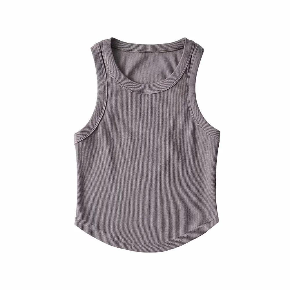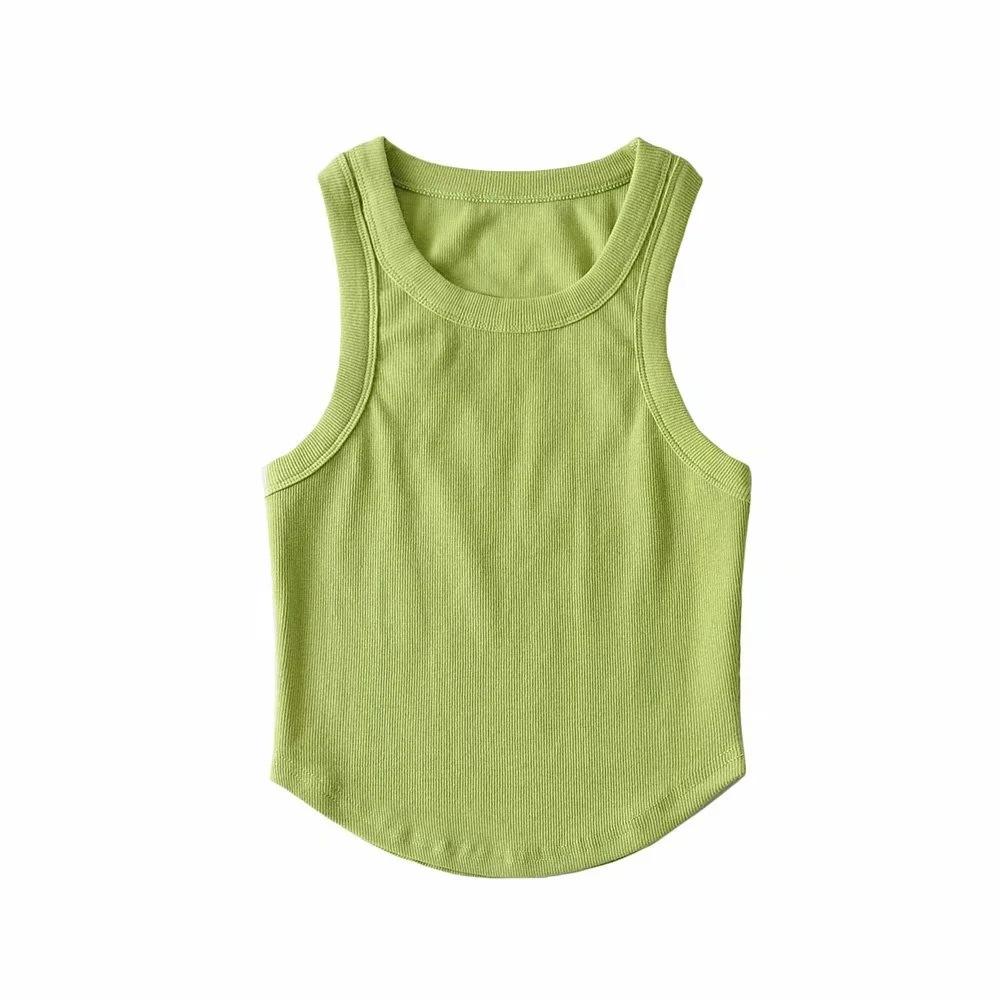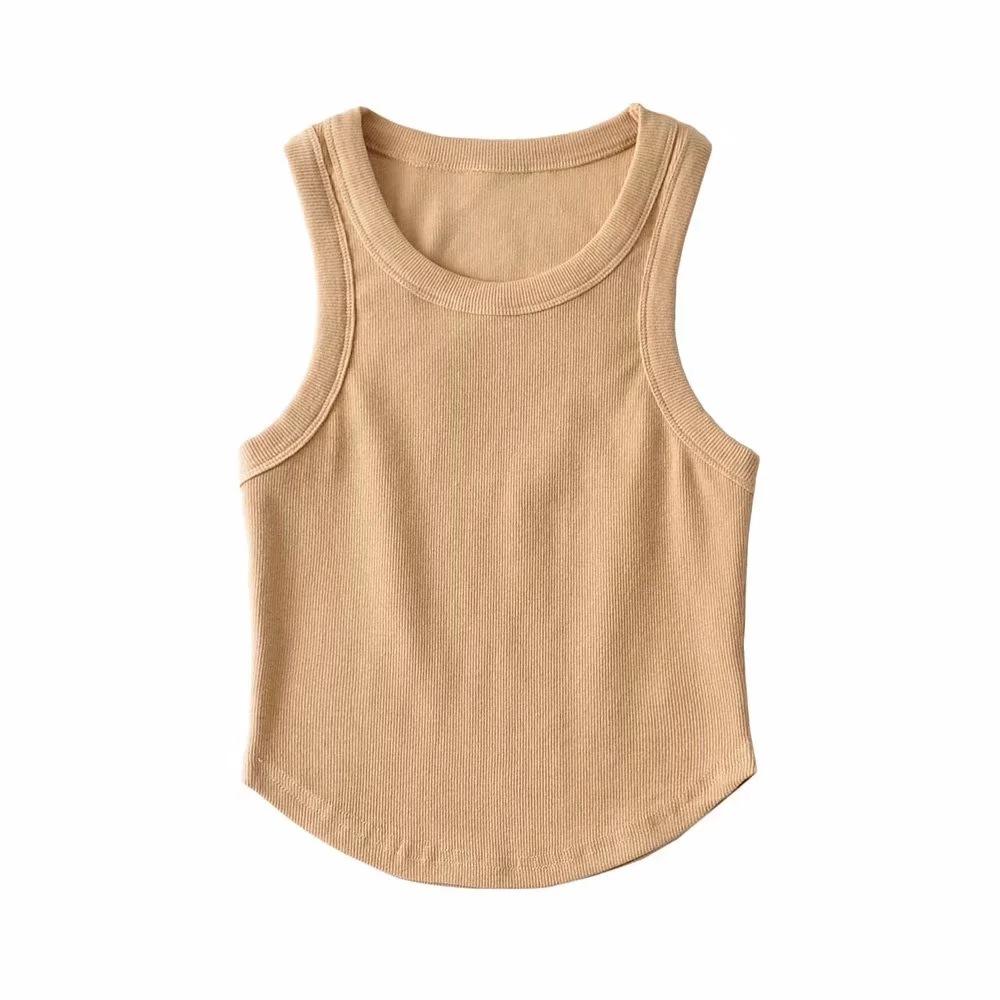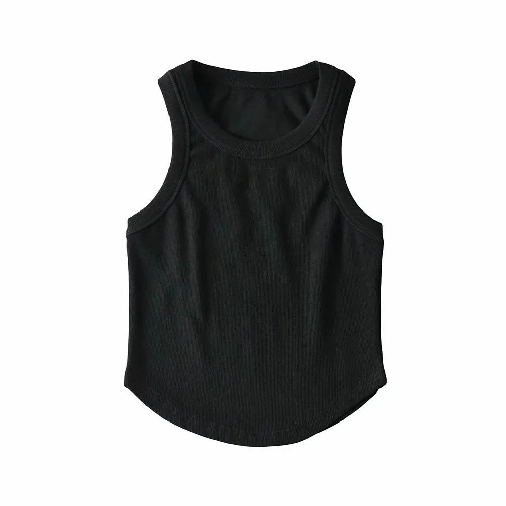 Camisola interior sin mangas de estilo europeo y americano nueva de verano para mujer, sexy, sexy, con dobladillo curvo, chaleco de ombligo corto para mujer