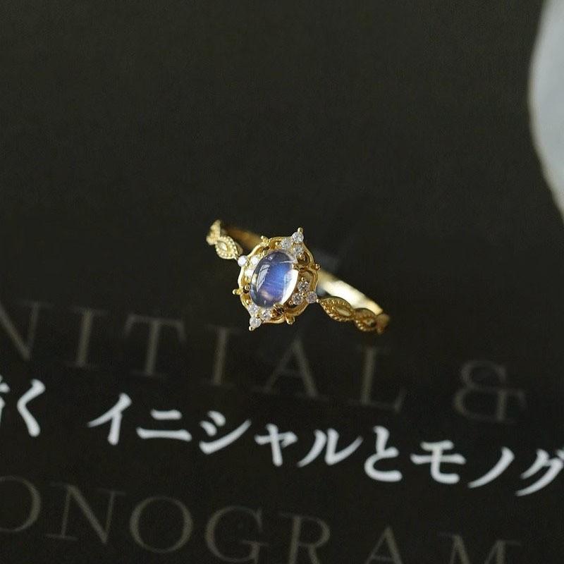 Yellow gold moonstone ring, White gold moonstone ring, Gold white chalcedony ring