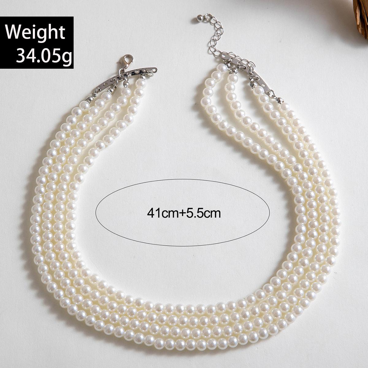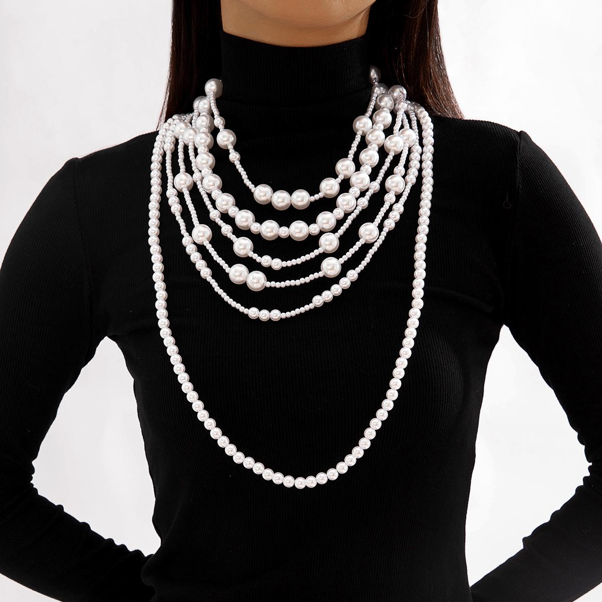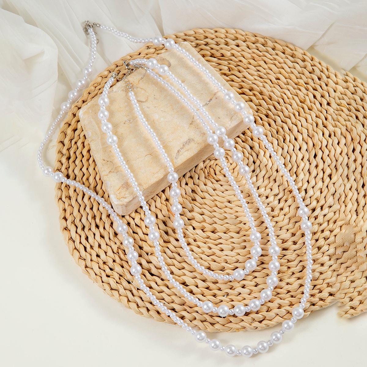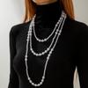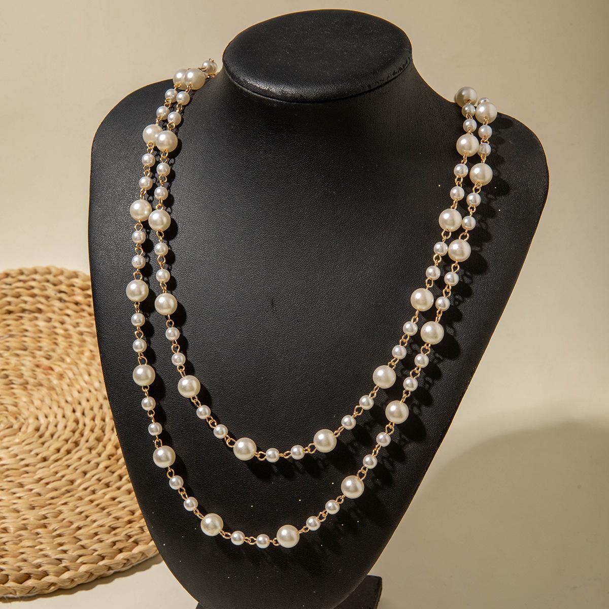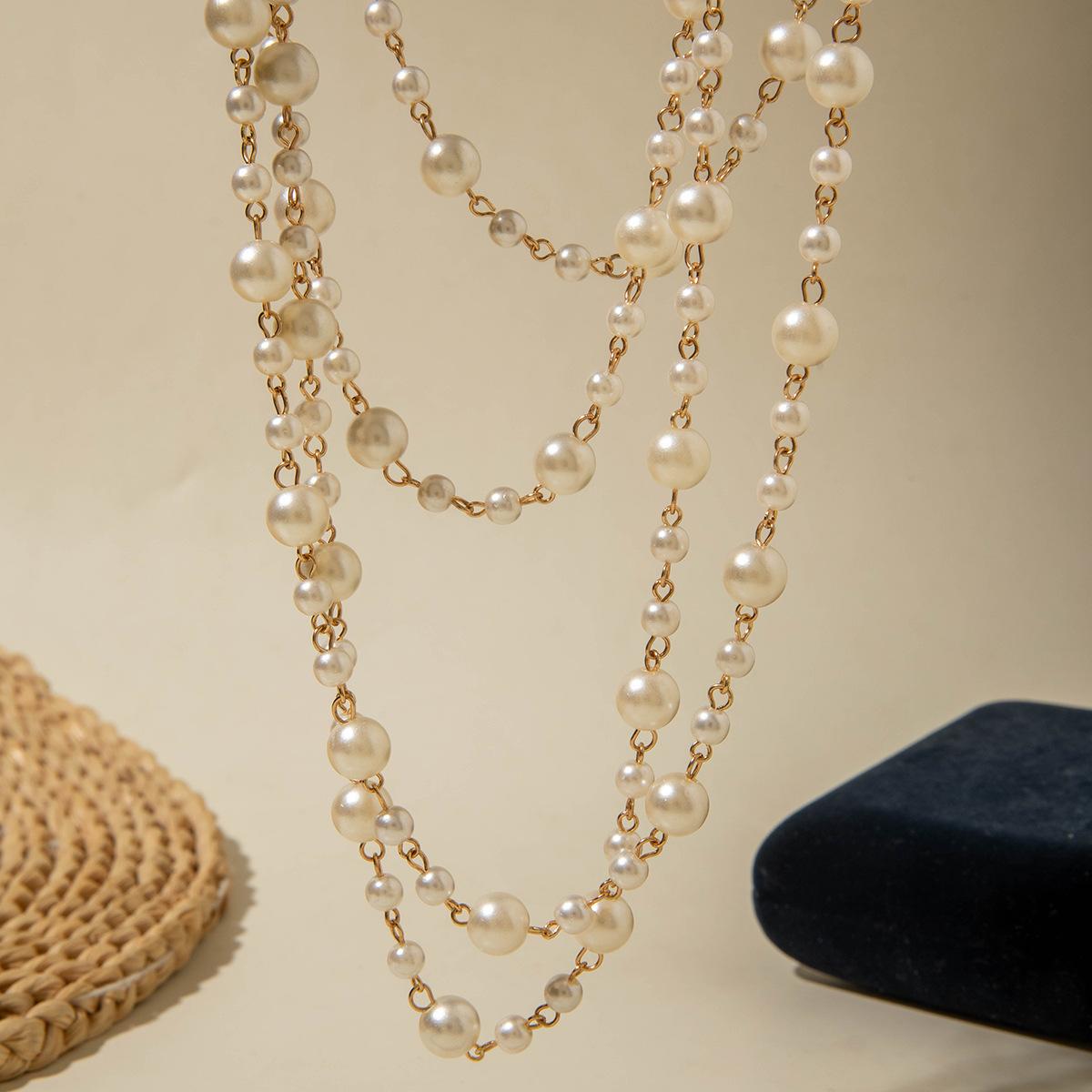 Collar Retro Geométrico con Cuentas de Moda Transfronteriza Europea y Americana Simple Elegante Perla de Imitación Diseño Multicapa Cadena Larga para Clavícula