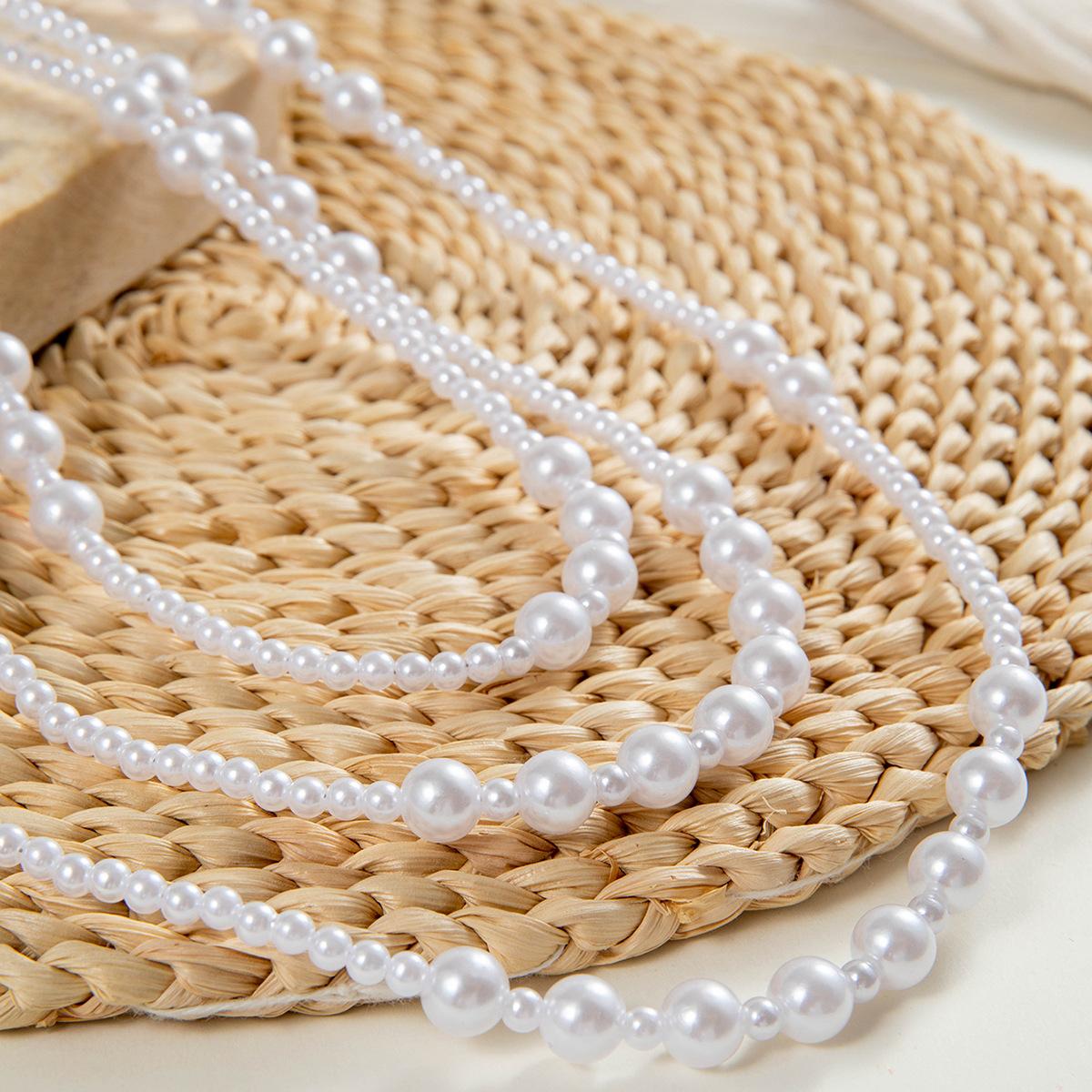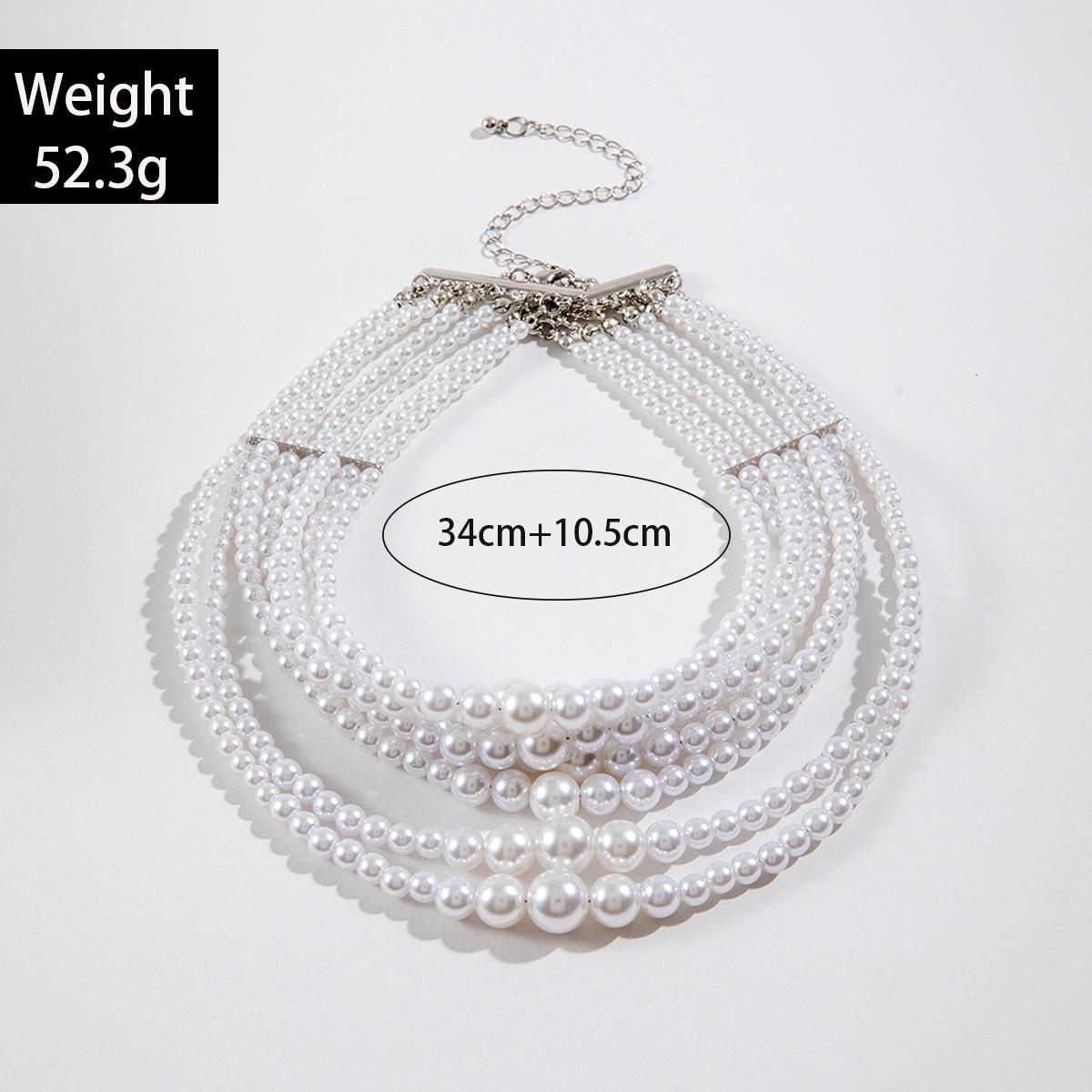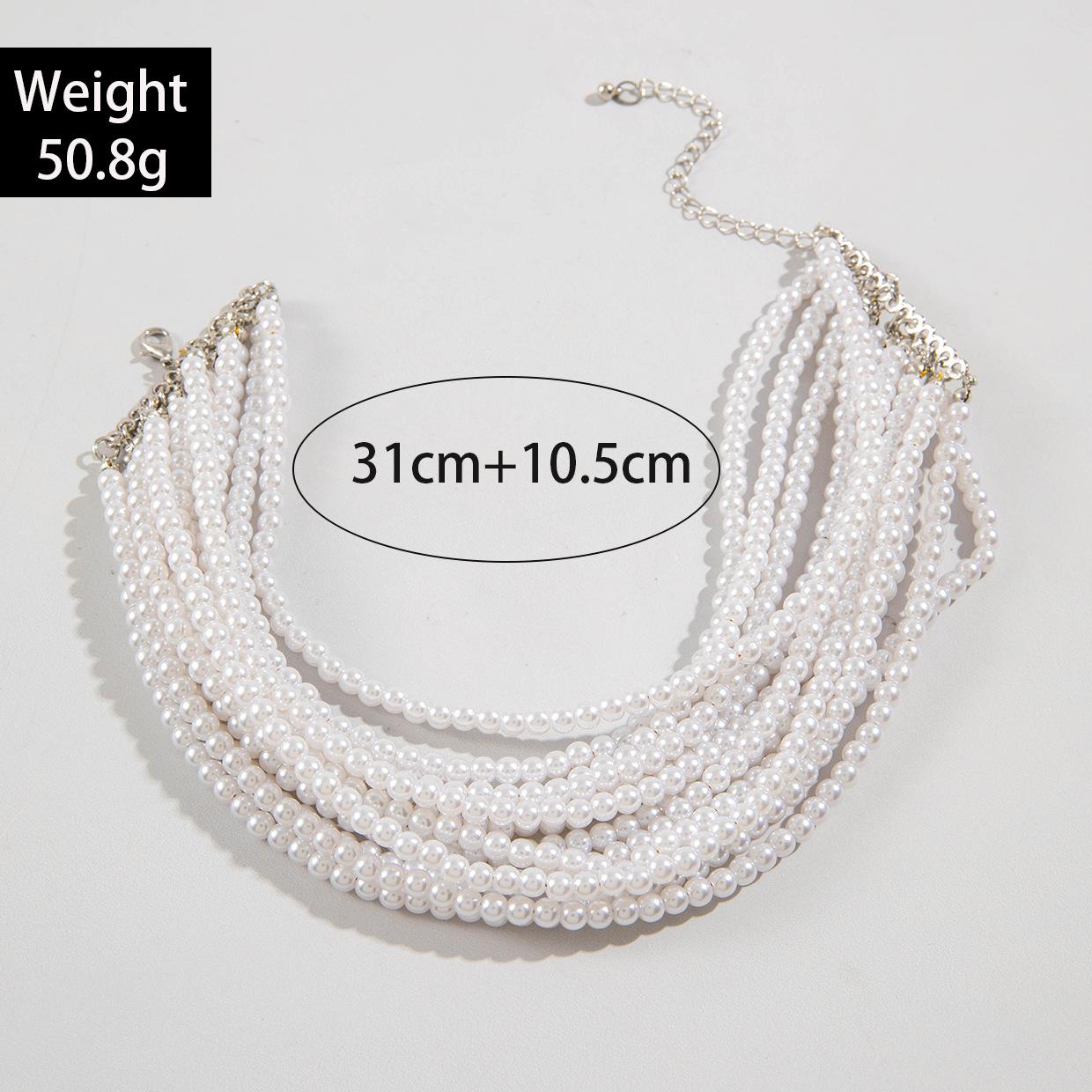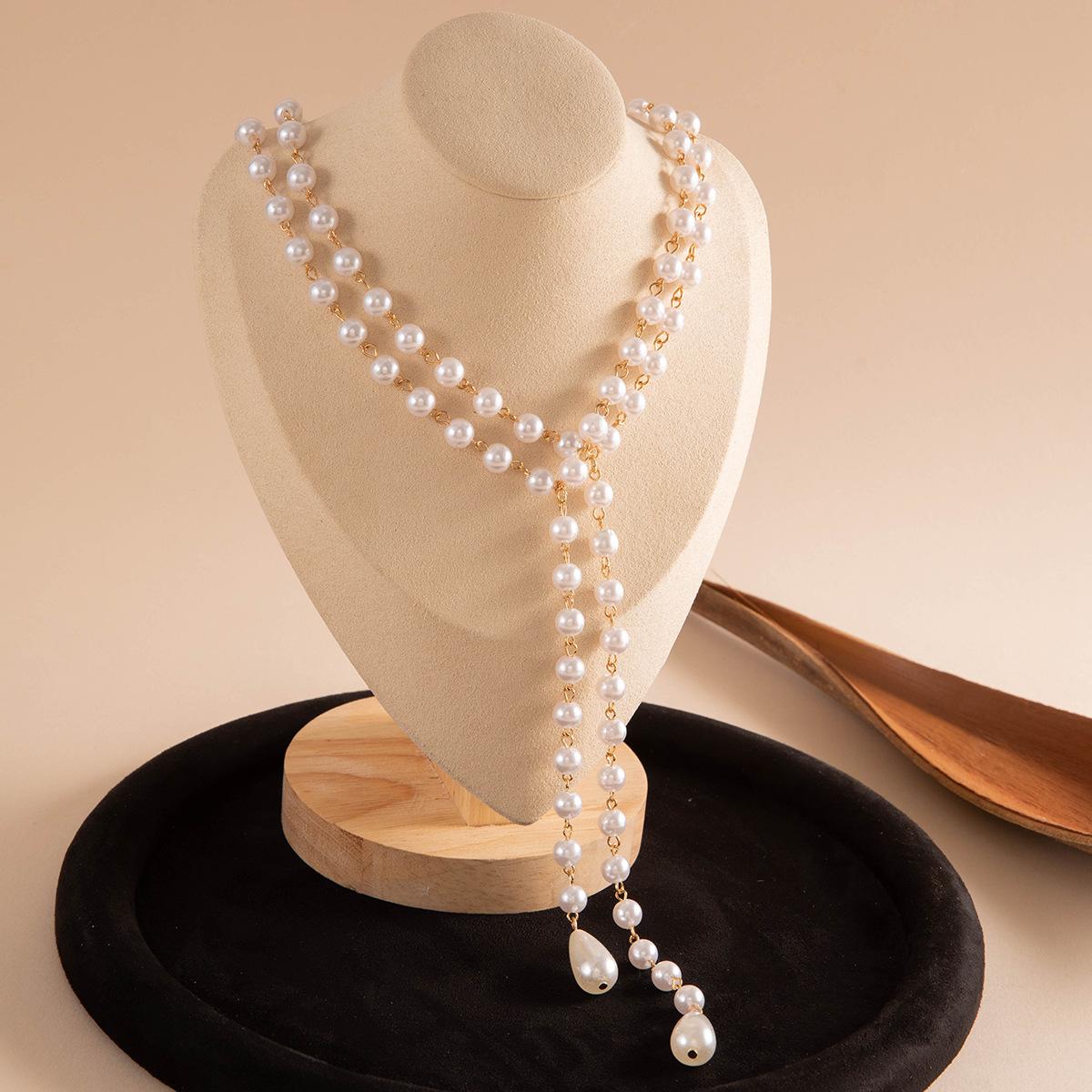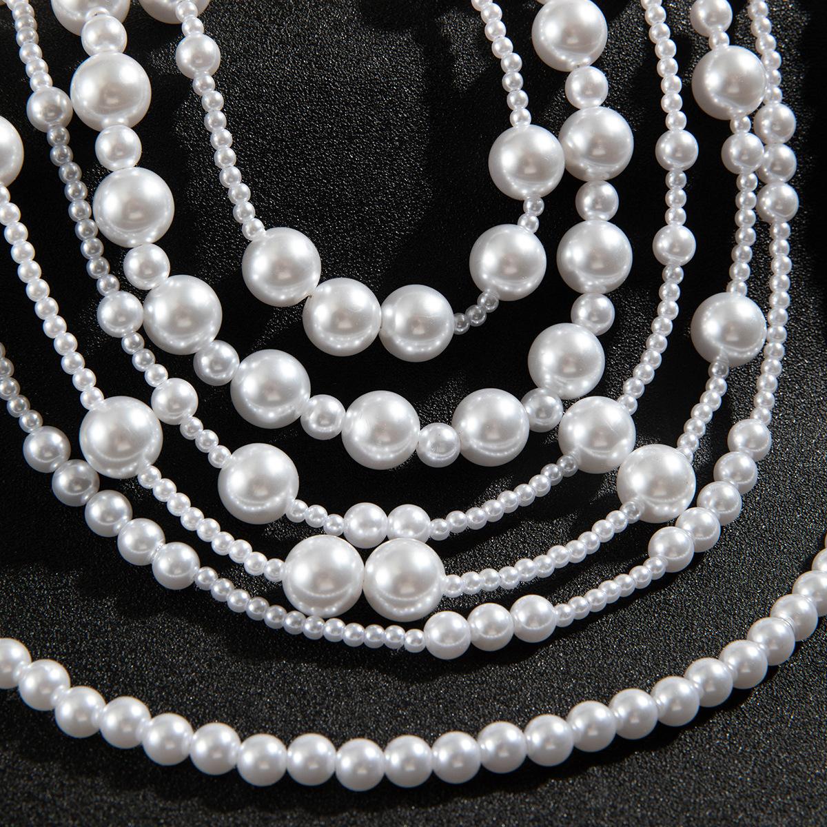 Collar Retro Geométrico con Cuentas de Moda Transfronteriza Europea y Americana Simple Elegante Perla de Imitación Diseño Multicapa Cadena Larga para Clavícula