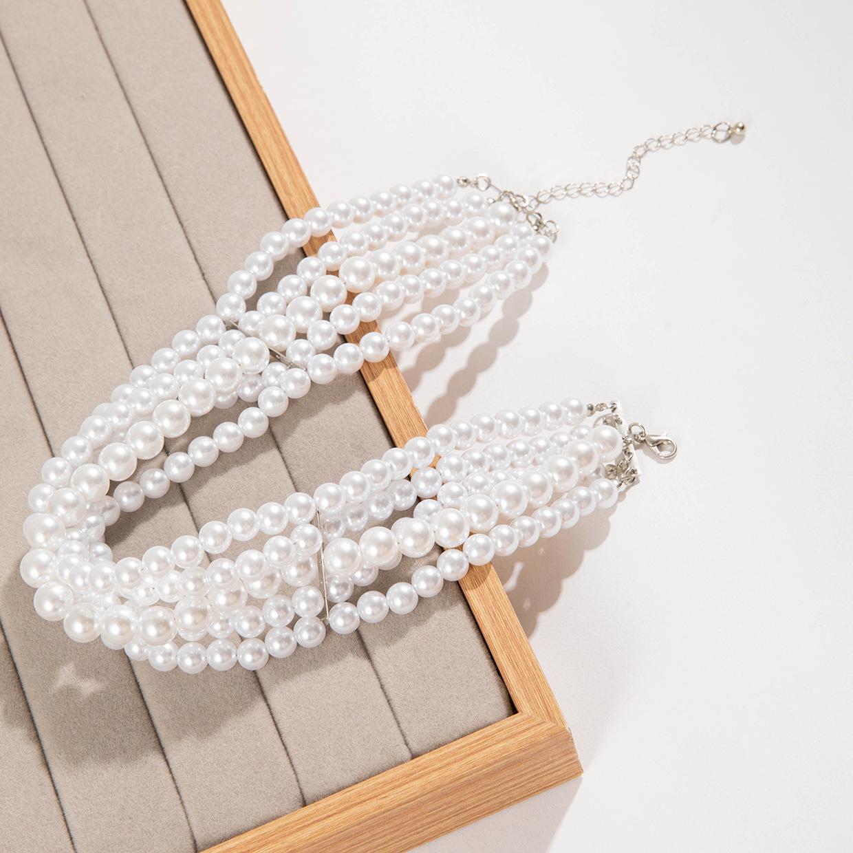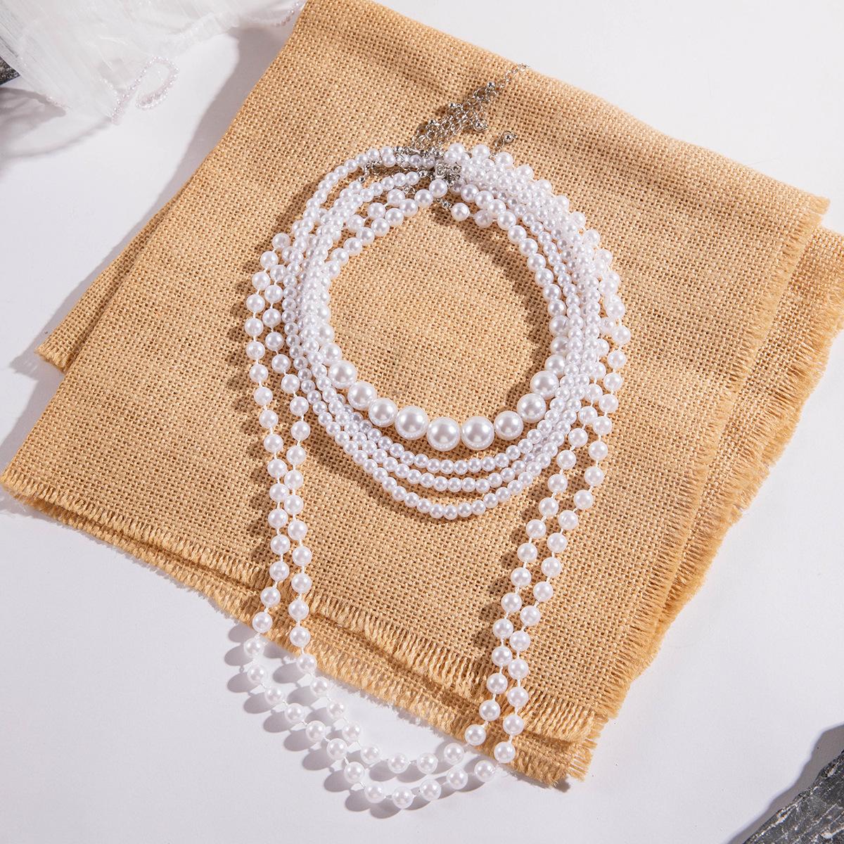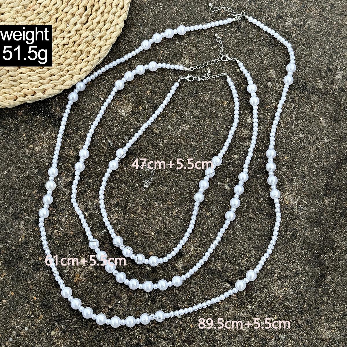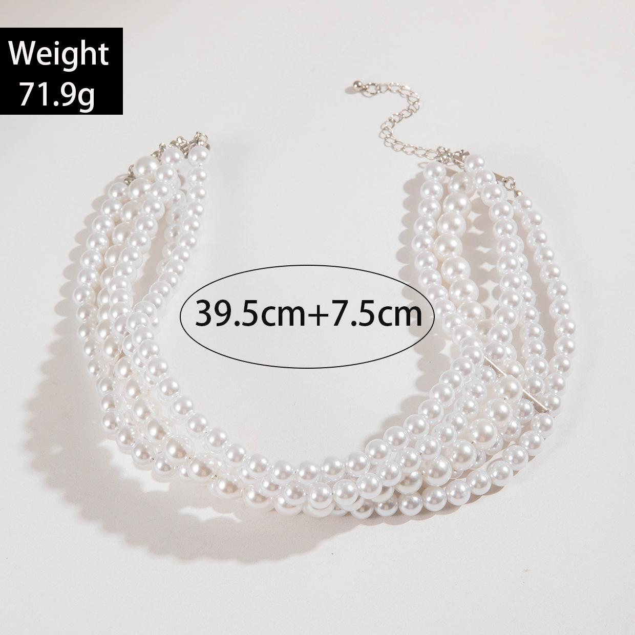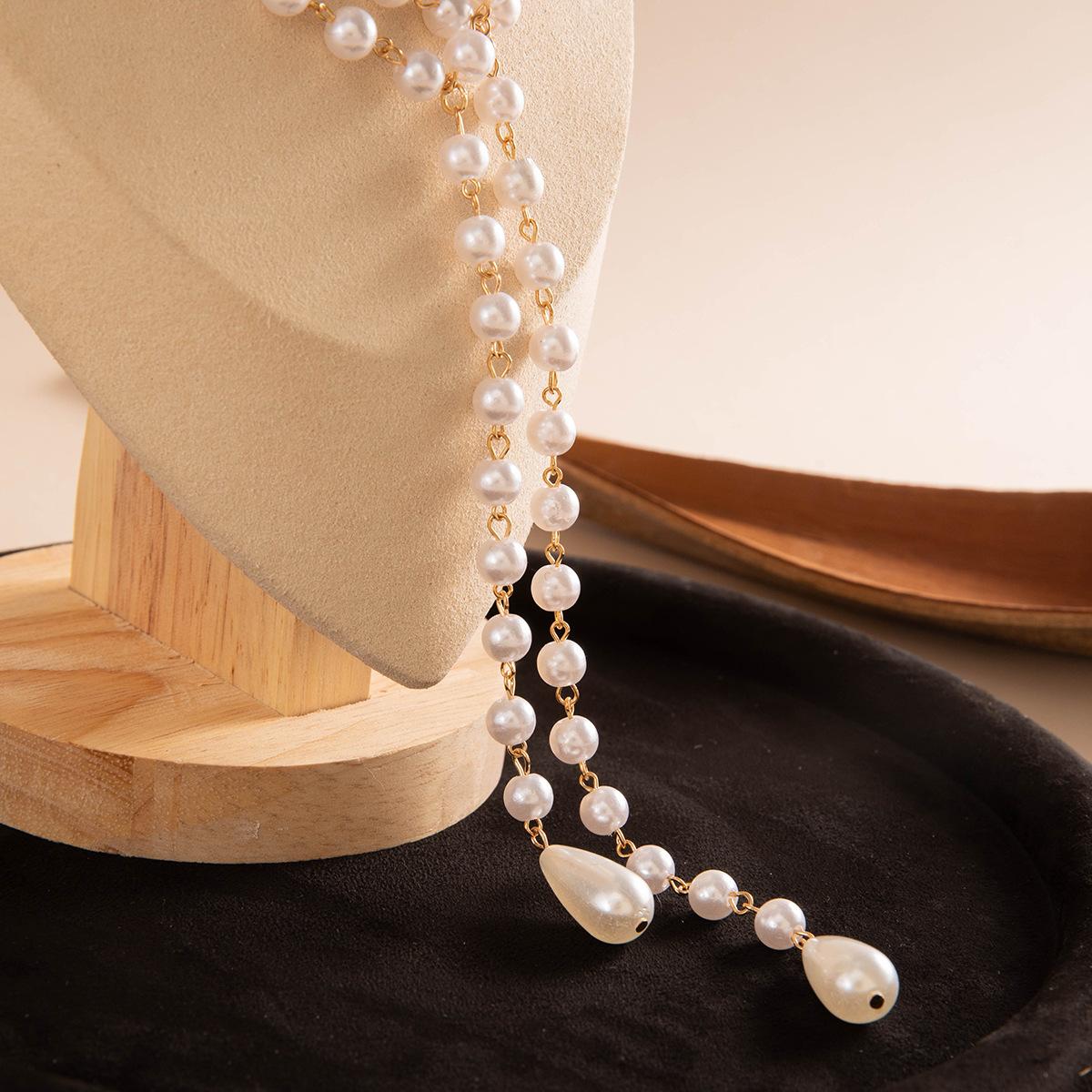 Collar Retro Geométrico con Cuentas de Moda Transfronteriza Europea y Americana Simple Elegante Perla de Imitación Diseño Multicapa Cadena Larga para Clavícula