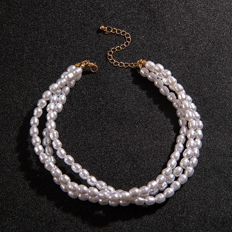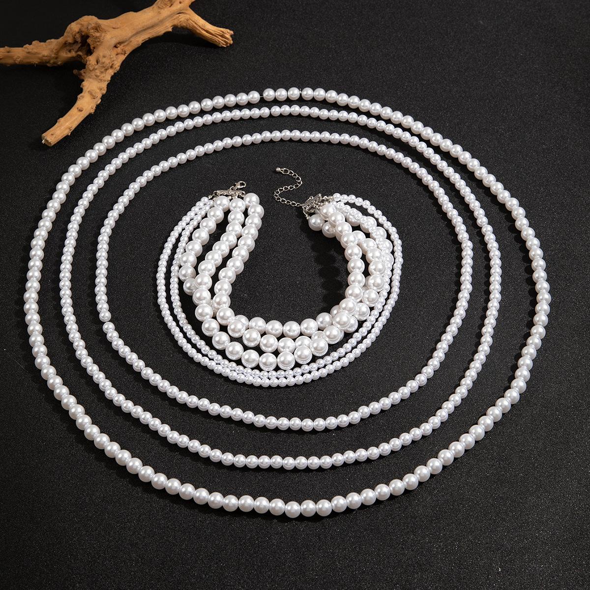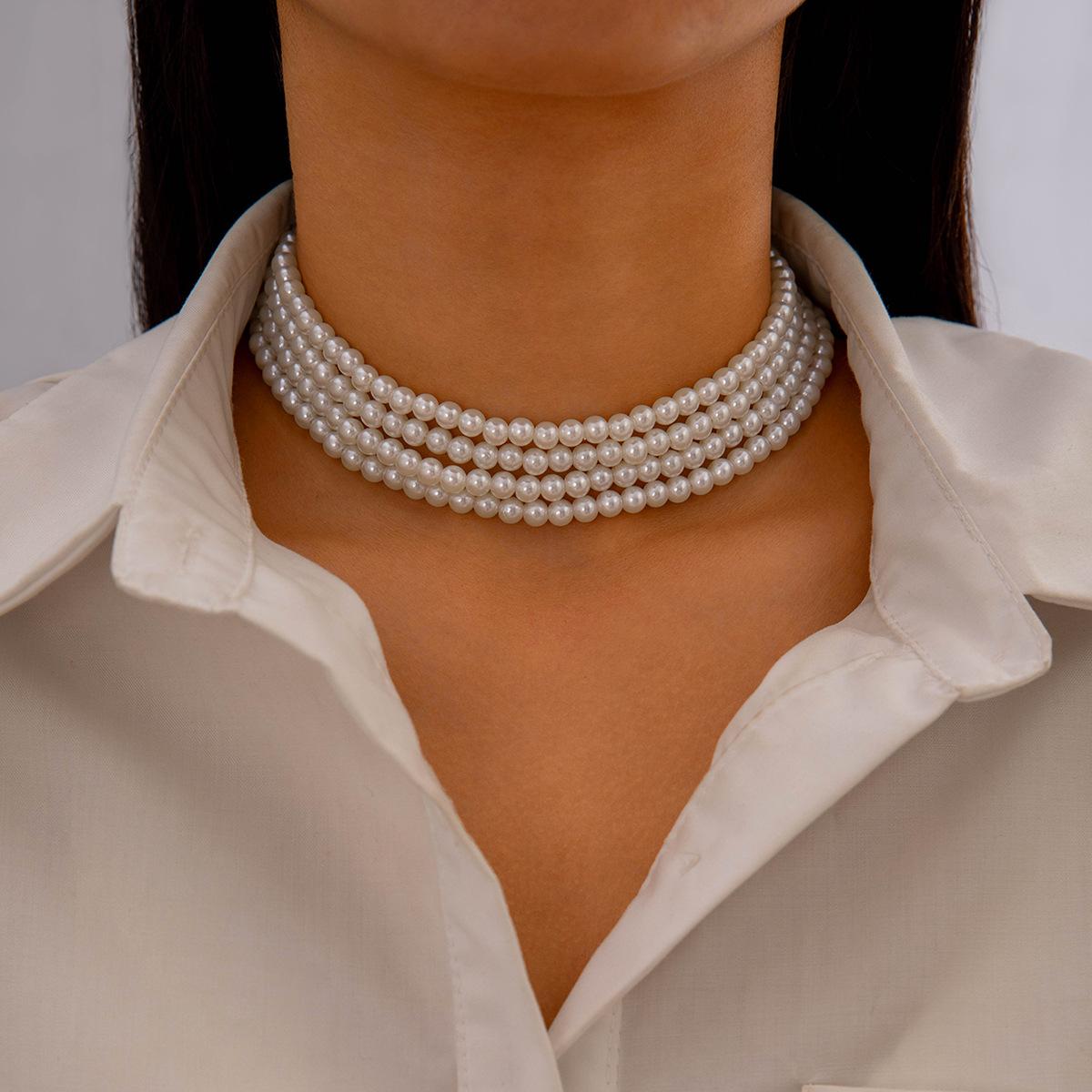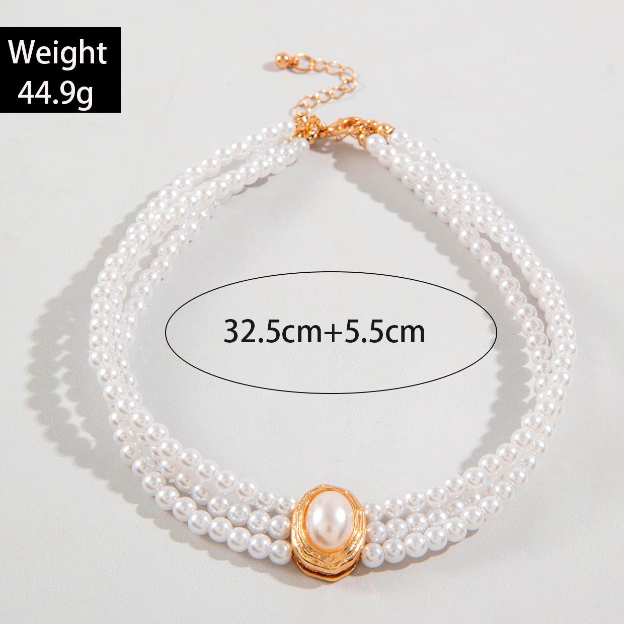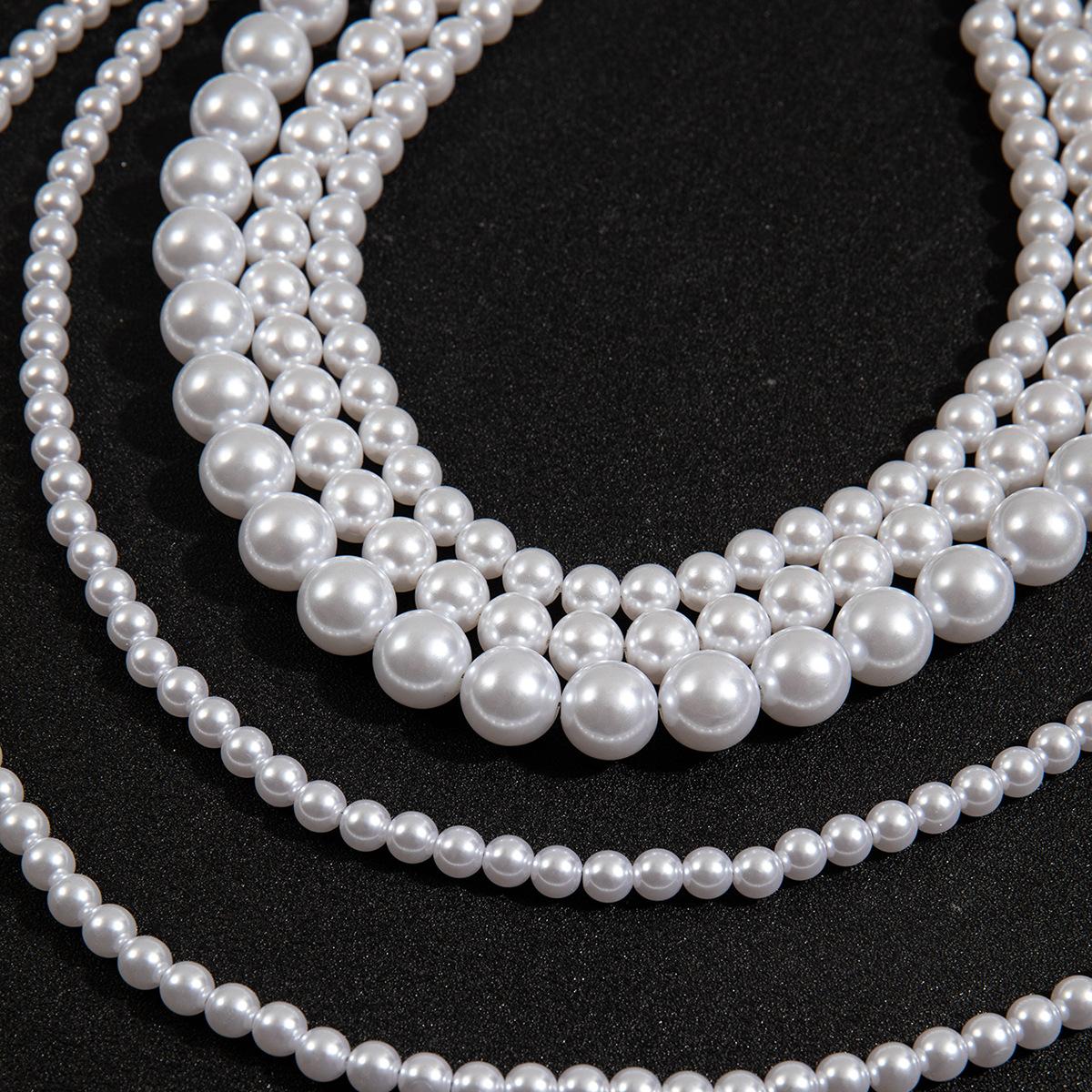 Collar Retro Geométrico con Cuentas de Moda Transfronteriza Europea y Americana Simple Elegante Perla de Imitación Diseño Multicapa Cadena Larga para Clavícula