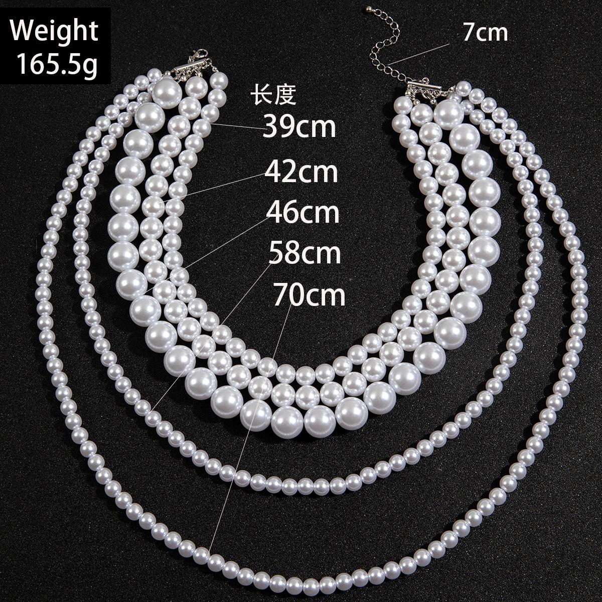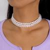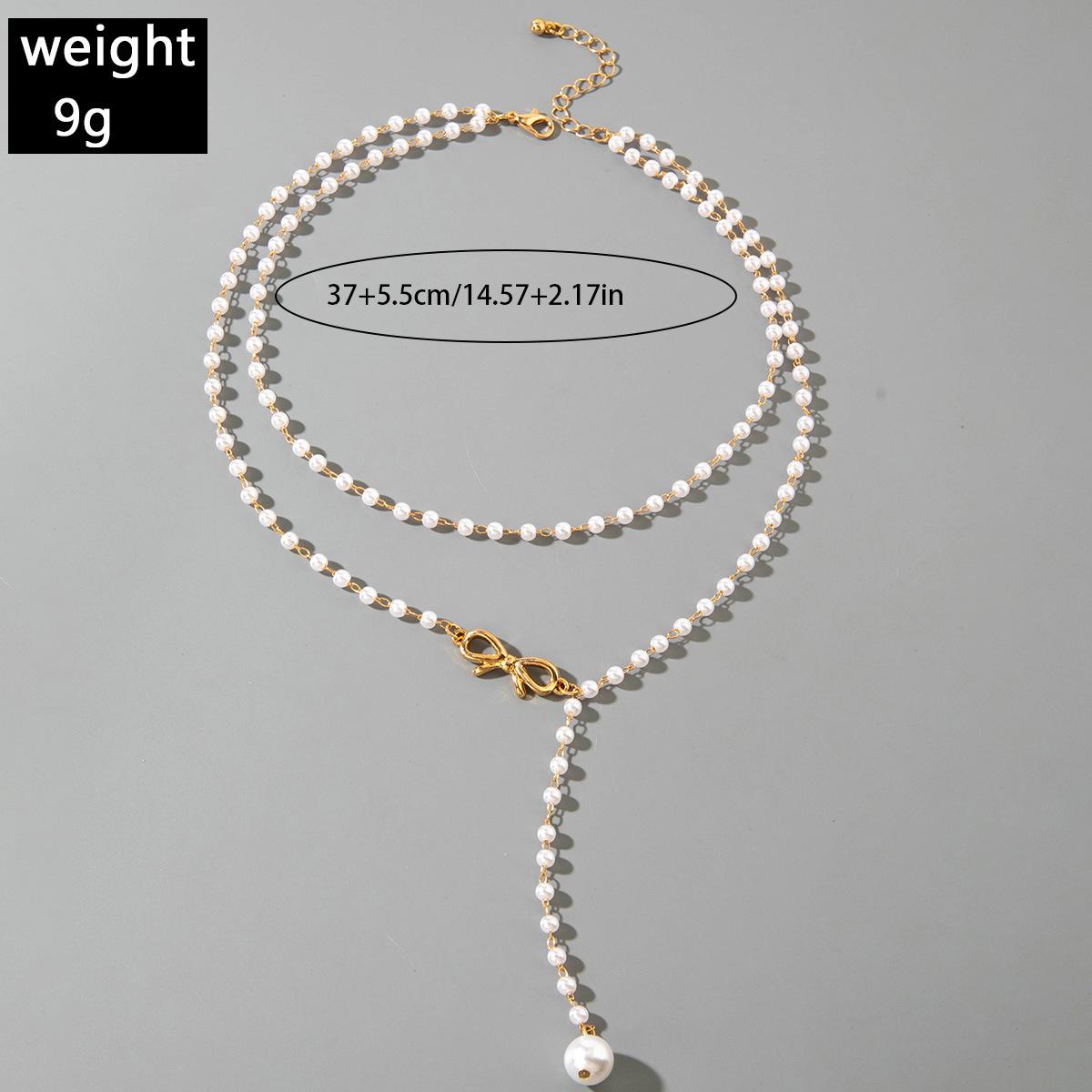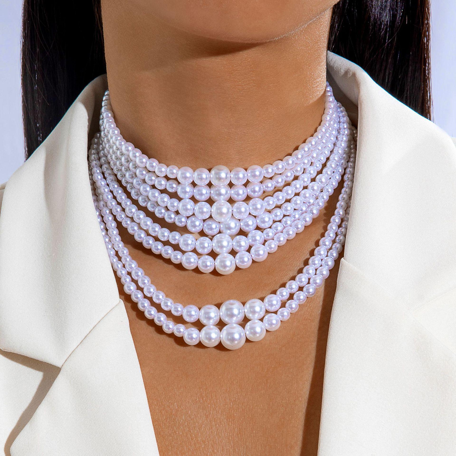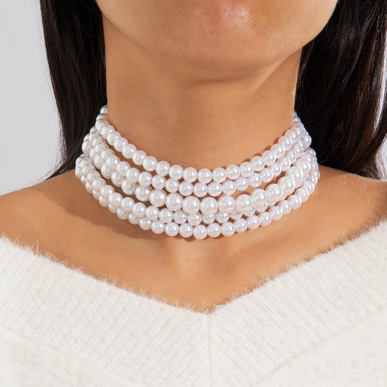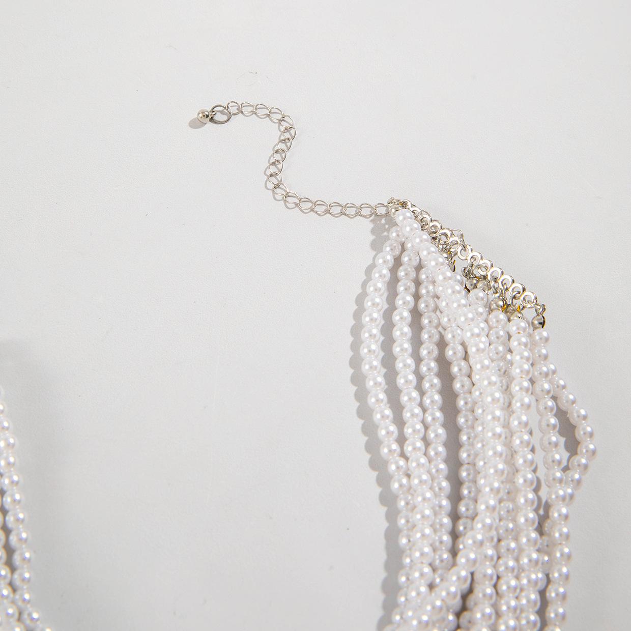 Collar Retro Geométrico con Cuentas de Moda Transfronteriza Europea y Americana Simple Elegante Perla de Imitación Diseño Multicapa Cadena Larga para Clavícula