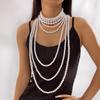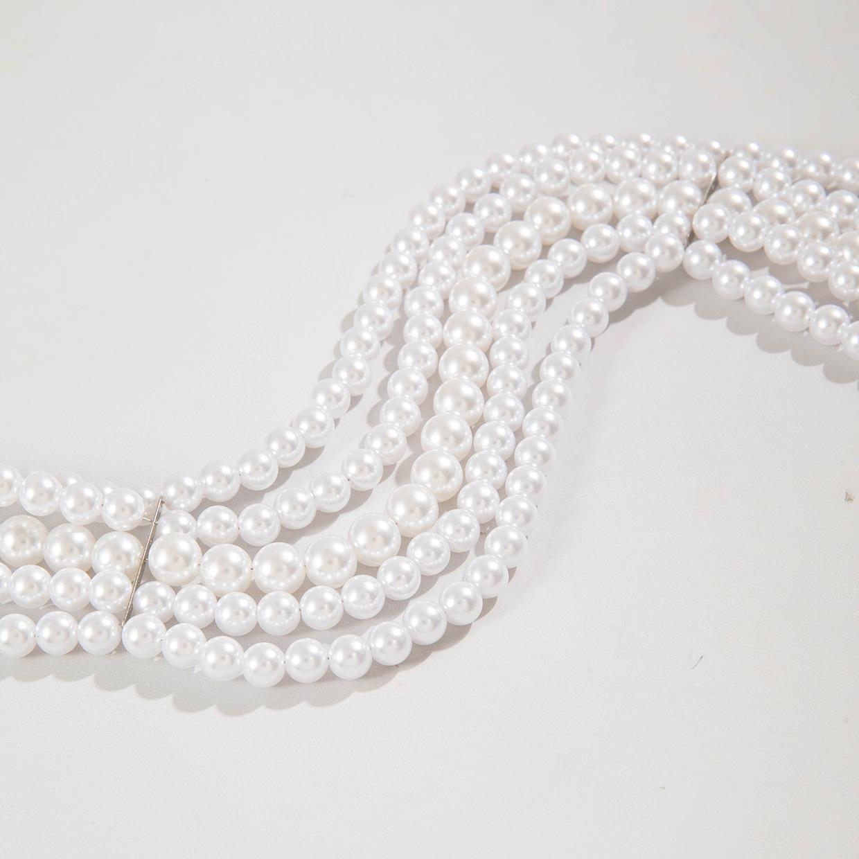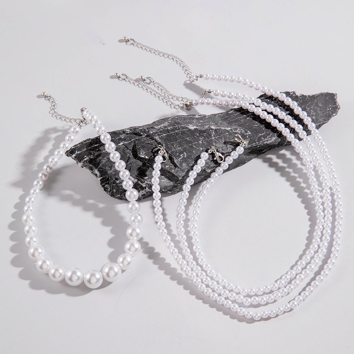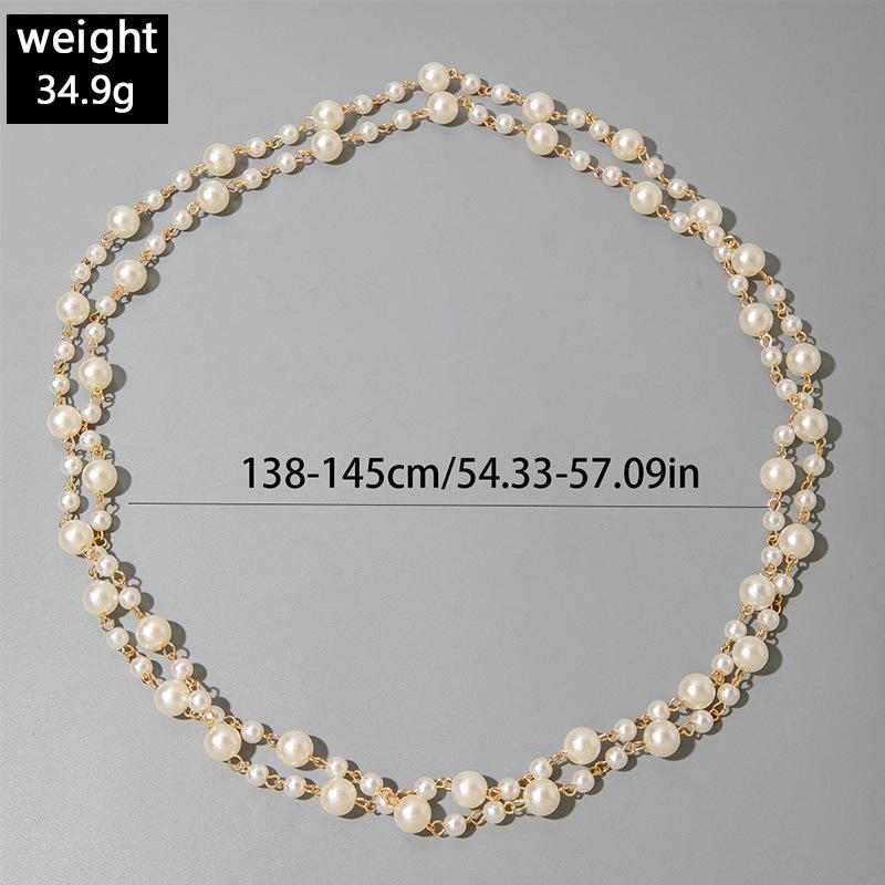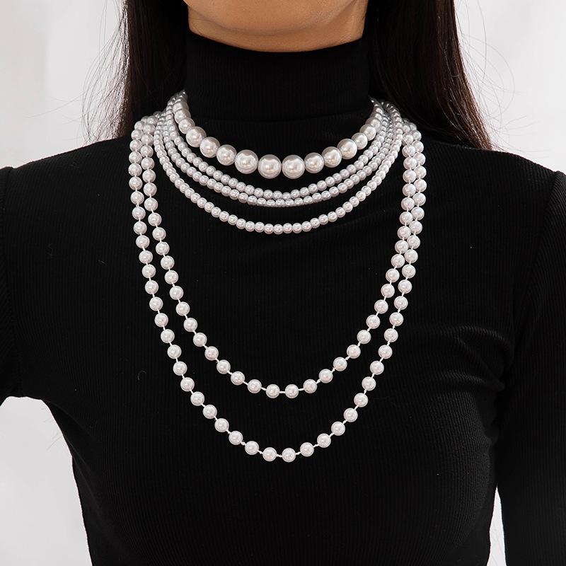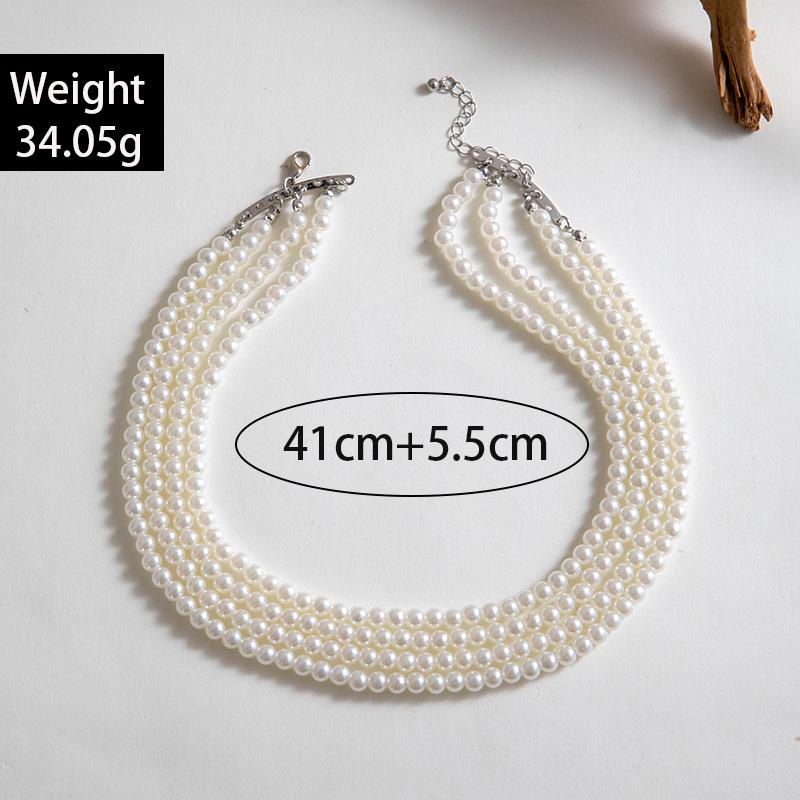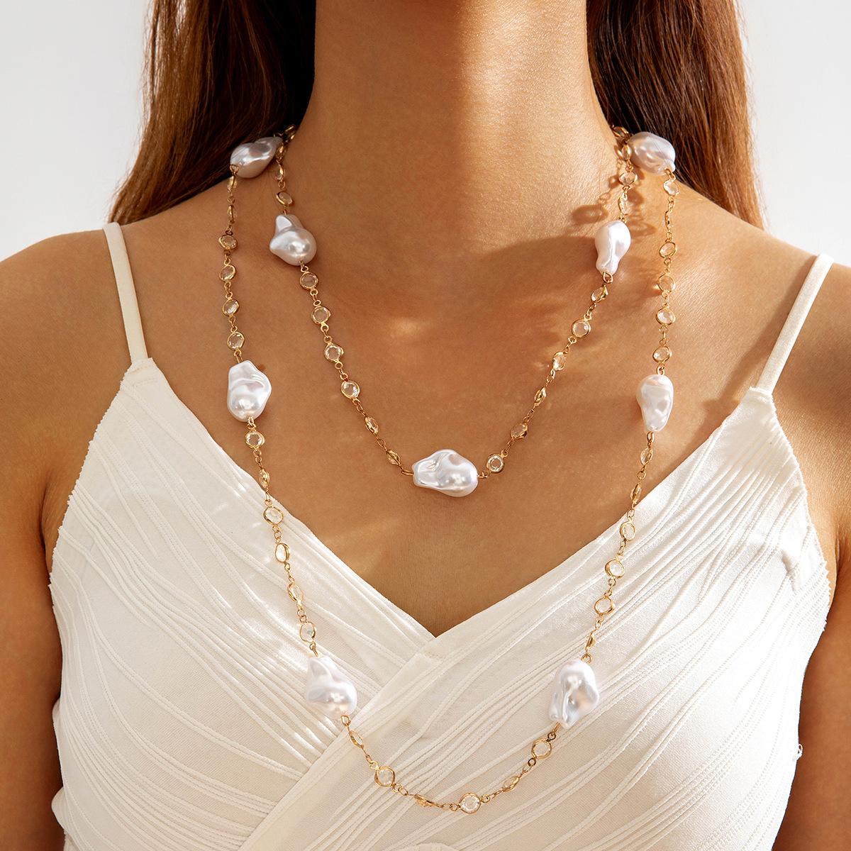 Collar Retro Geométrico con Cuentas de Moda Transfronteriza Europea y Americana Simple Elegante Perla de Imitación Diseño Multicapa Cadena Larga para Clavícula