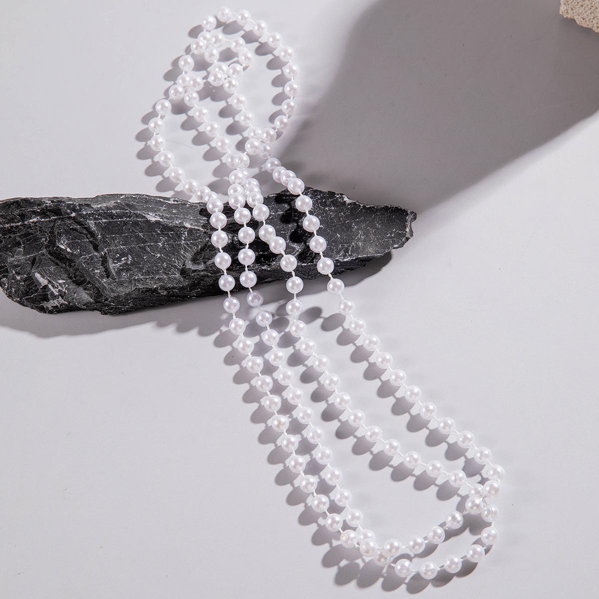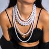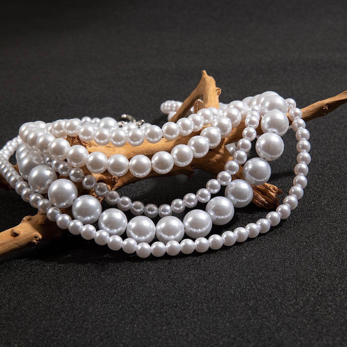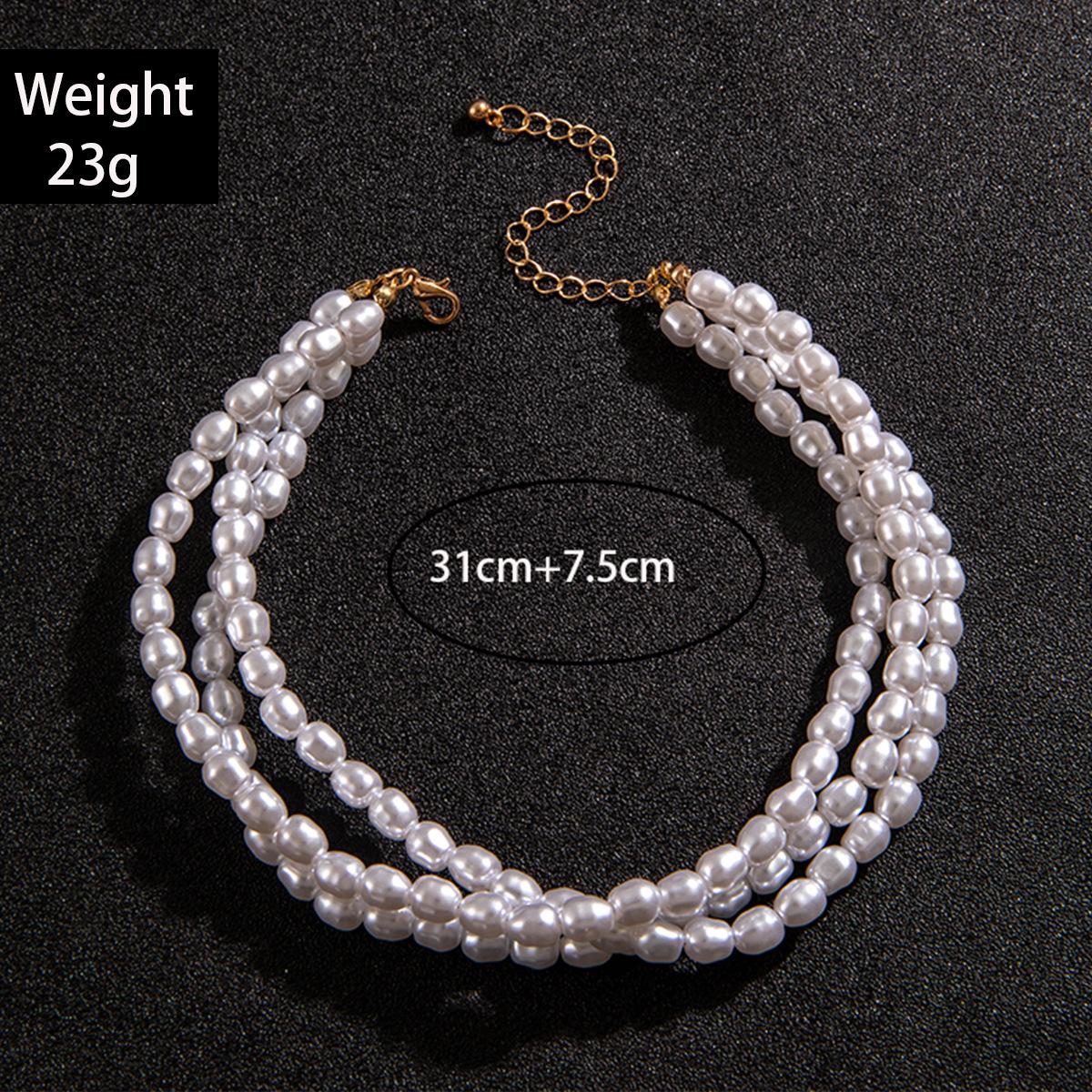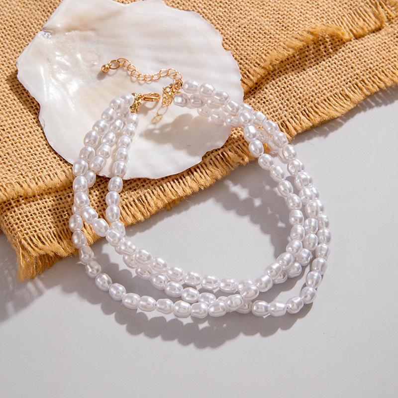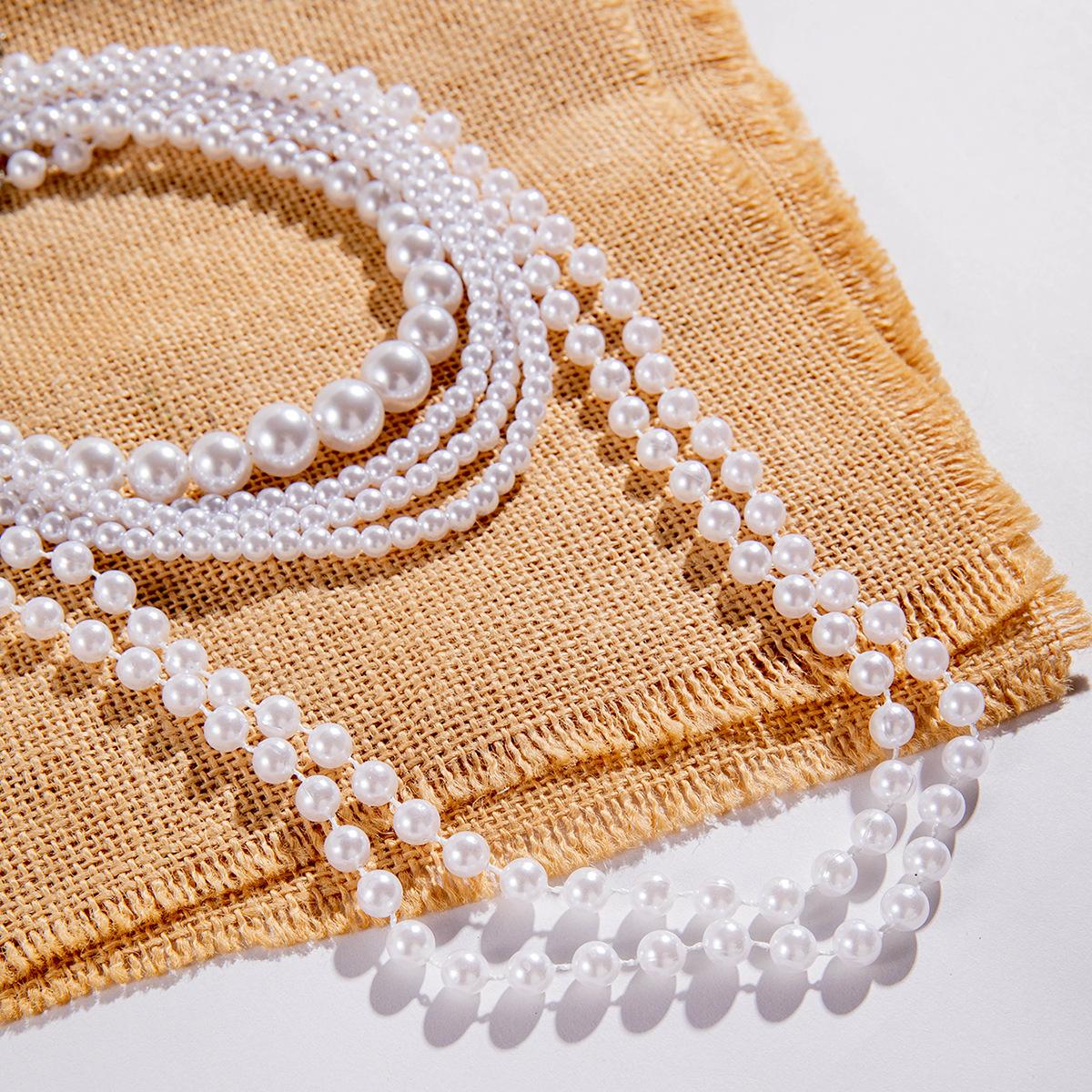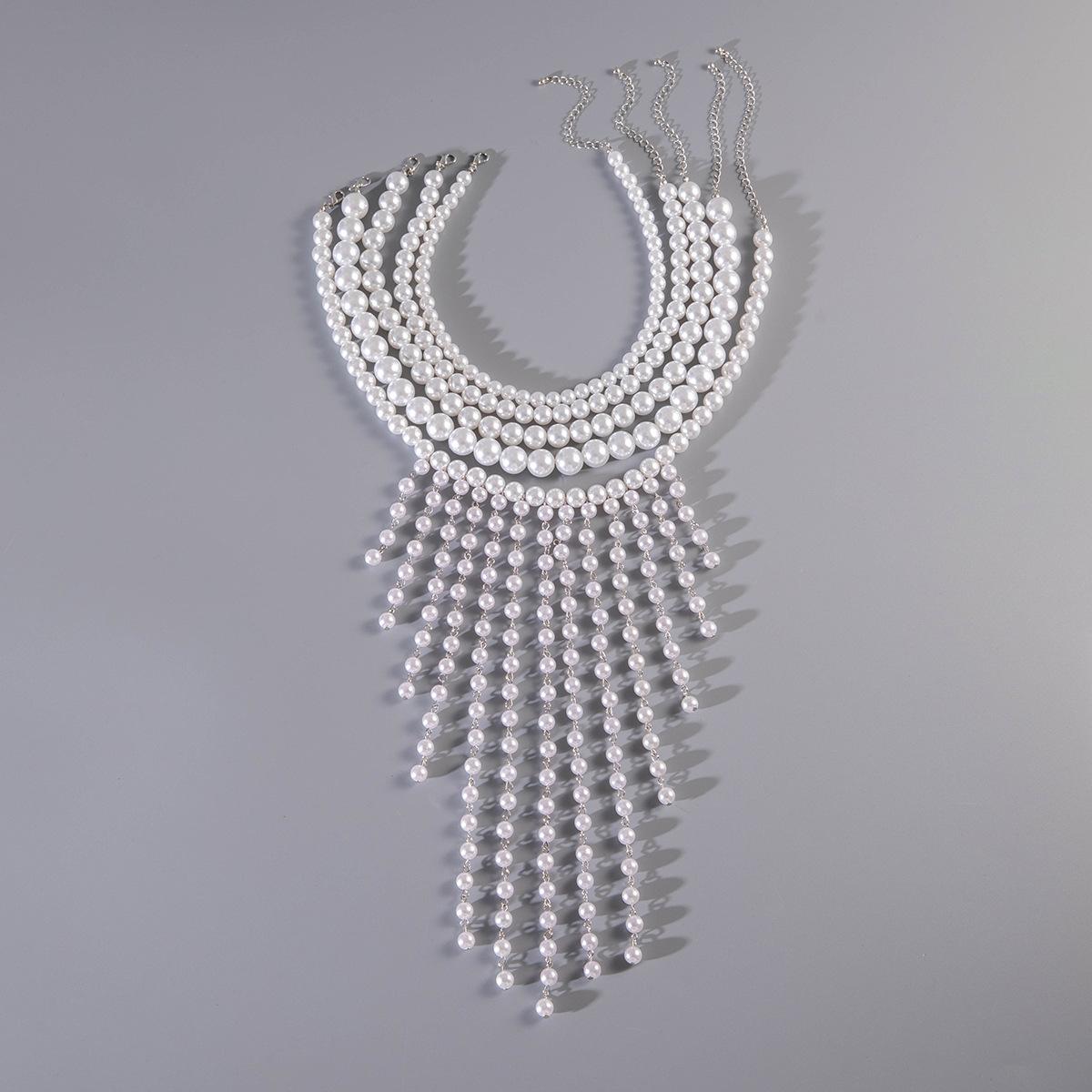 Collar Retro Geométrico con Cuentas de Moda Transfronteriza Europea y Americana Simple Elegante Perla de Imitación Diseño Multicapa Cadena Larga para Clavícula