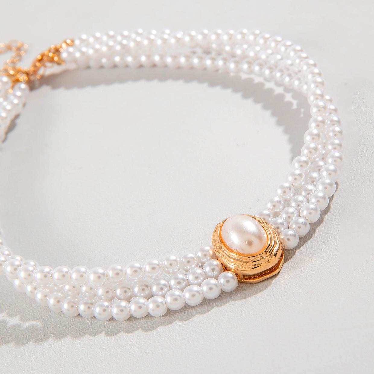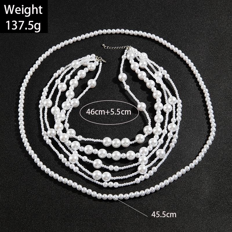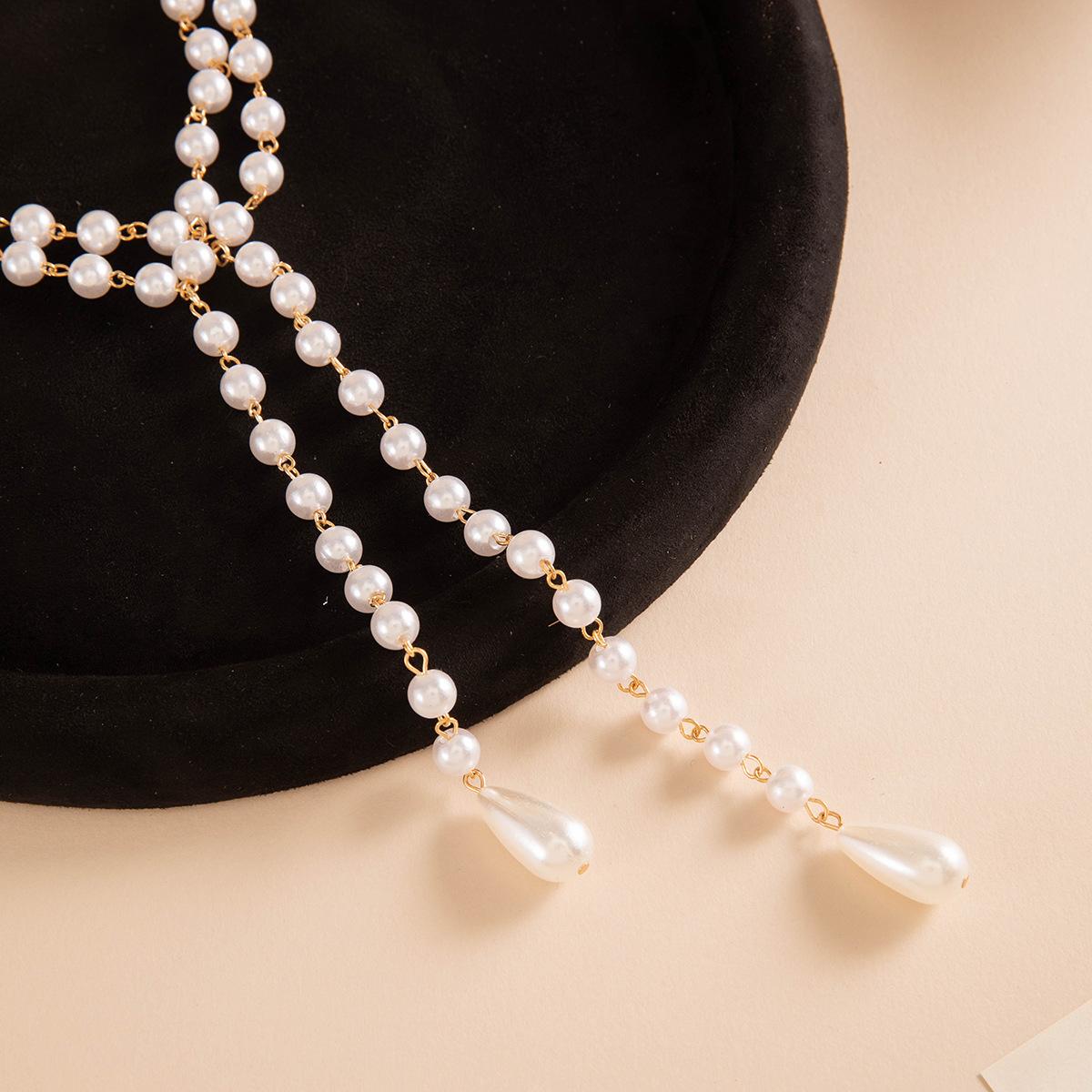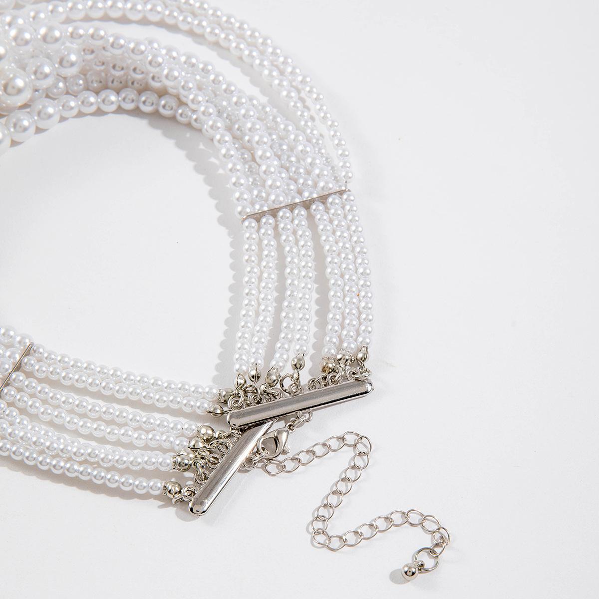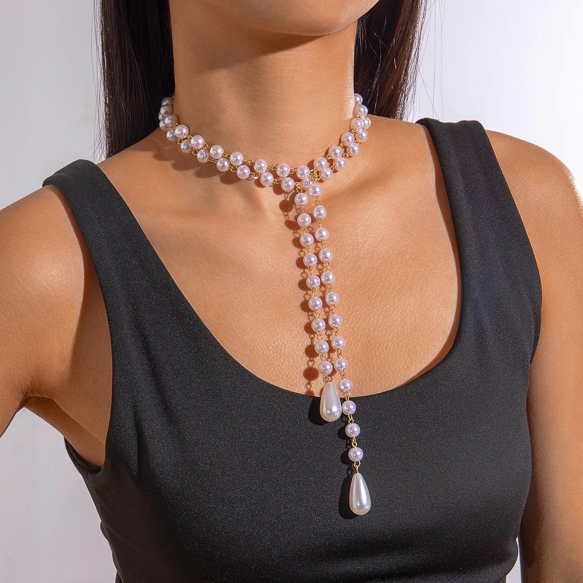 Collar Retro Geométrico con Cuentas de Moda Transfronteriza Europea y Americana Simple Elegante Perla de Imitación Diseño Multicapa Cadena Larga para Clavícula