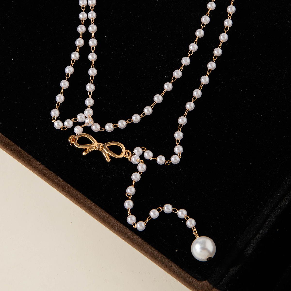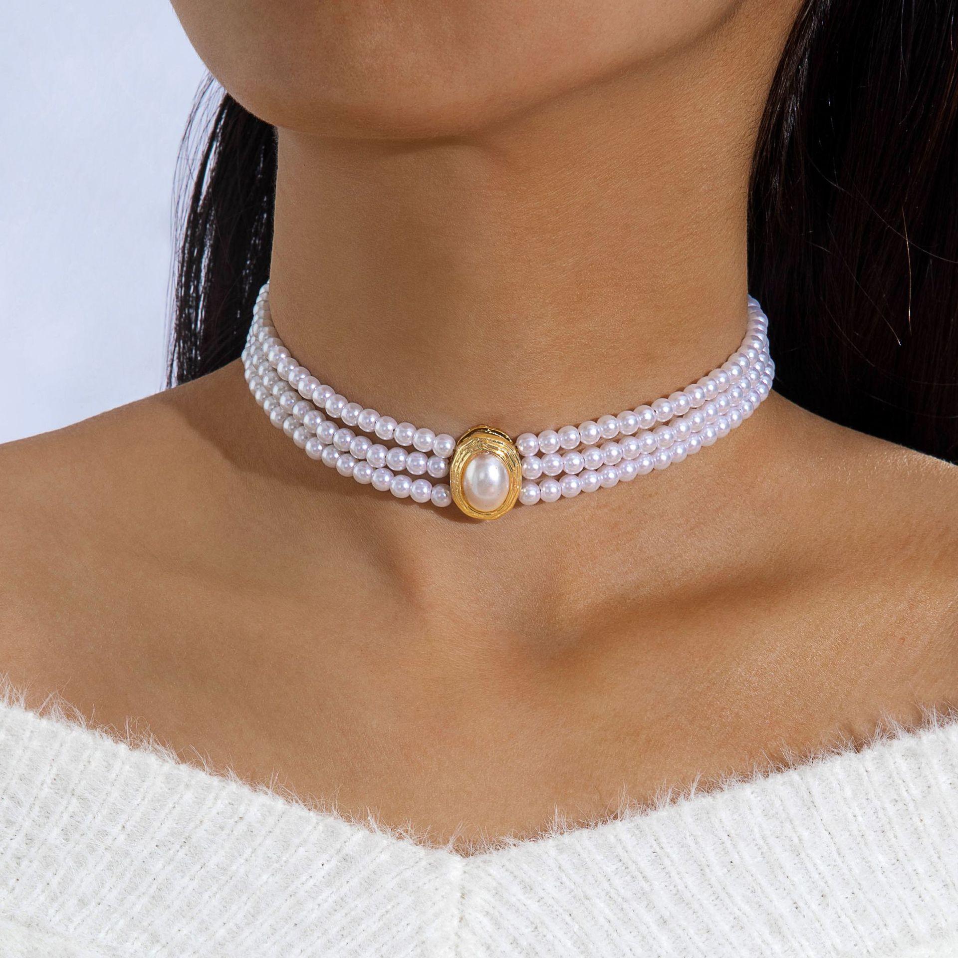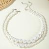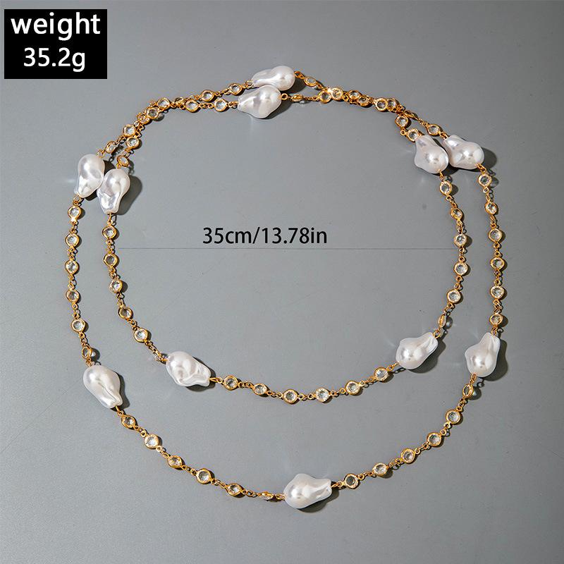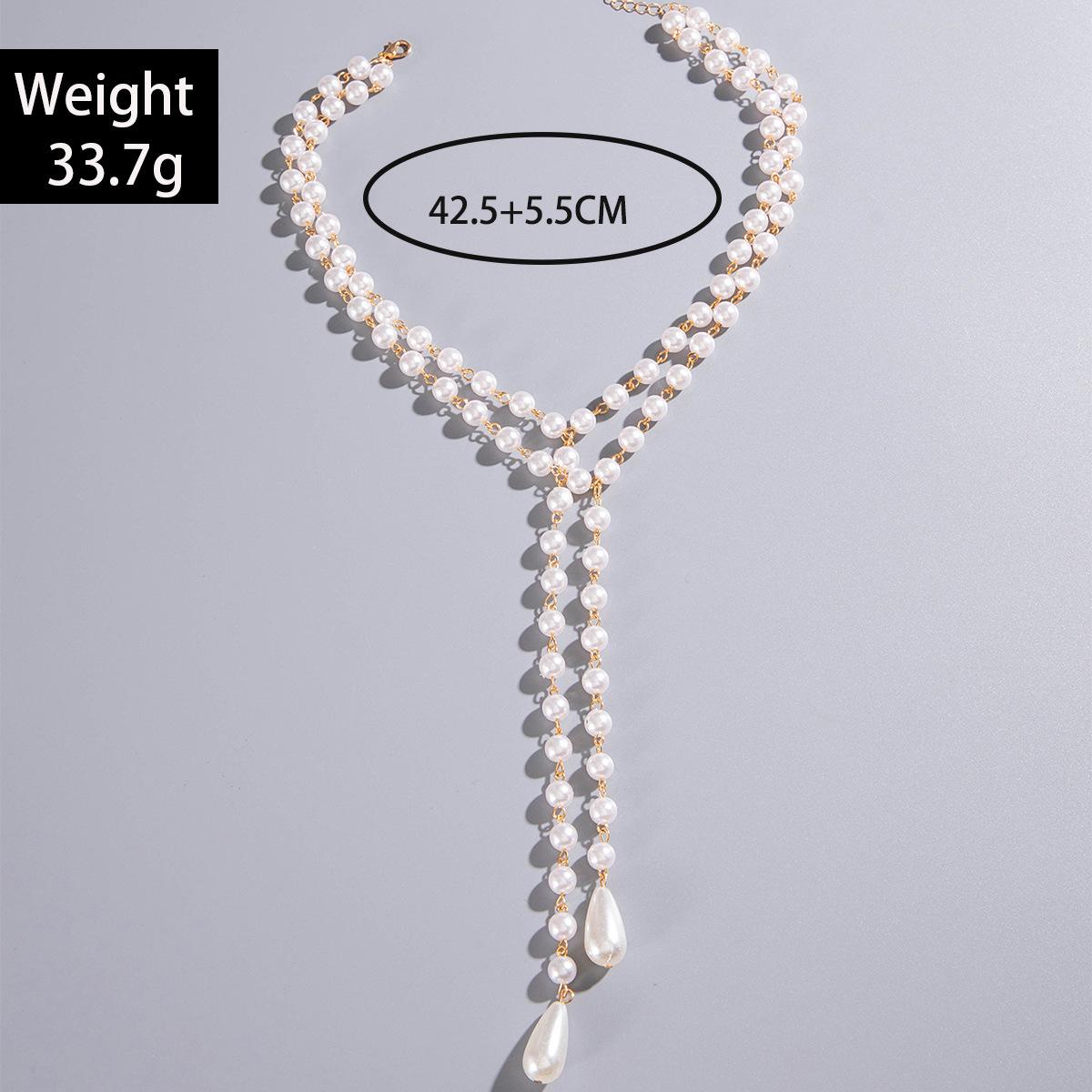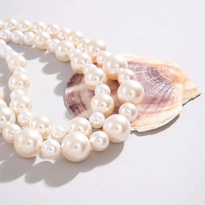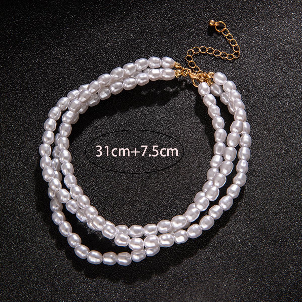 Collar Retro Geométrico con Cuentas de Moda Transfronteriza Europea y Americana Simple Elegante Perla de Imitación Diseño Multicapa Cadena Larga para Clavícula